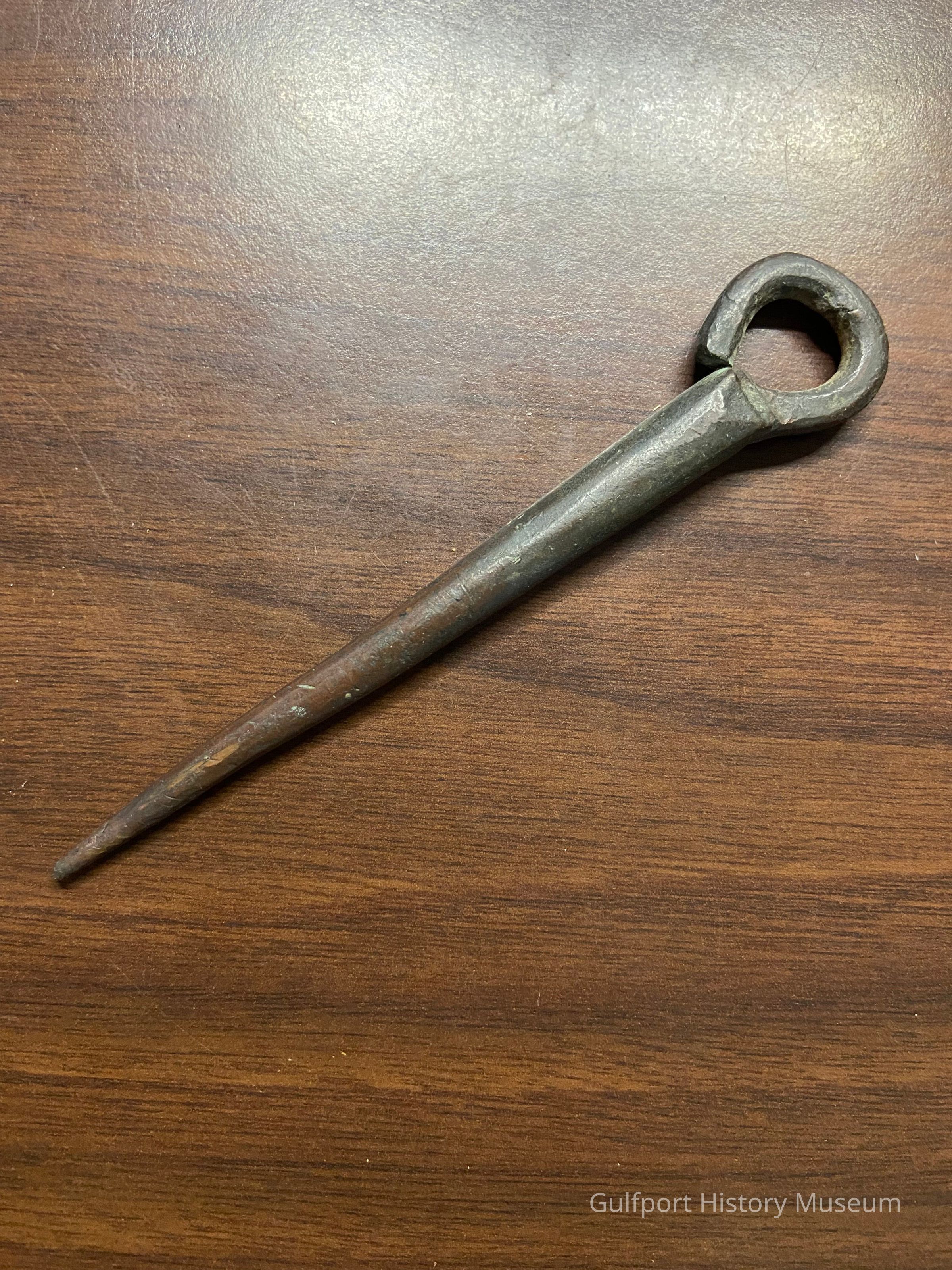 A [pin/nail/spike] with slightly open top ring.