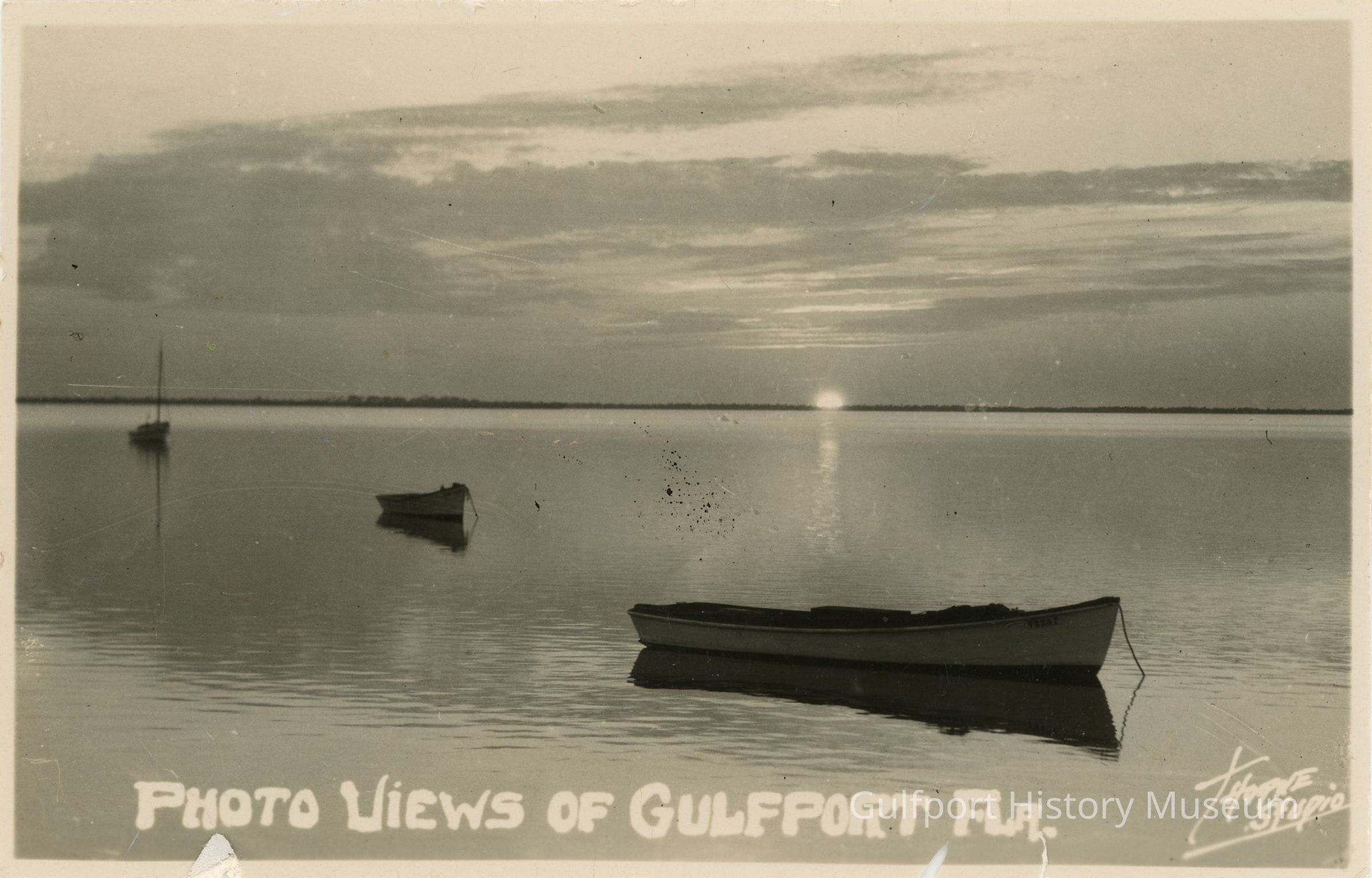 A black and white photograph of Boca Ciega Bay. "PHOTO VIEWS OF GULFPORT FLA."