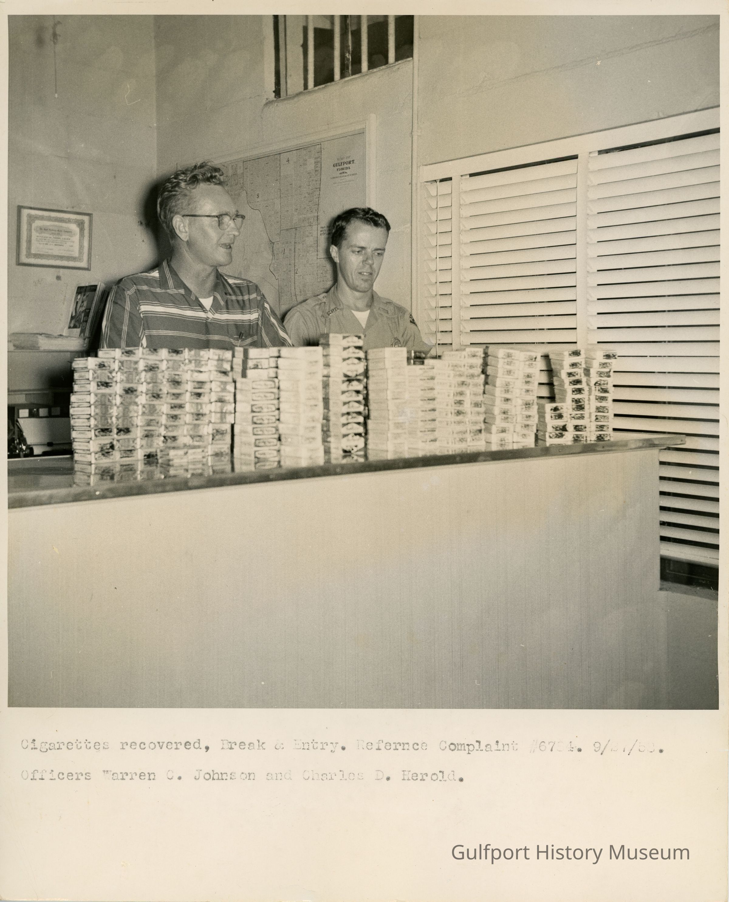 Police--Florida--Gulfport--1950-1960, Cigarettes, Police stations