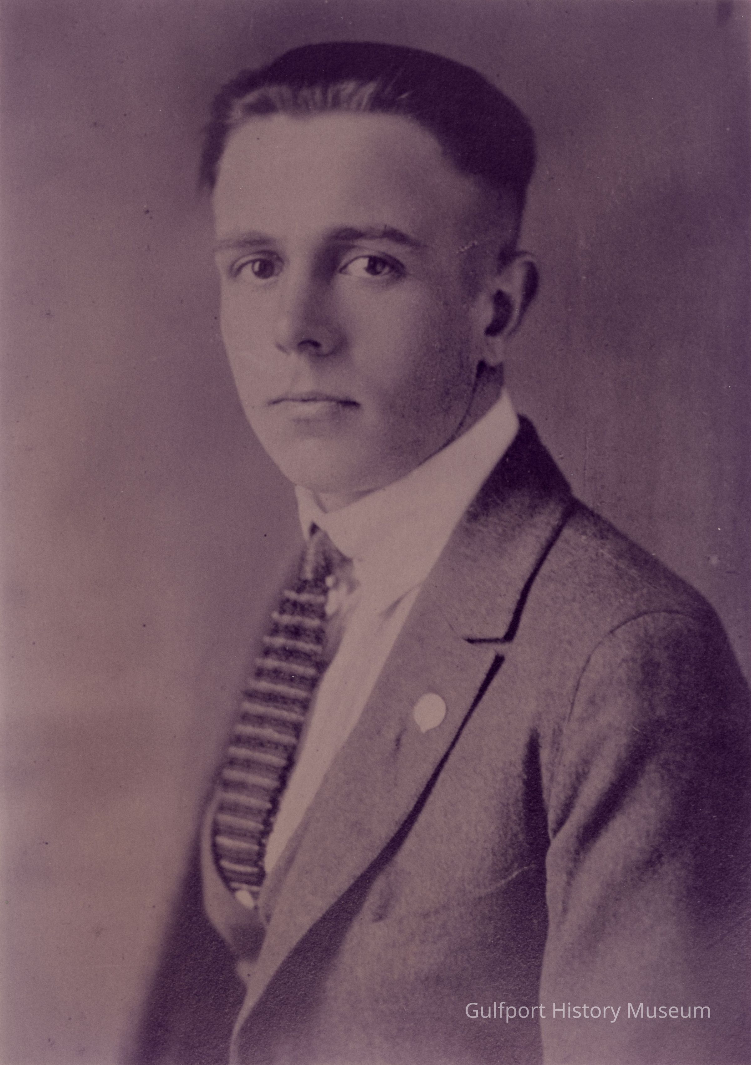 A black and white photographic print of Sidney Willis Webb. He has neatly combed short hair, a focused expression, and wears a suit with a striped tie.