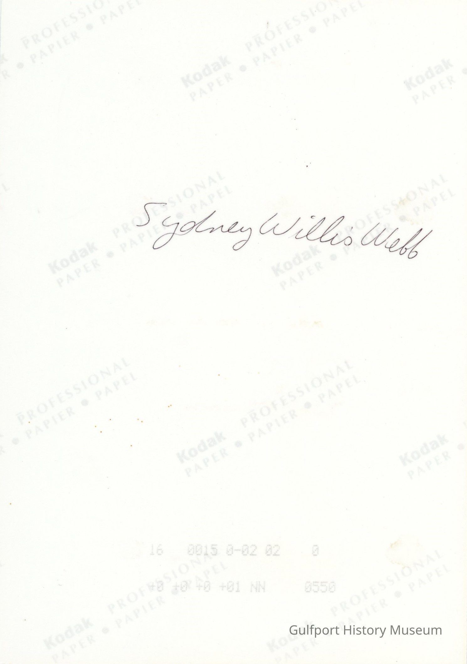 Sydney (Sidney) Willis Webb 16 0015-0-02 02 0 +0 +0 +0 +01 NN 0550 Kodak PROFESSIONAL PAPER