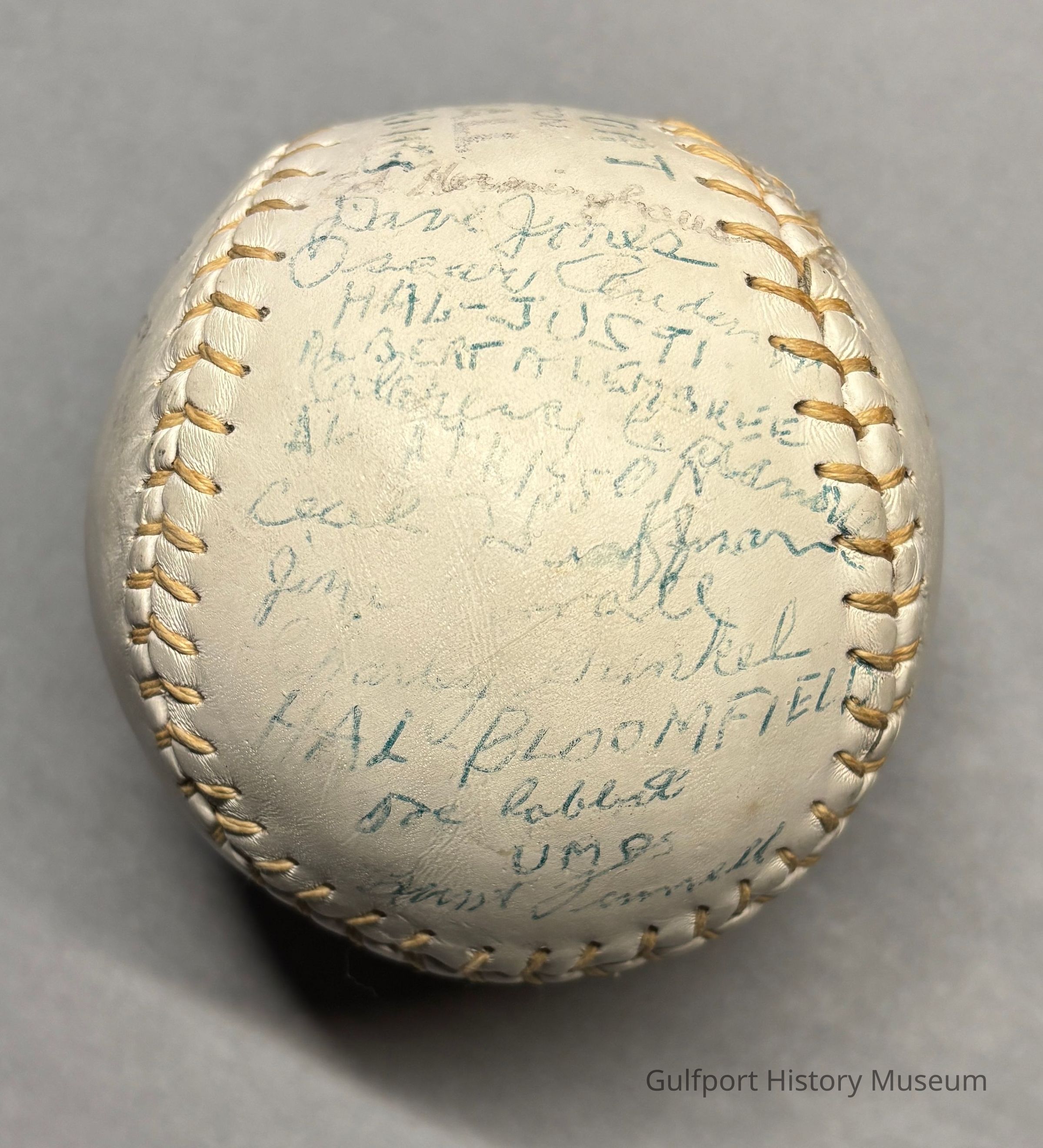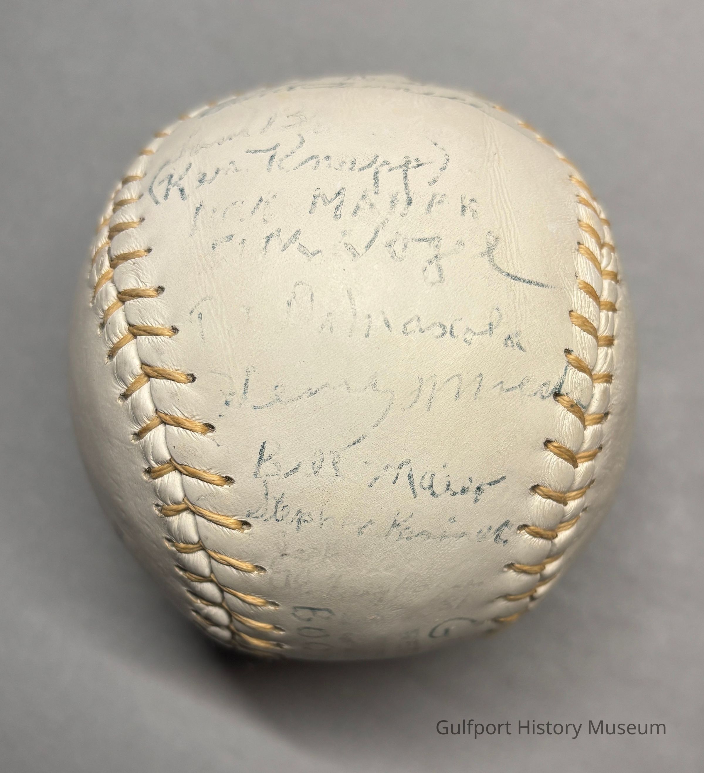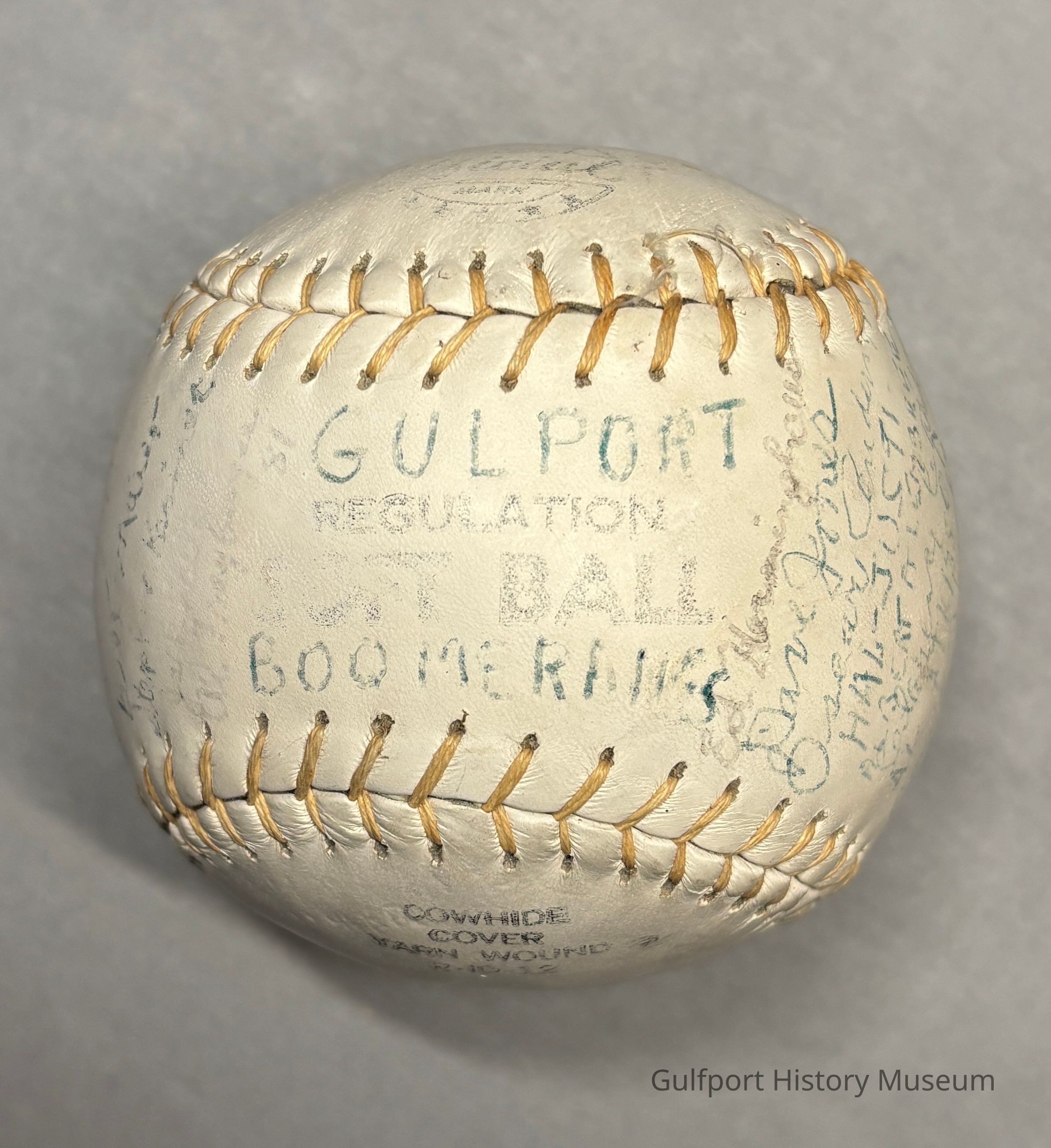 A signed Gulfport Boomerangs softball.