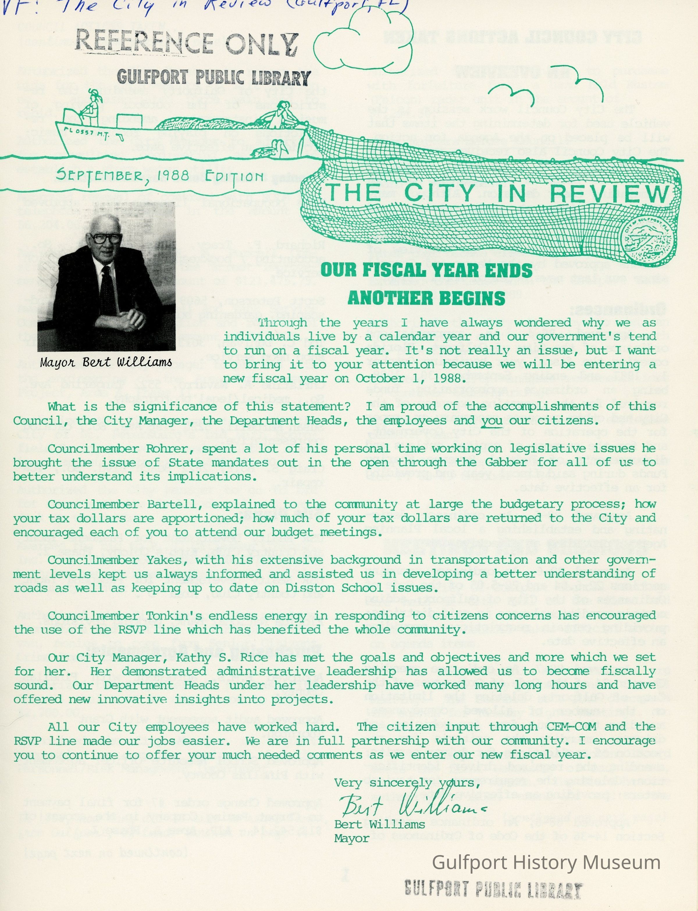 A City of Gulfport newsletter from September 1988.