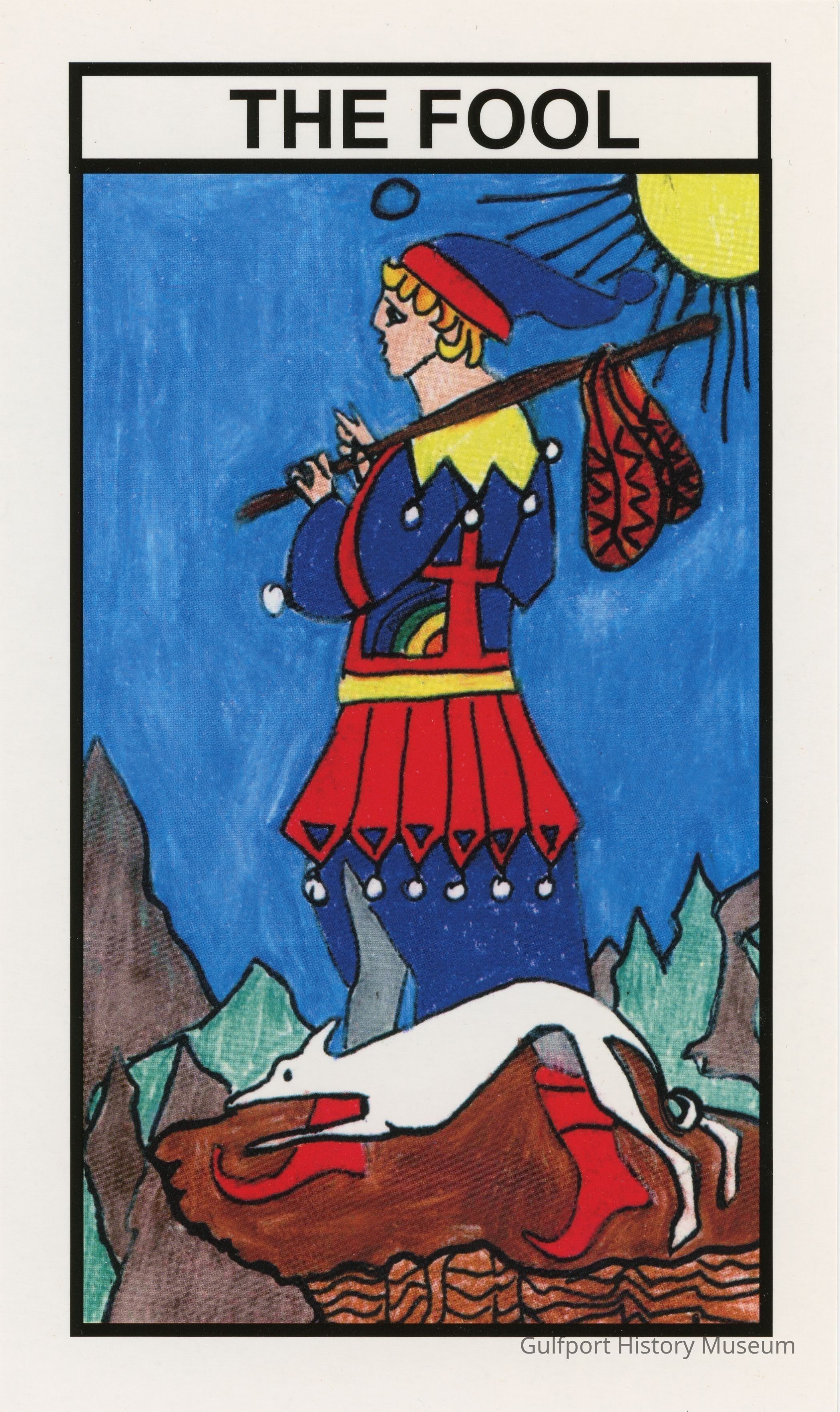 DIGITAL ONLY -- A scan of a color rack card advertising [a show] at the Catherine Hickman Theater. "THE FOOL"