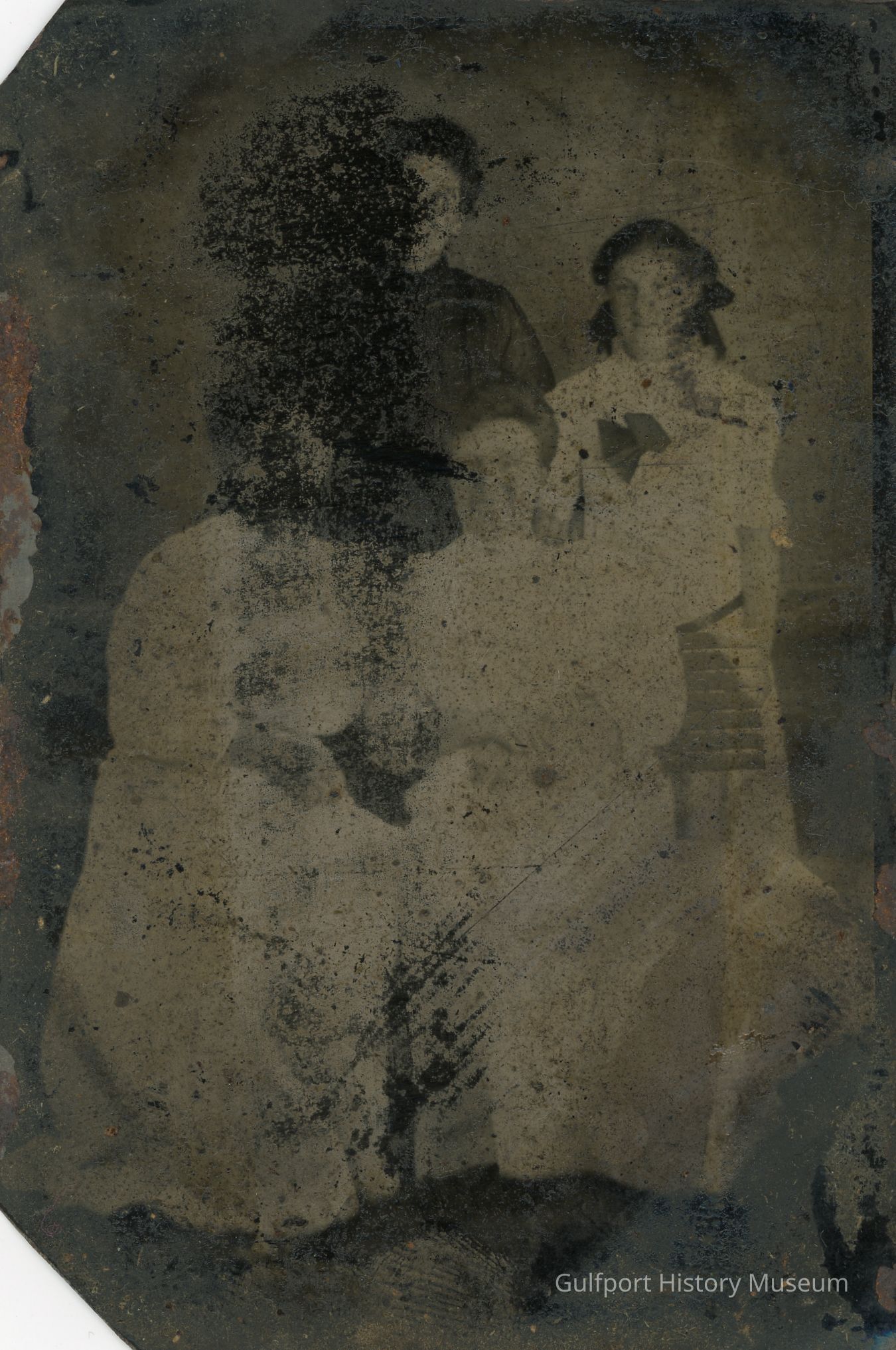 A tintype portrait of four women. Two sit and two stand behind them.