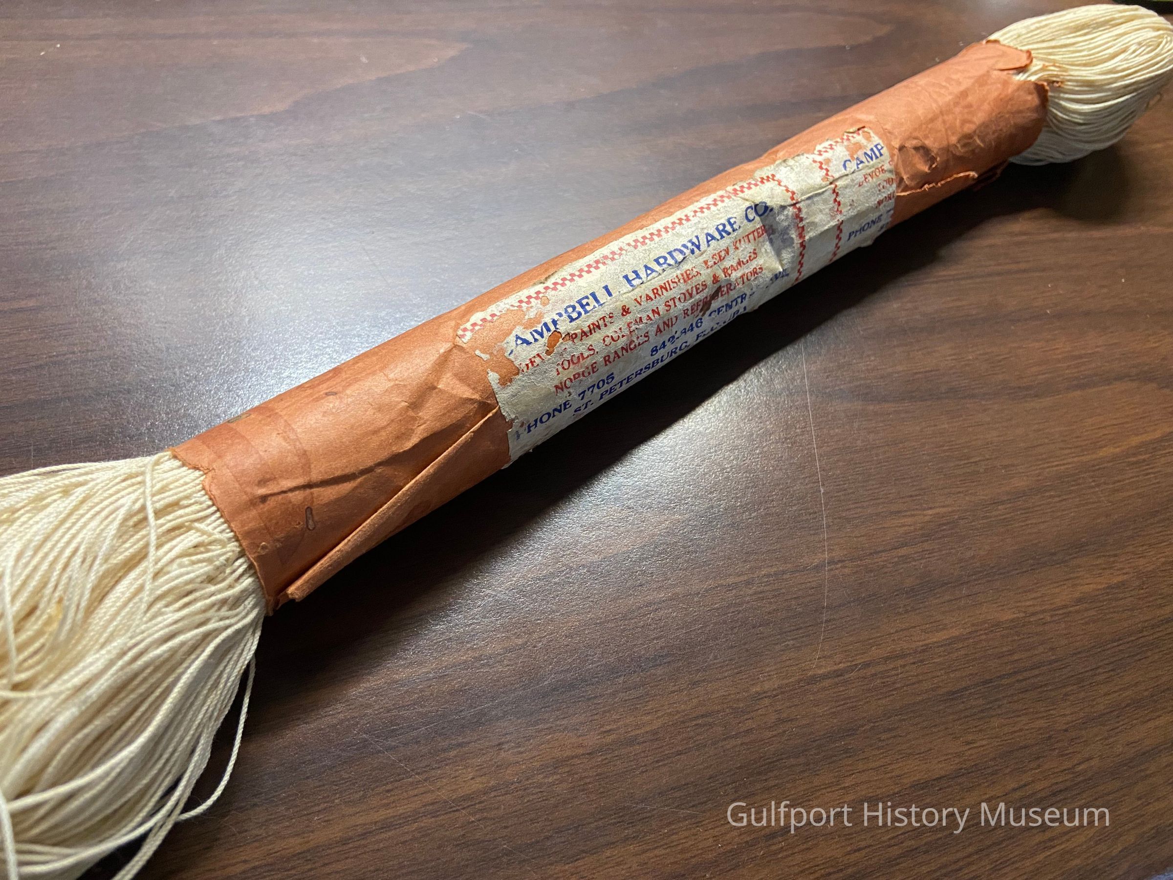 A bundle of [twine] in Campbell Hardware Company packaging.Context