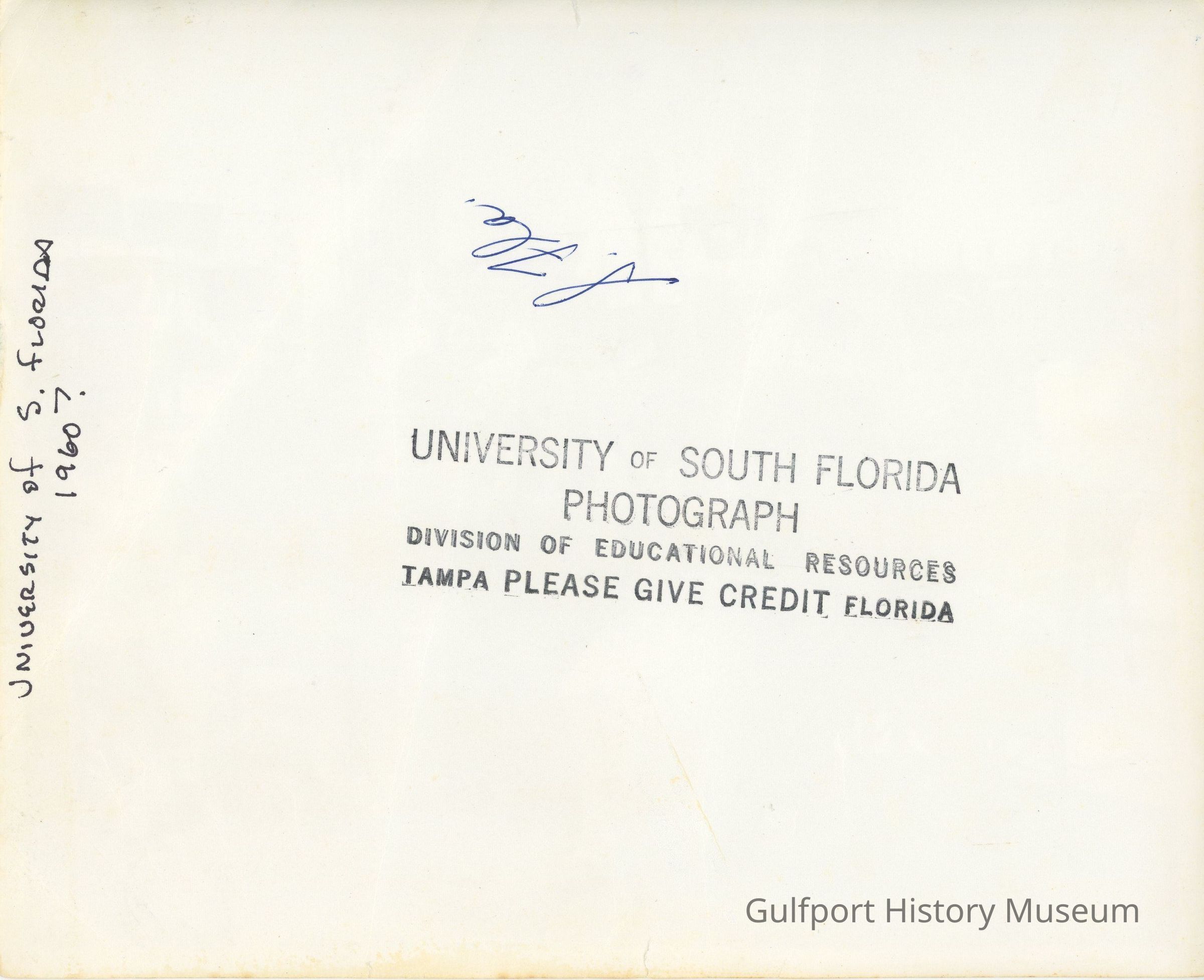 UNIVERSITY OF S. FLORIDA 1960? UNIVERSITY OF SOUTH FLORIDA PHOTOGRAPH DIVISION OF EDUCATIONAL RESOURCES TAMPA FLORIDA PLEASE GIVE CREDIT