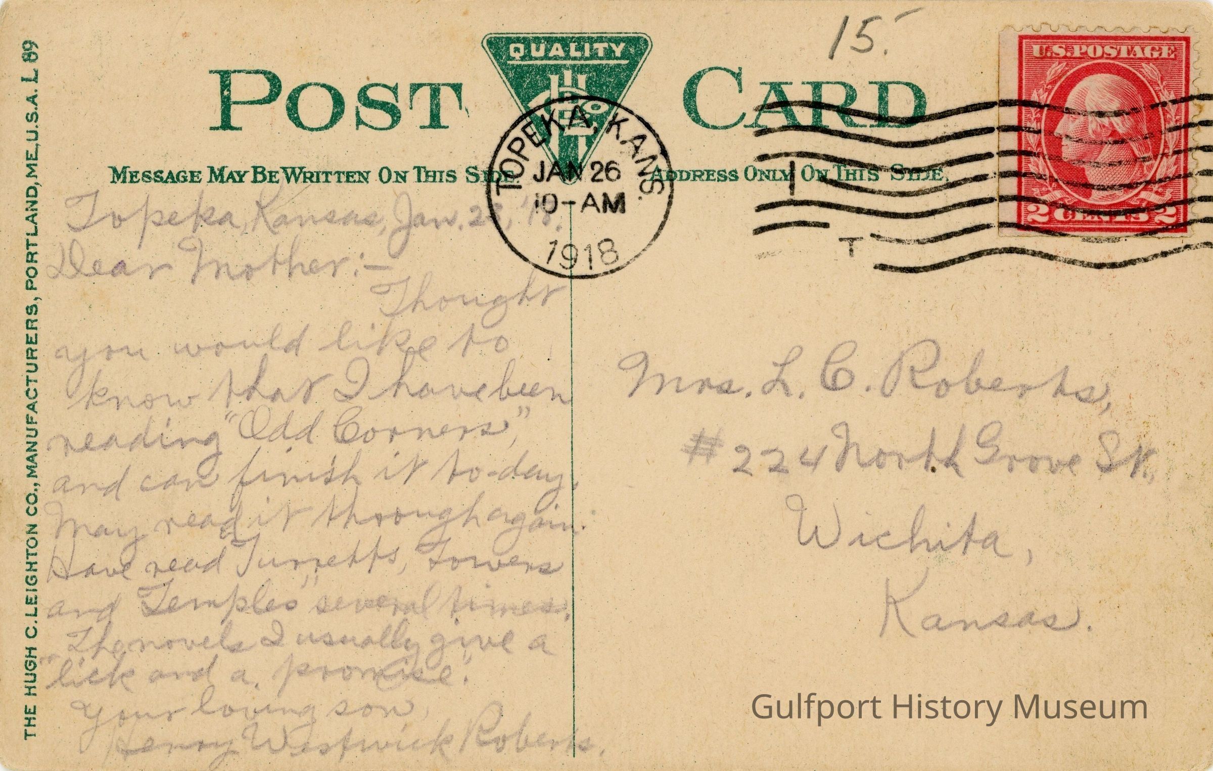 Thought you would like to know that I have been reading "Odd Corners," and can finish it to-day. May read it through again. Have read "Turretts [sic], Towers and Temples" several times. The novels I usually give a "lick and a promise."