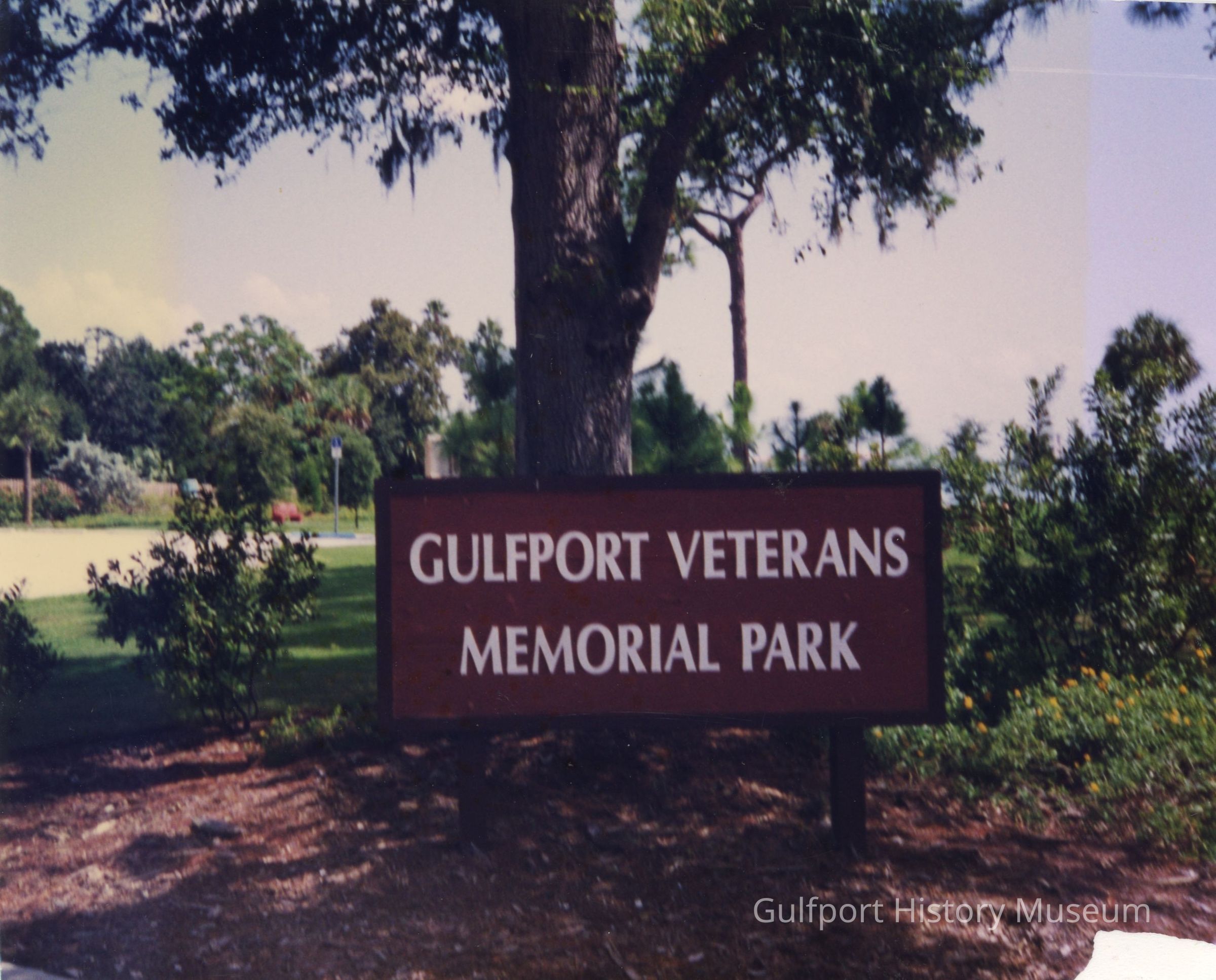 A color photograph of the Veterans Park sign from the intersection of 31st Ave S and 54th St S.
