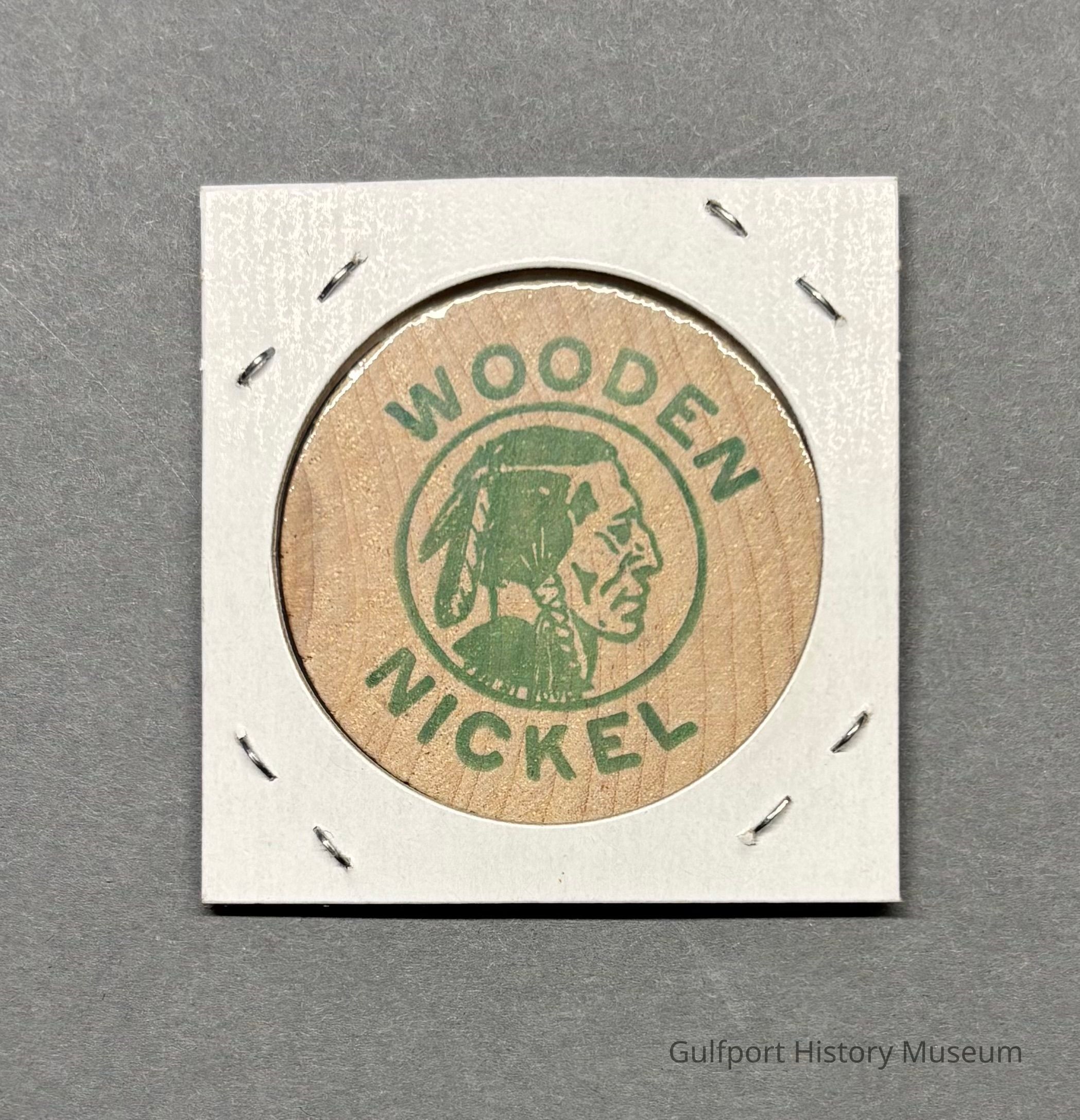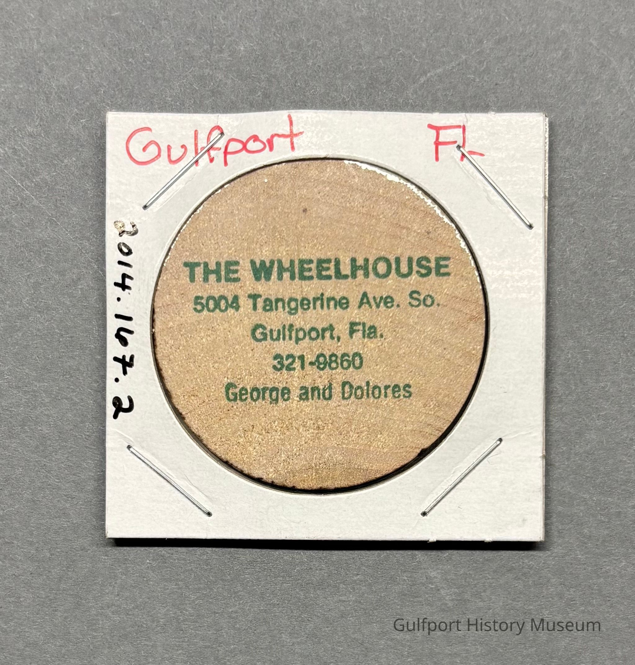 A wooden nickel issued by the Wheelhouse at 5004 Tangerine Ave S.