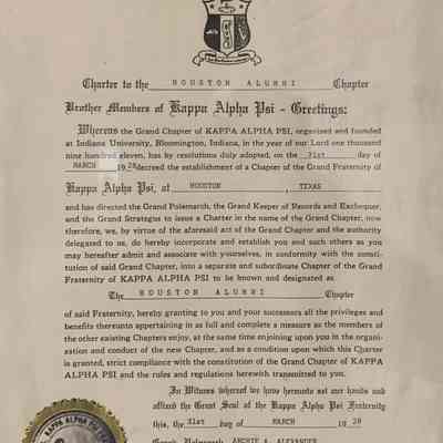 1928 Charter - Houston Alumni Chapter of ΚΑΨ.
