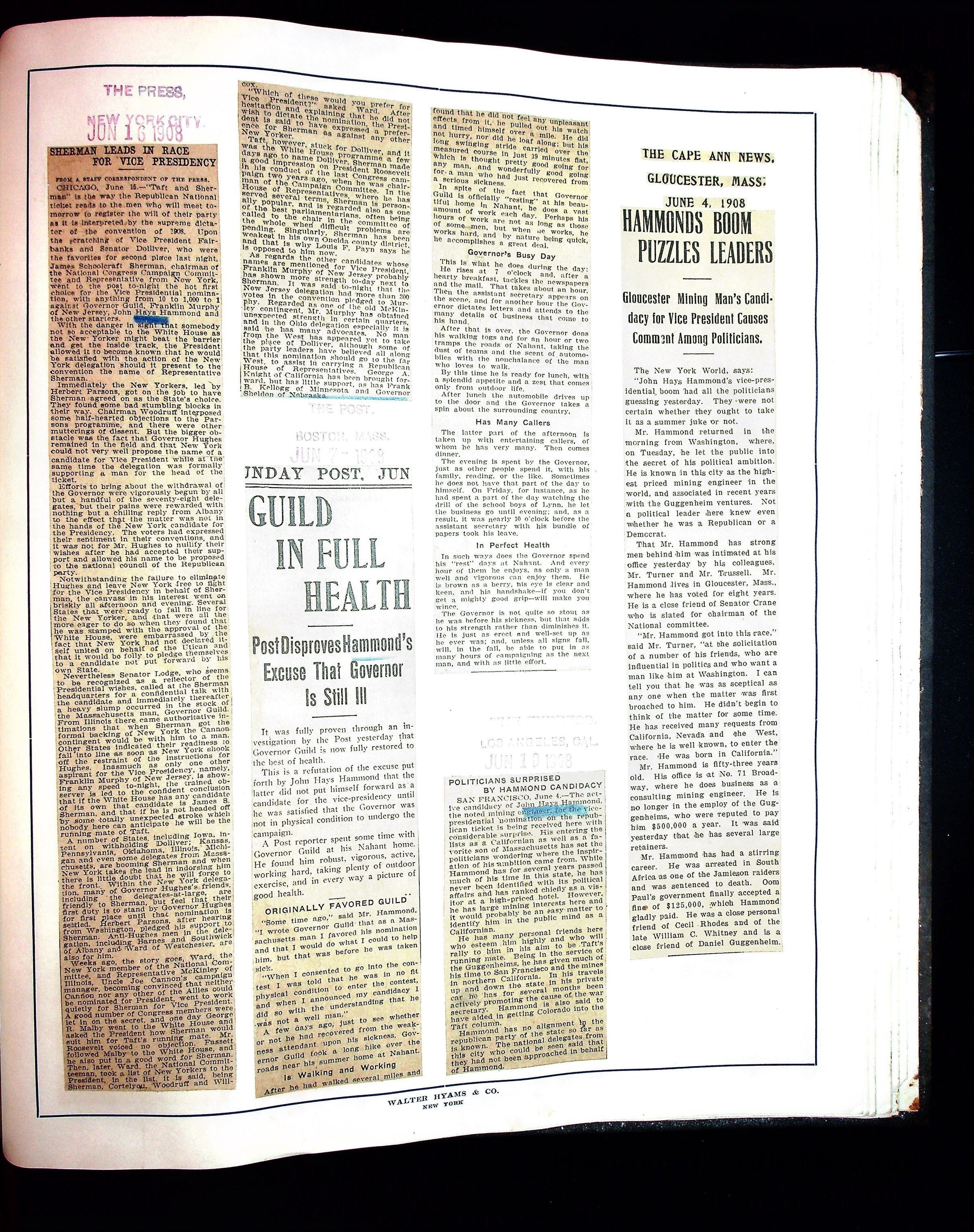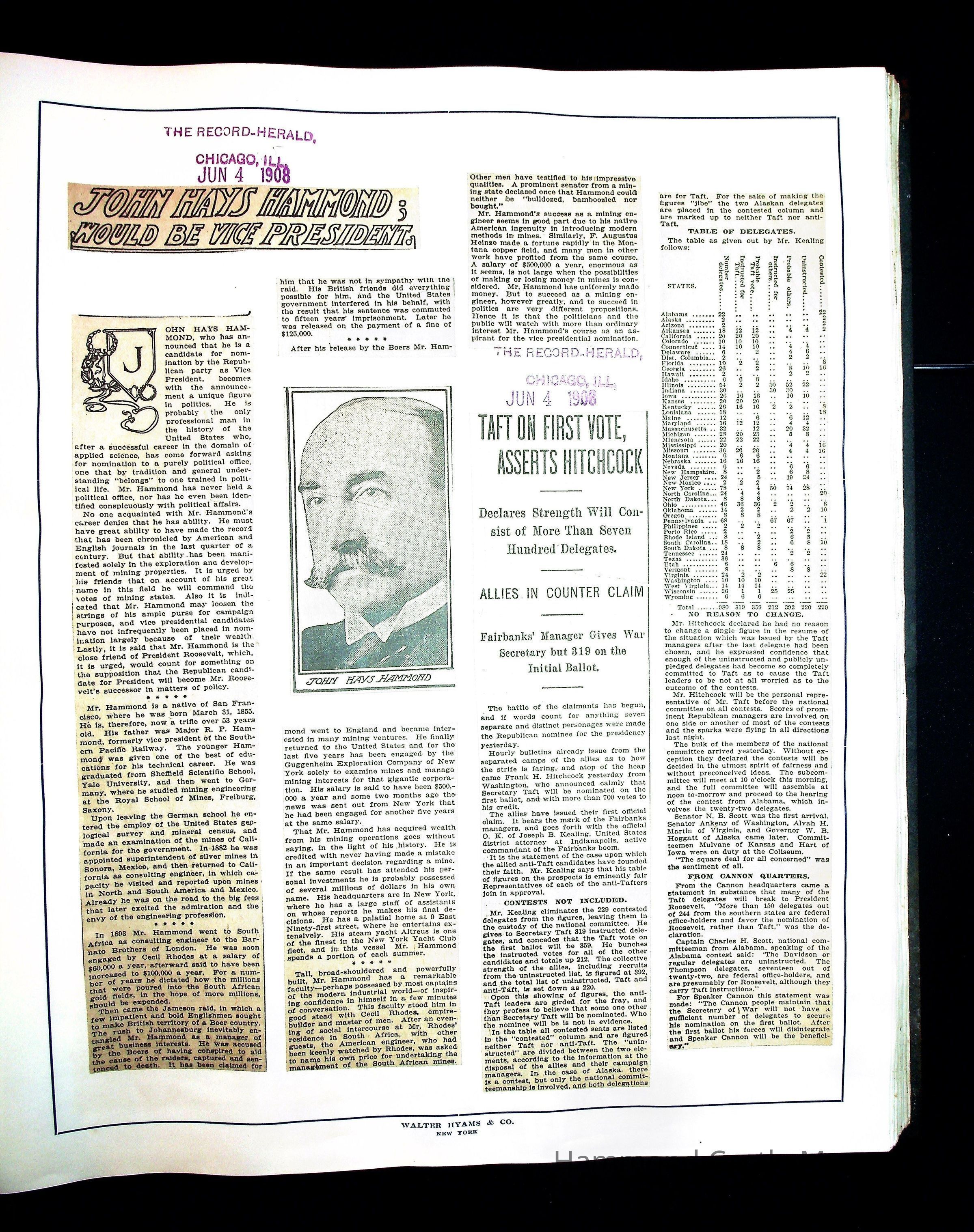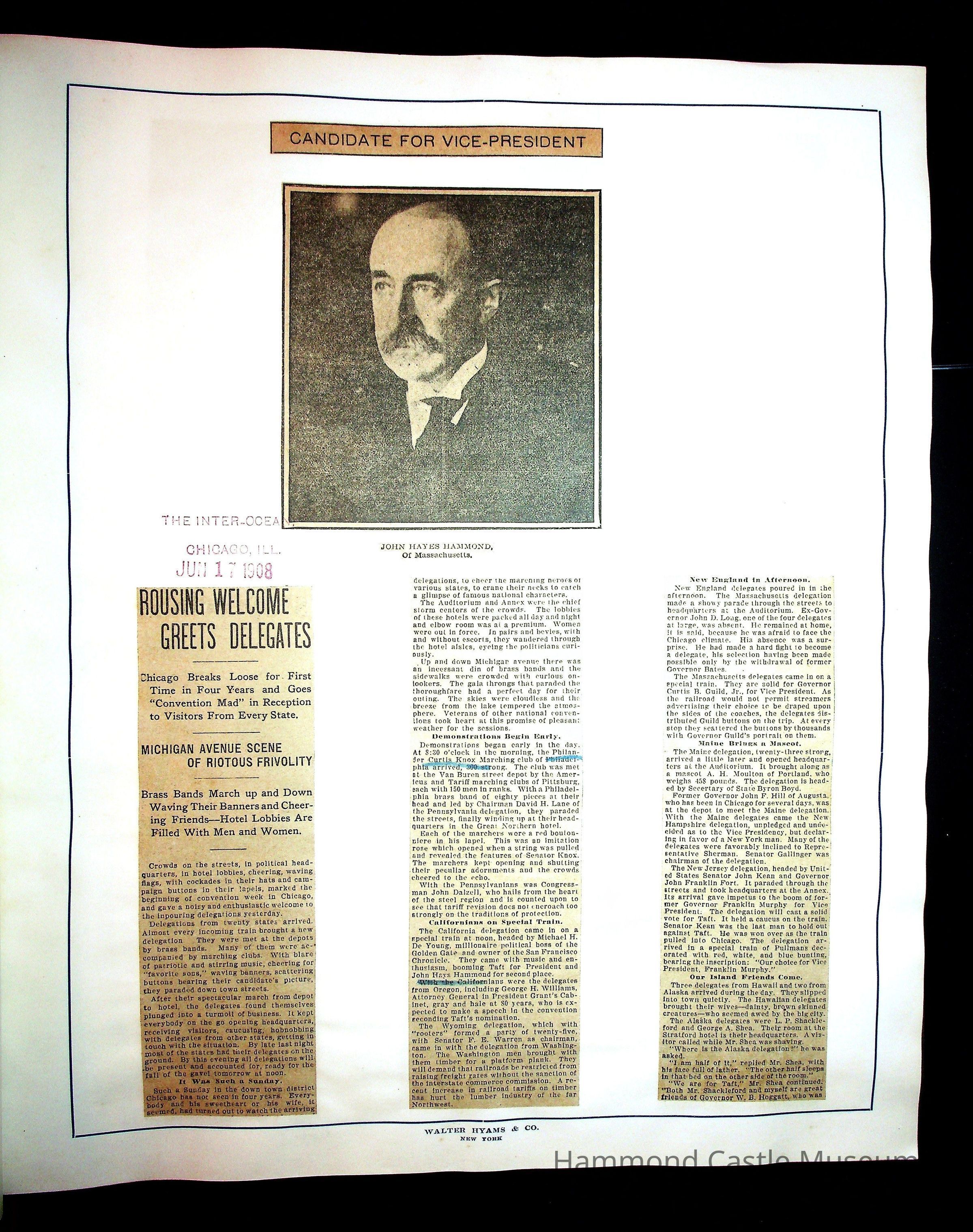 Articles & Images from Taft campaign & John Hays Hammond Sr vice-presidency run