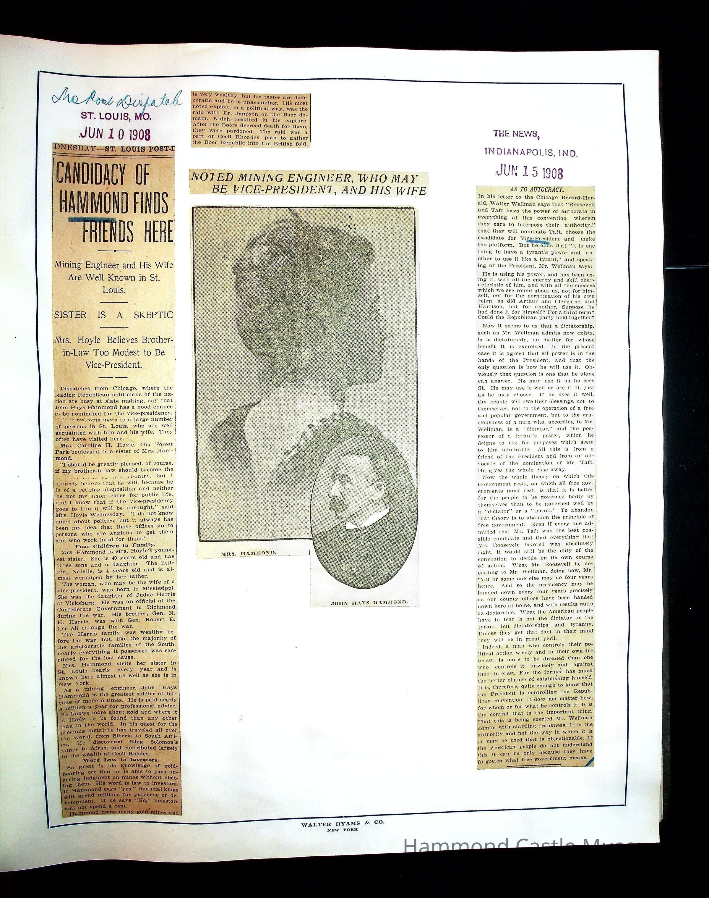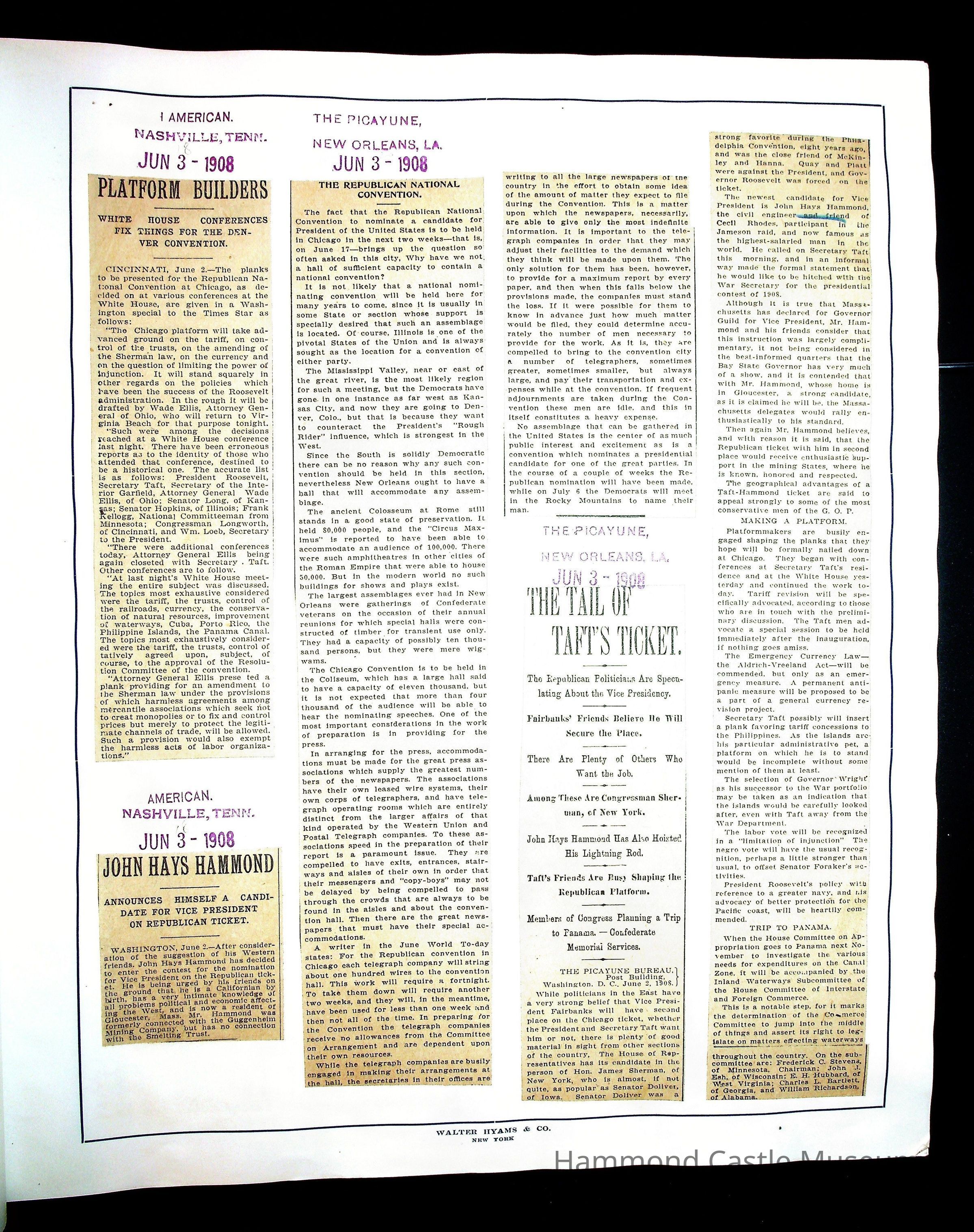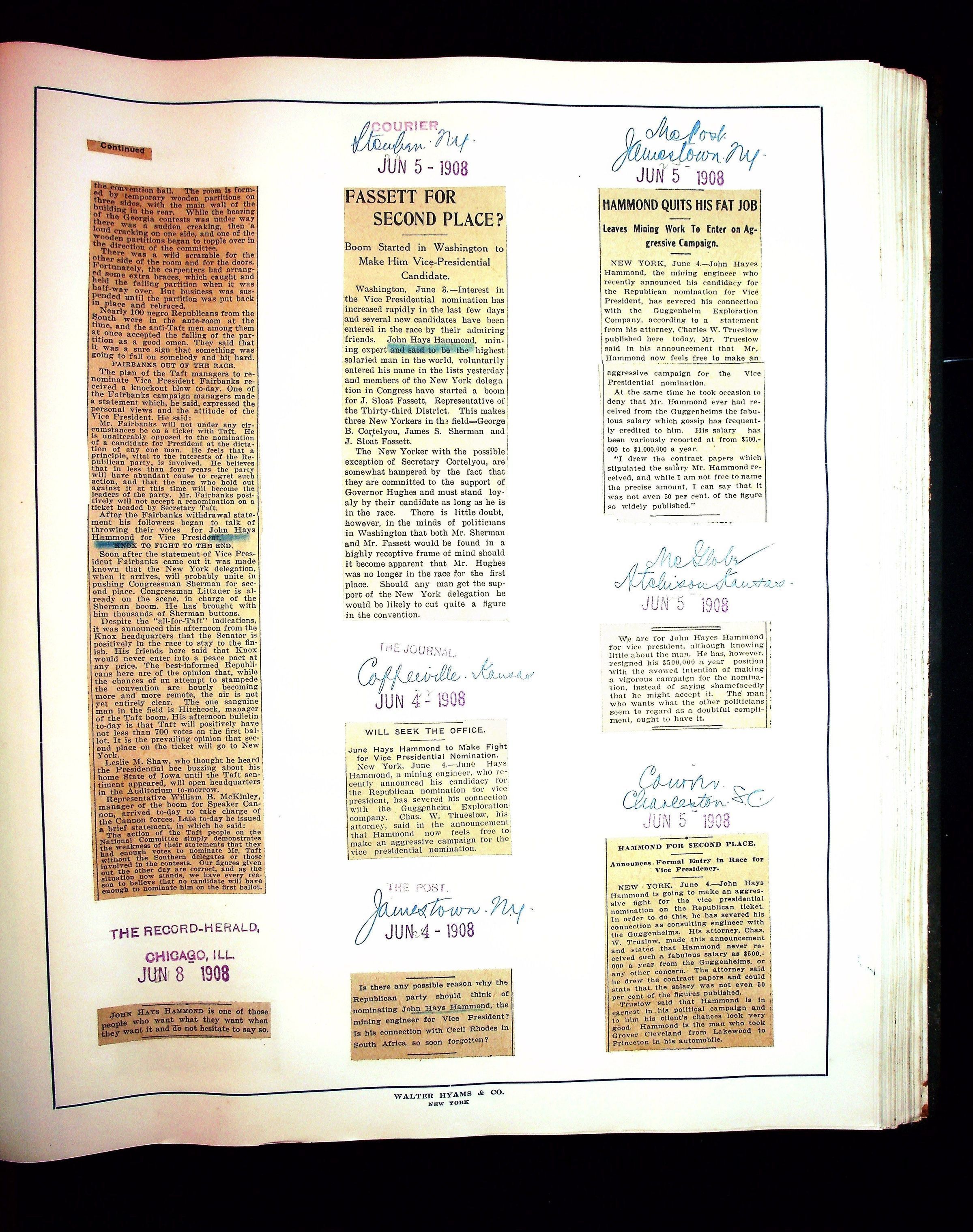 Articles & Images from Taft campaign & John Hays Hammond Sr vice-presidency run