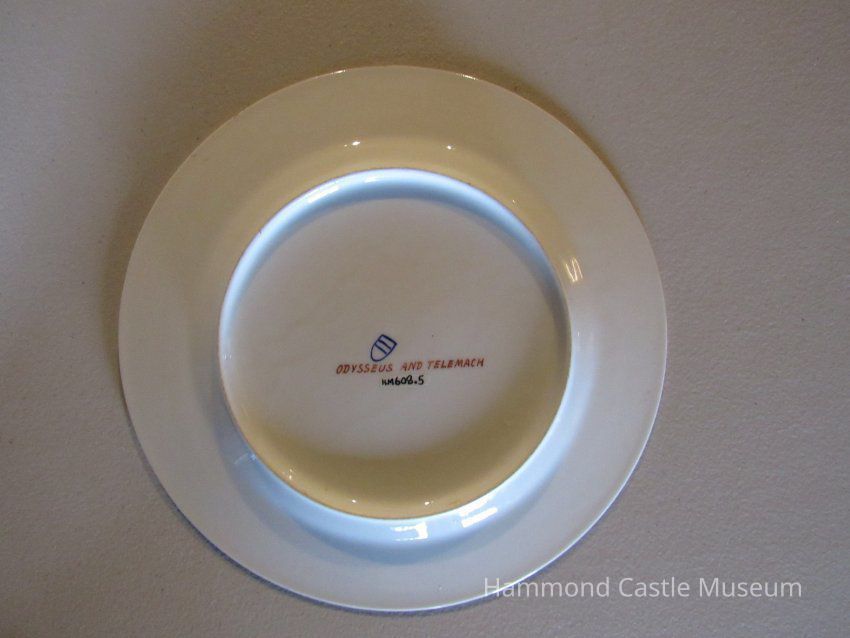Mid-19th century Austrian hard paste ceramic plate with Classical hand painted scene. Each plate hand signed. Border of lavender and gilt. Stamped "Vienna, Austria" with hand painted marking in blue.