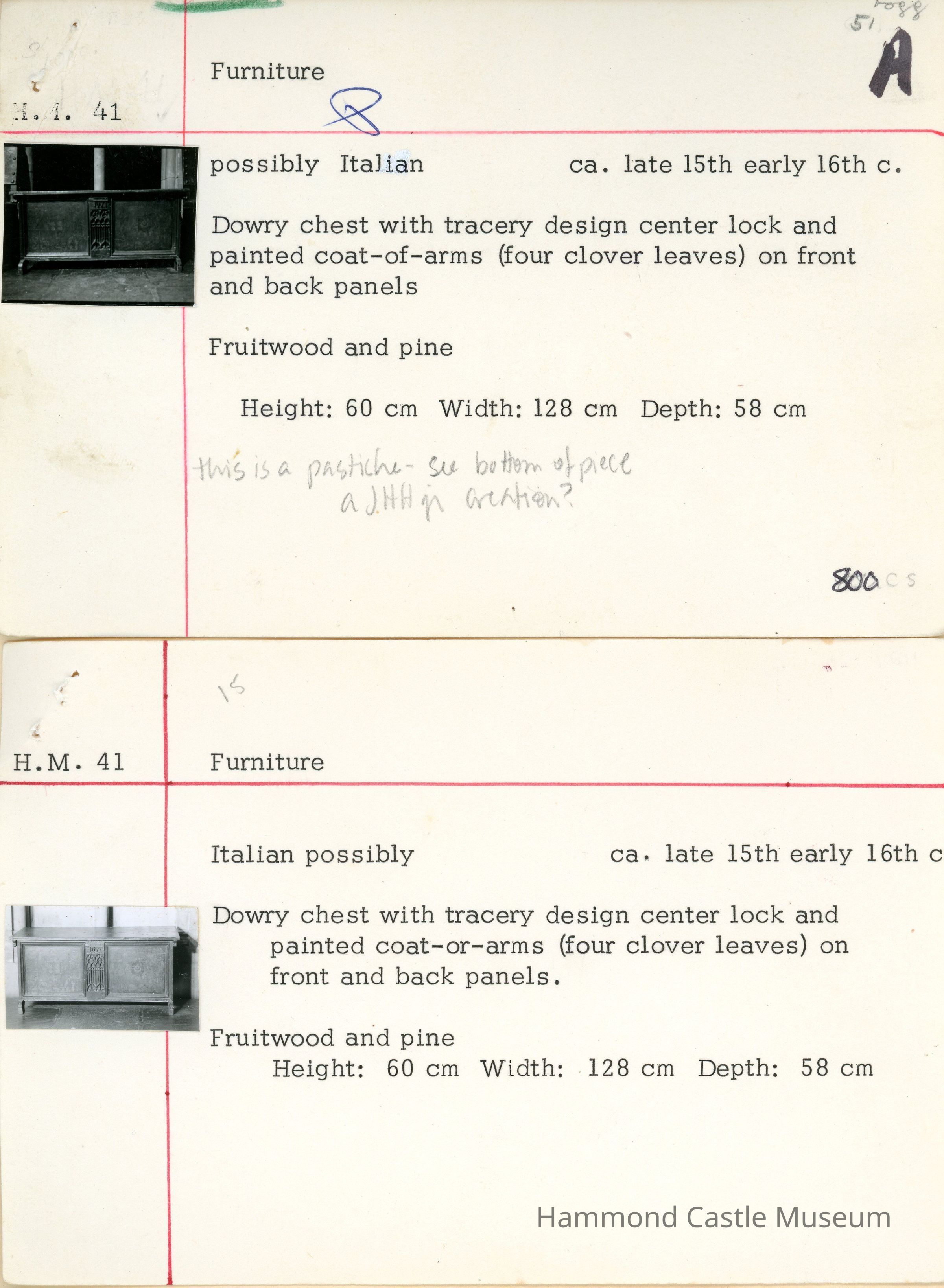 15th - 16th c. Italian Dowry Chest with Tracery and Coat of Arms