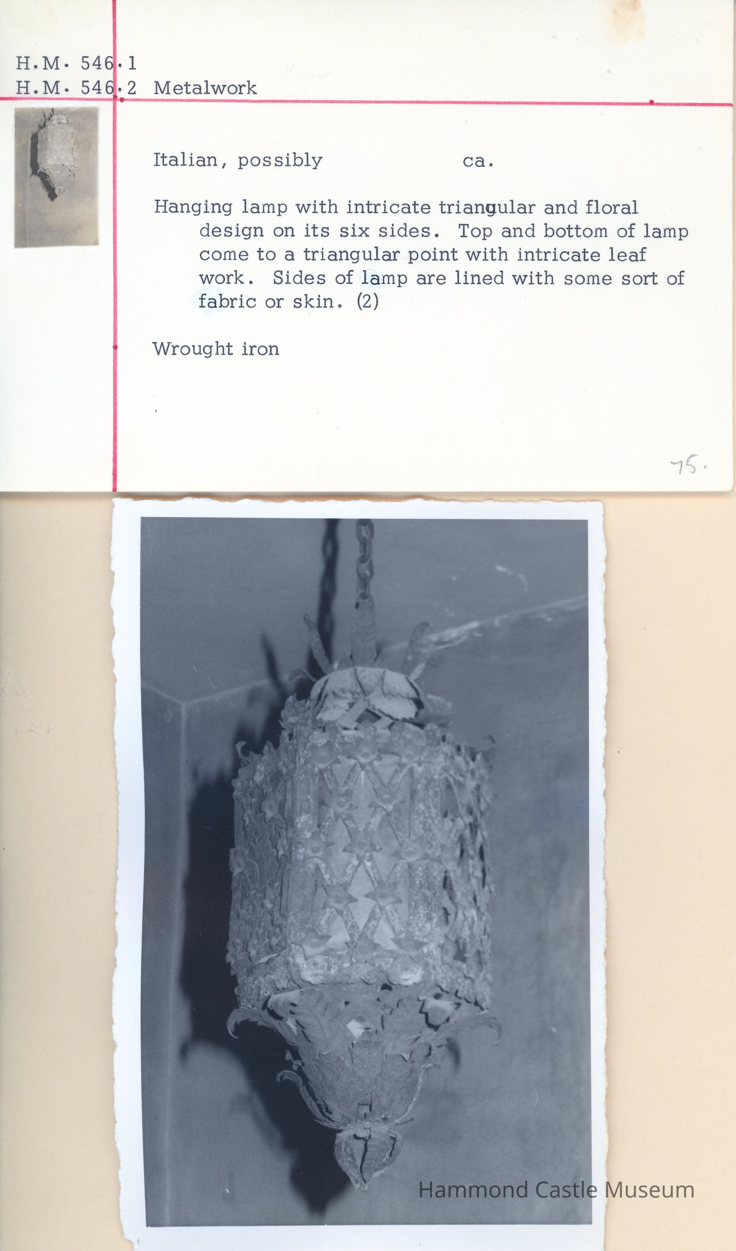 15th c. Italian Hanging Lantern w Triangular & Floral Design, pair