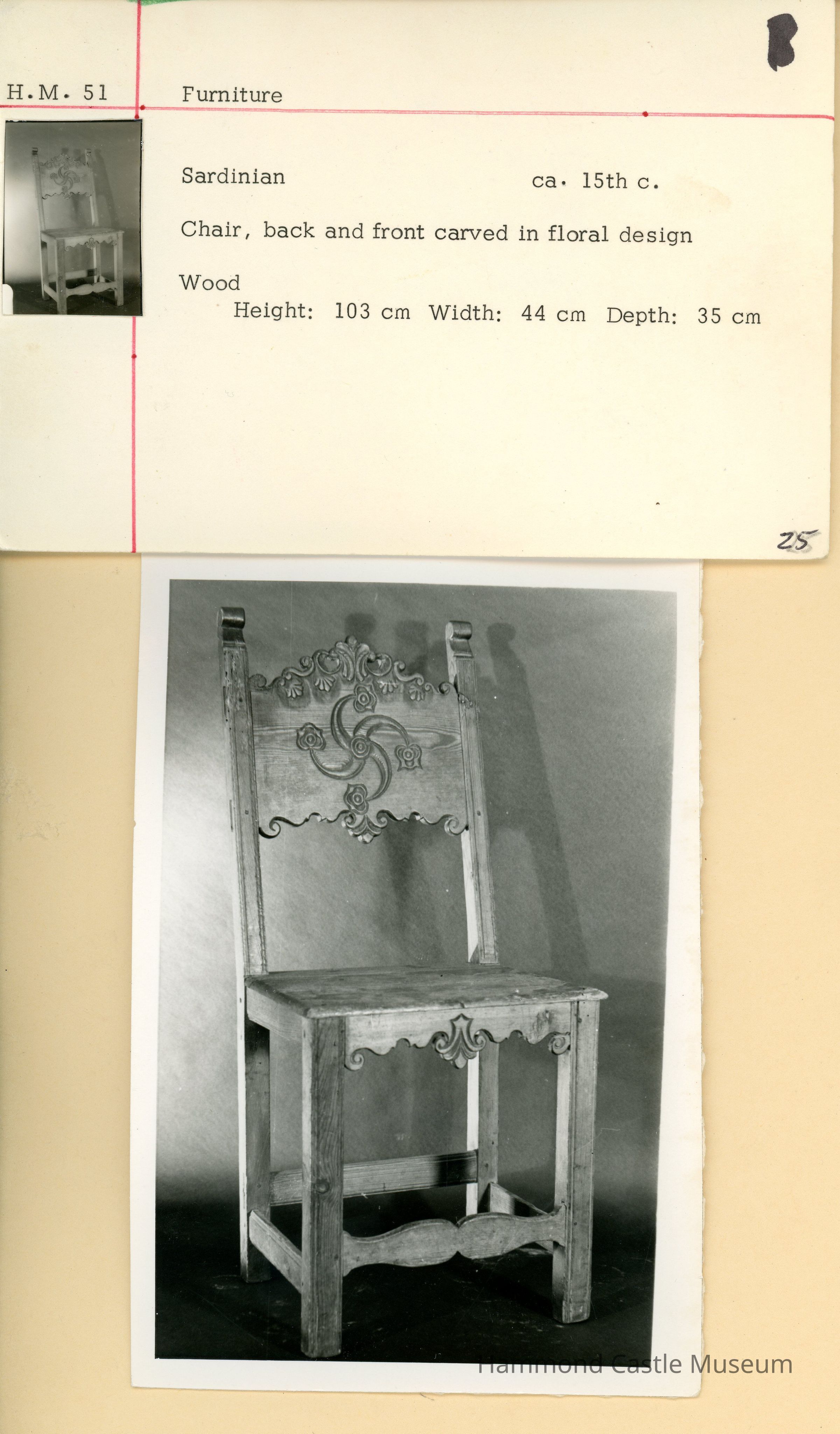15th c. Sardinian Chair with Carving