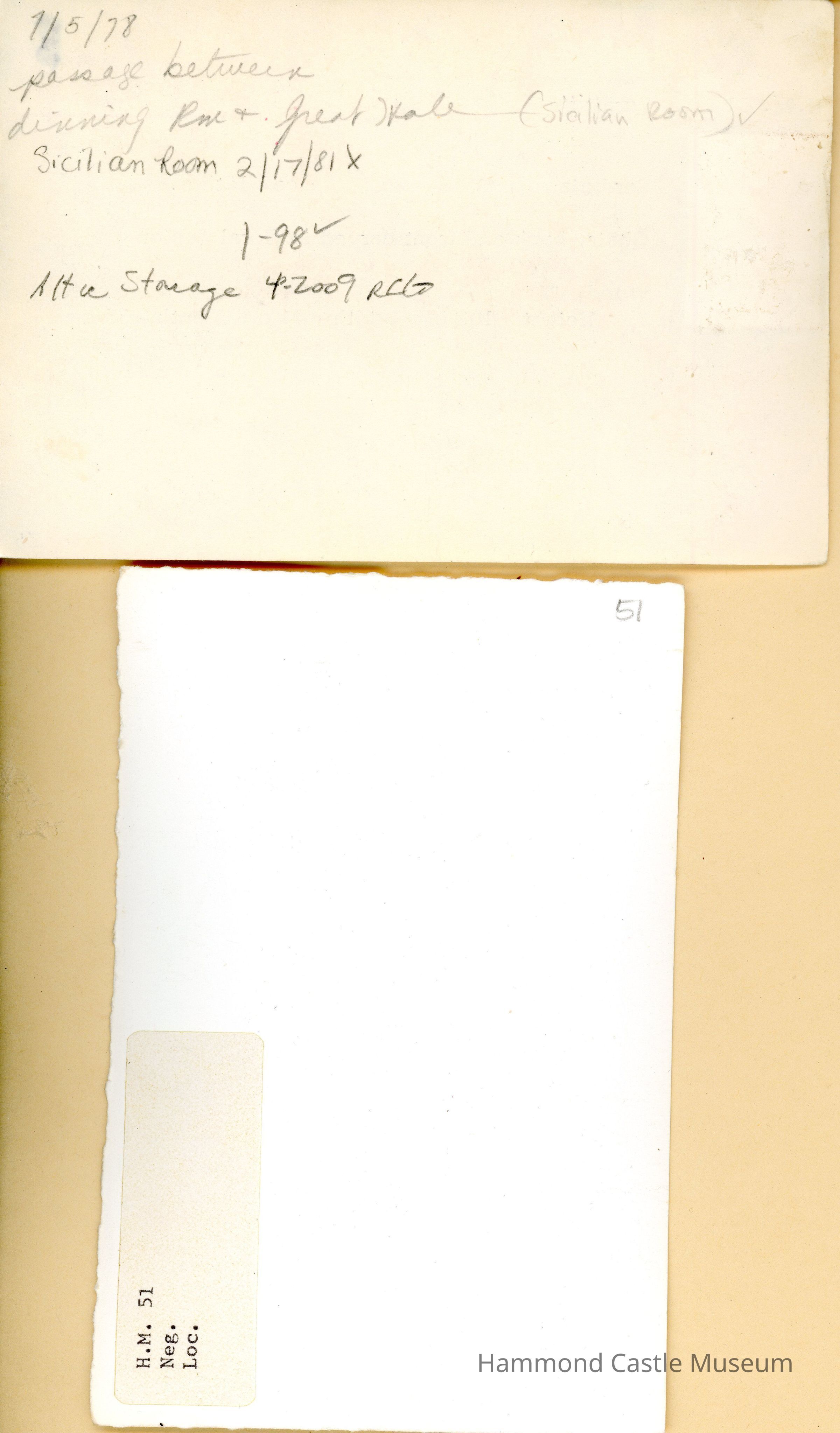 1970ca Handwritten Inventory p(8) - Sicilian Room & Lower Round Dining Room