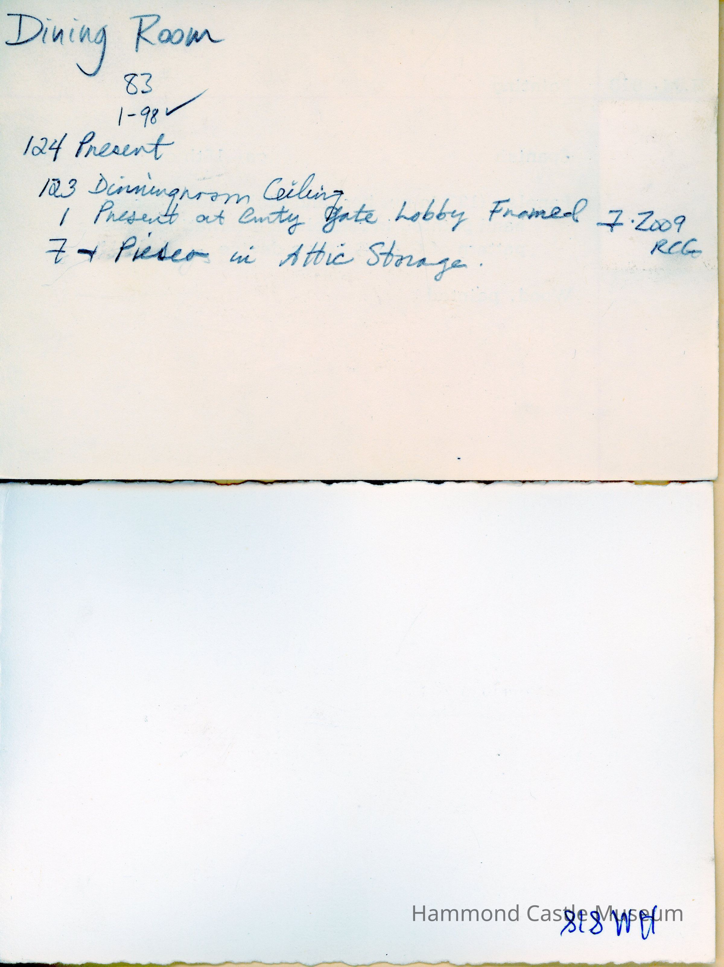 1970ca Handwritten Inventory p(6) - lower guest room & Dining RoomNote Type