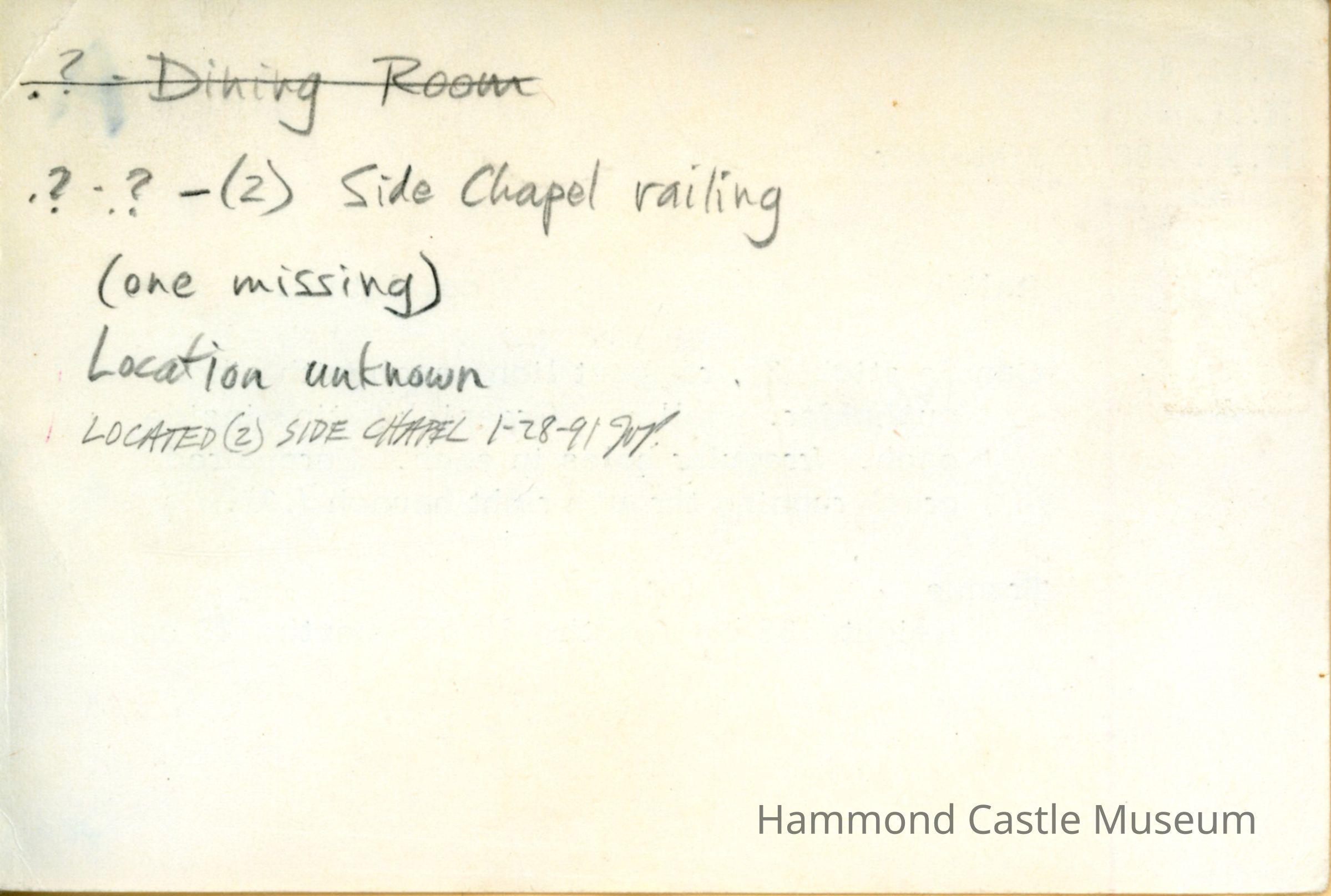 1970ca Handwritten Inventory p(21) - Side Chapel-Sunroom & Great HallNote Type