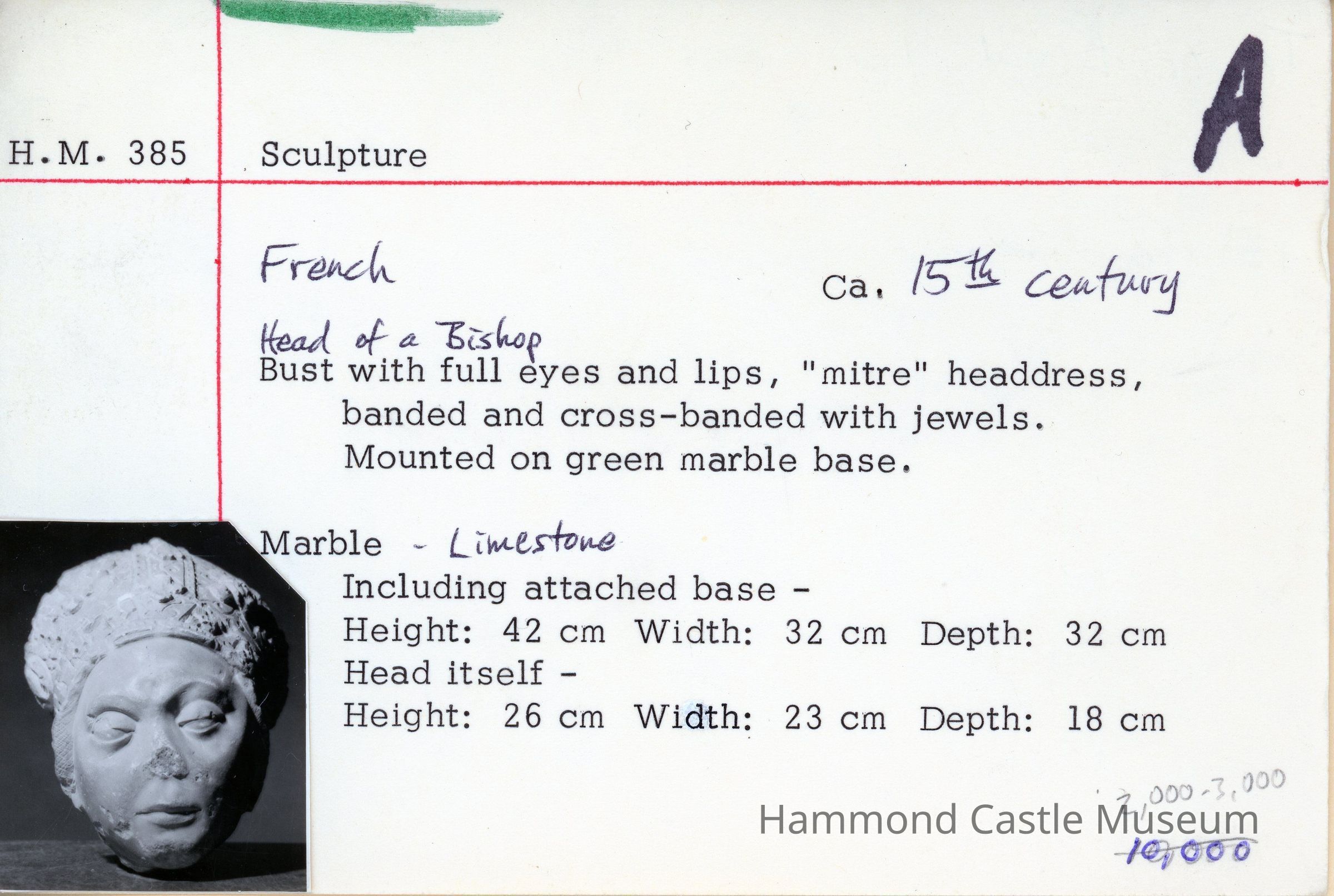 15thc Marble Bishop's Head from the Abbey of ClunyEntry/Object ID