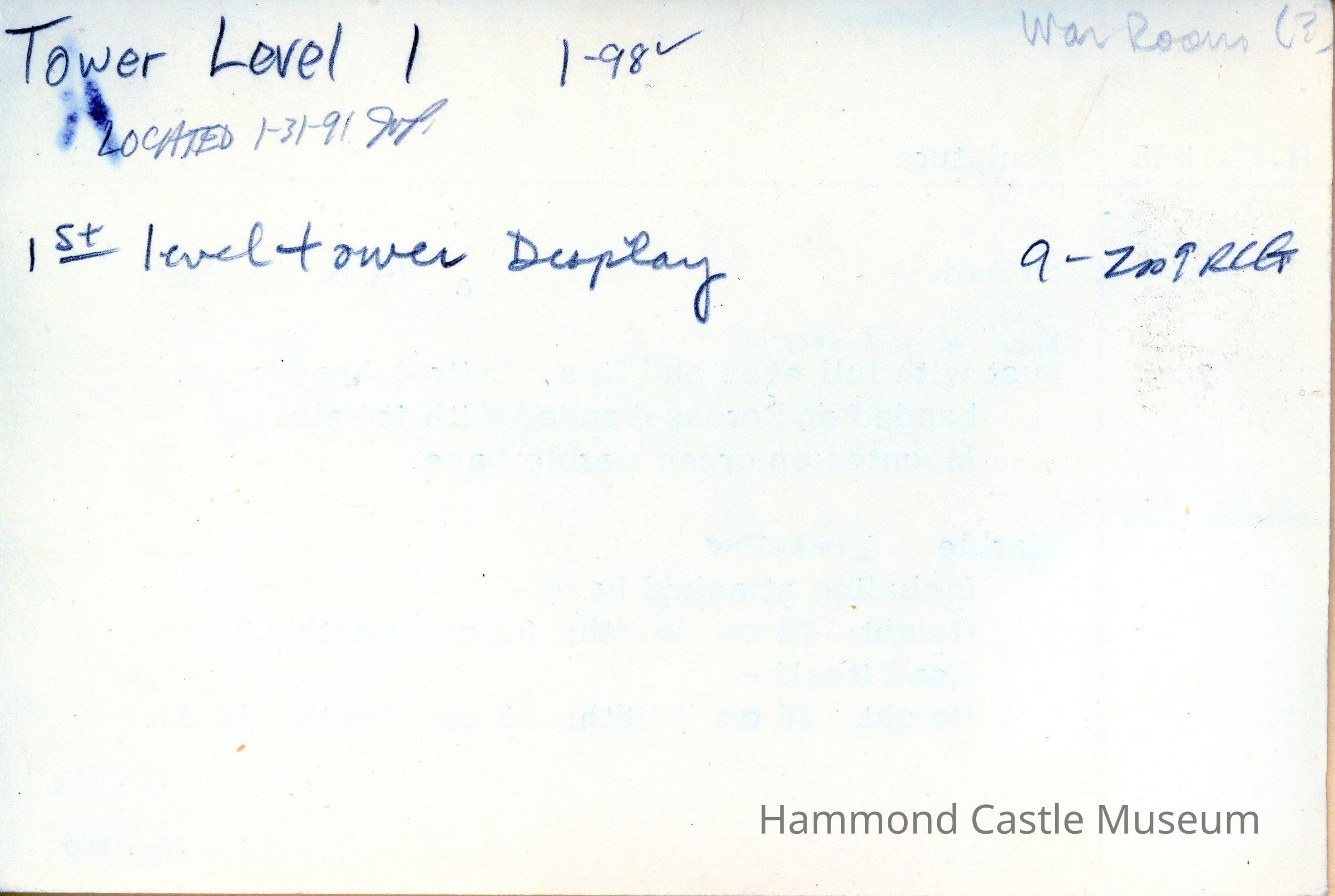 Purchased by Hammond in 1929 from art dealer, George Grey Barnard, whose medieval collection became the MET Cloister's collection. (see letter)Collection