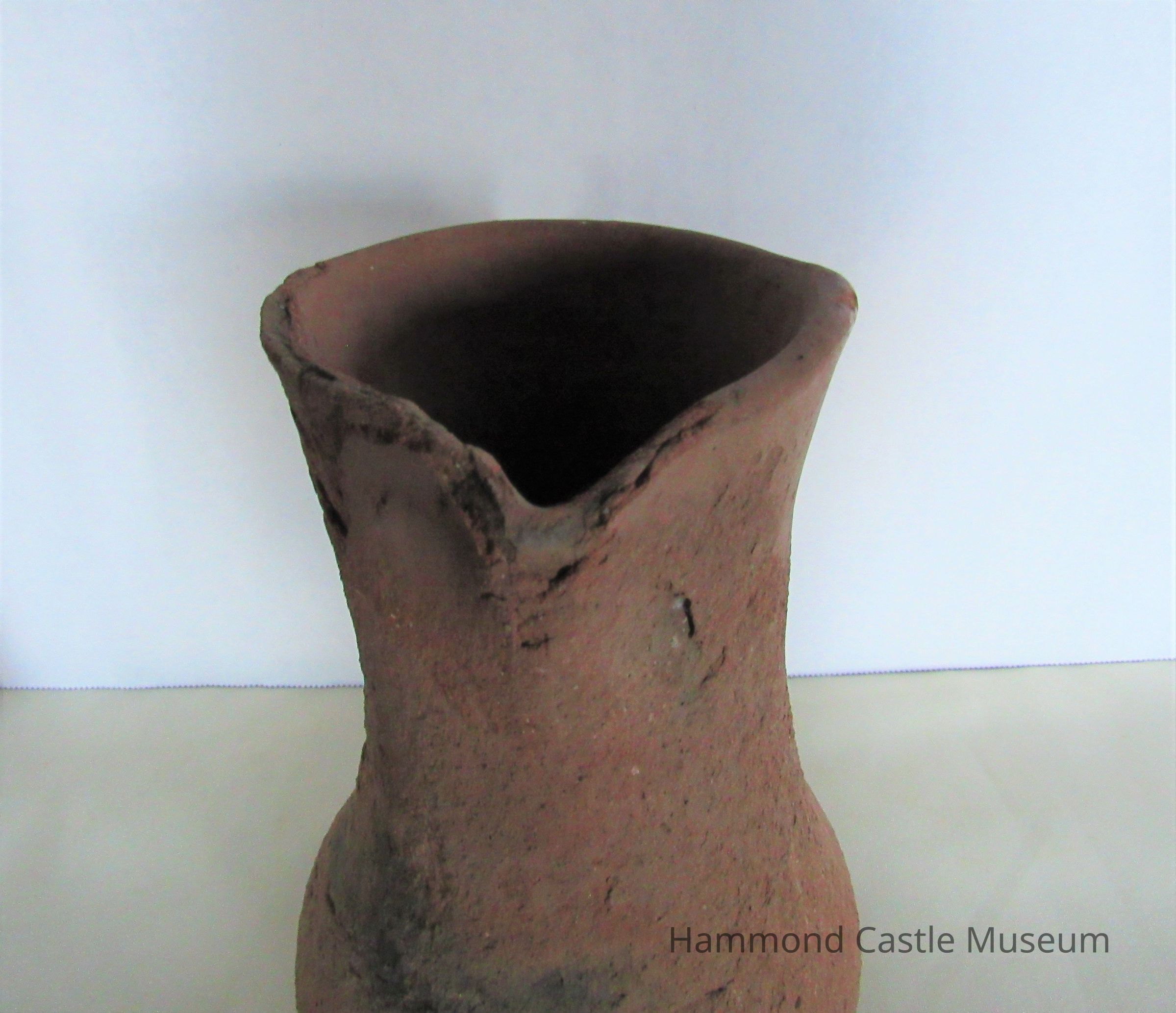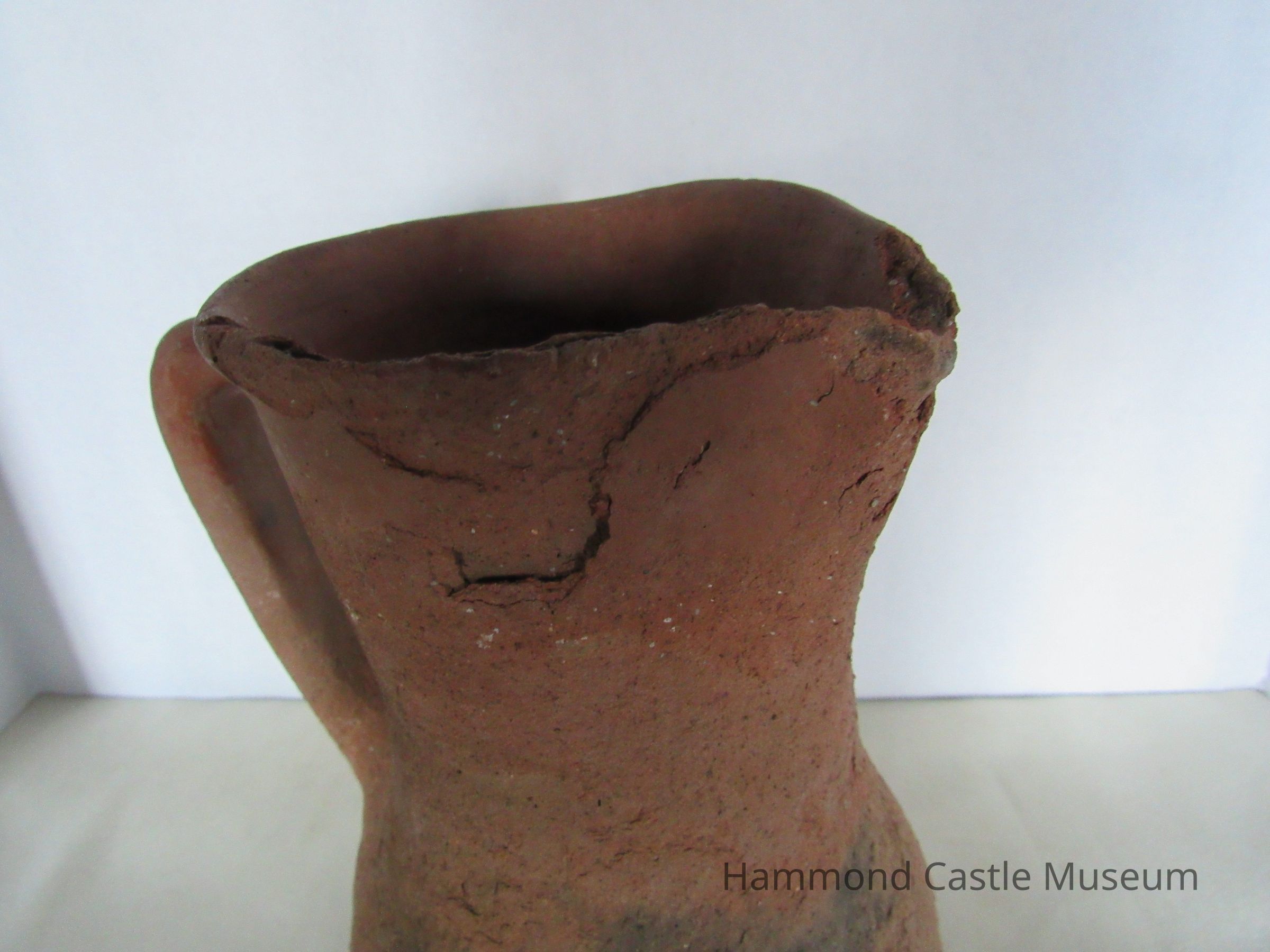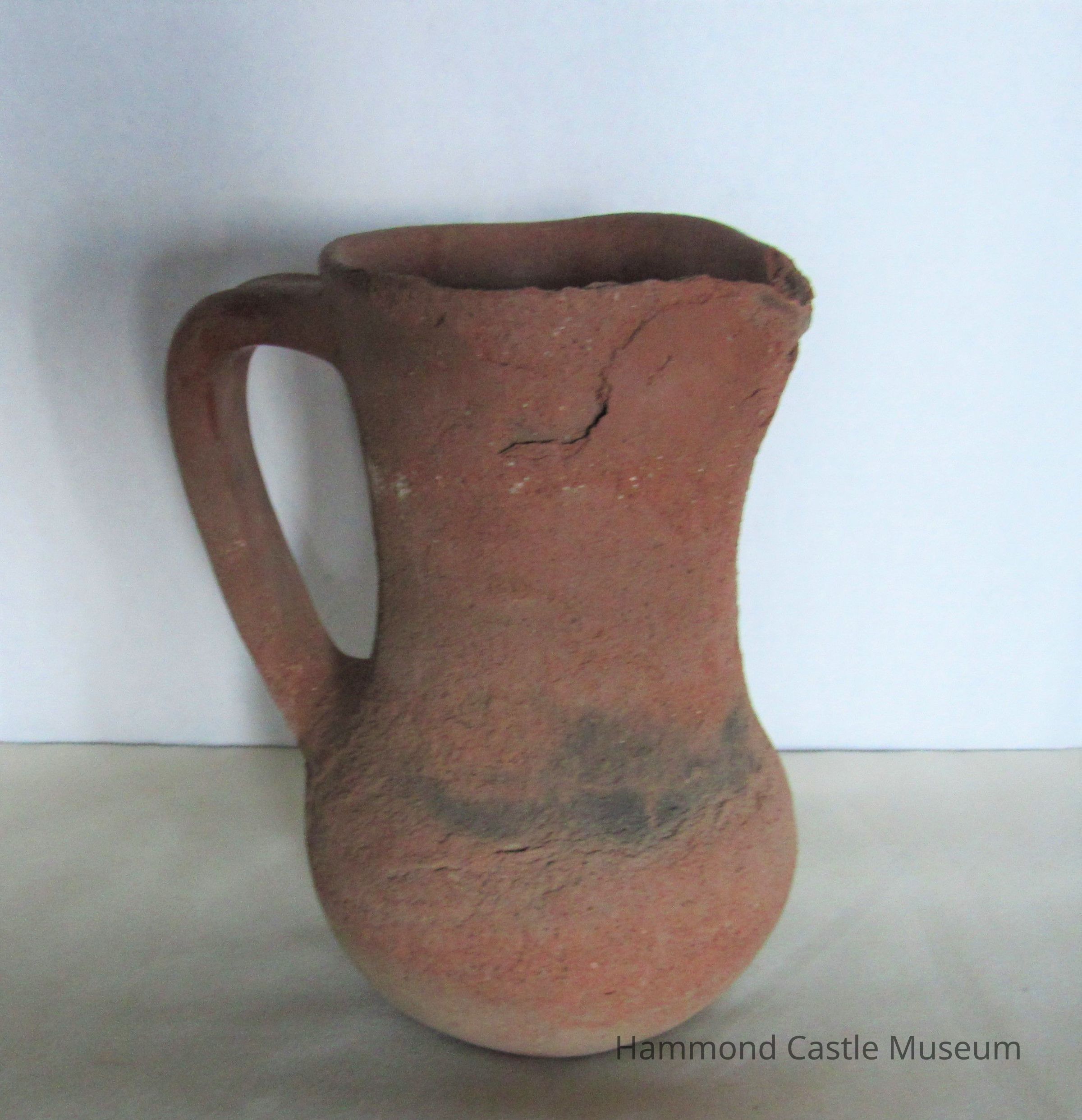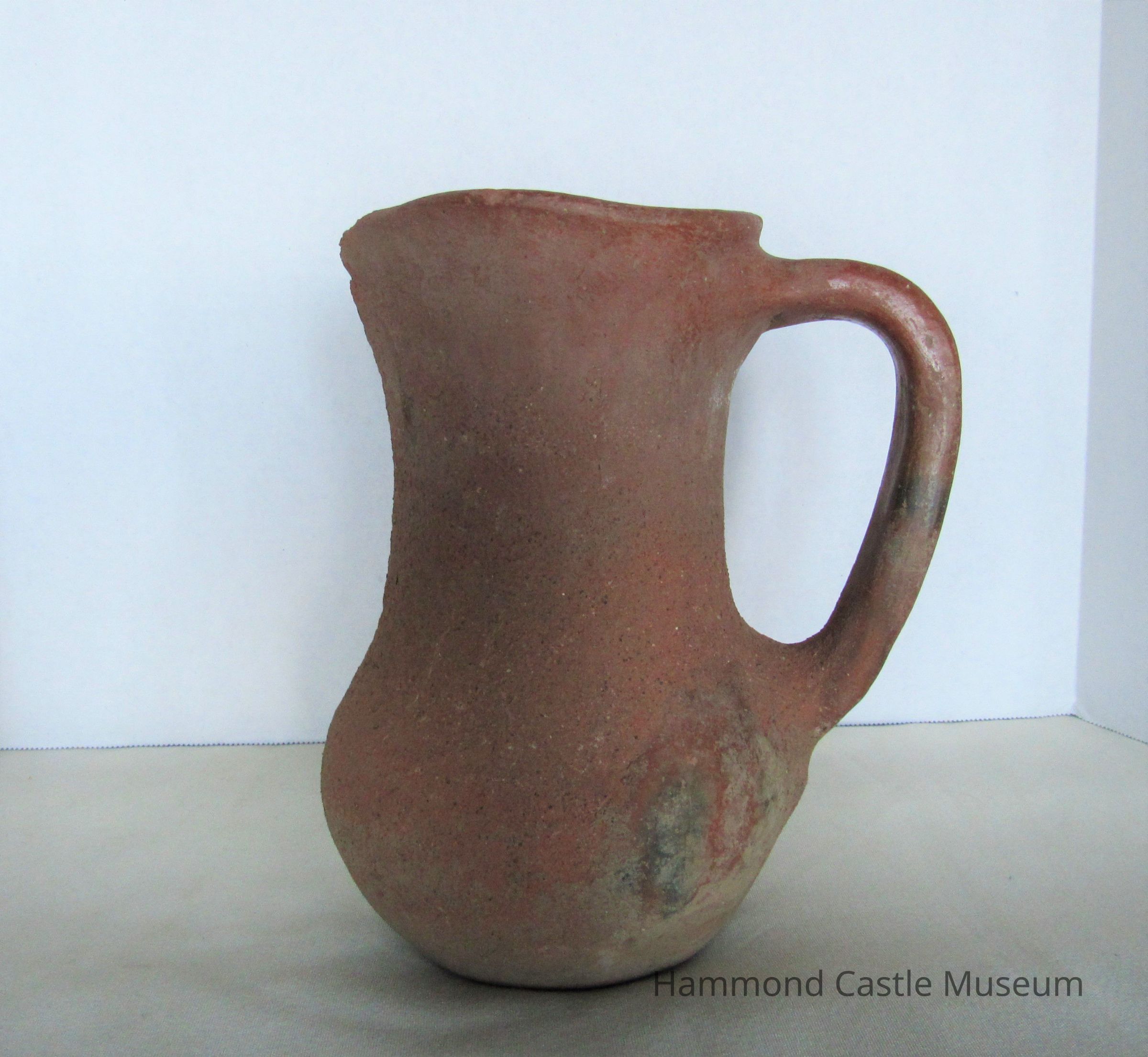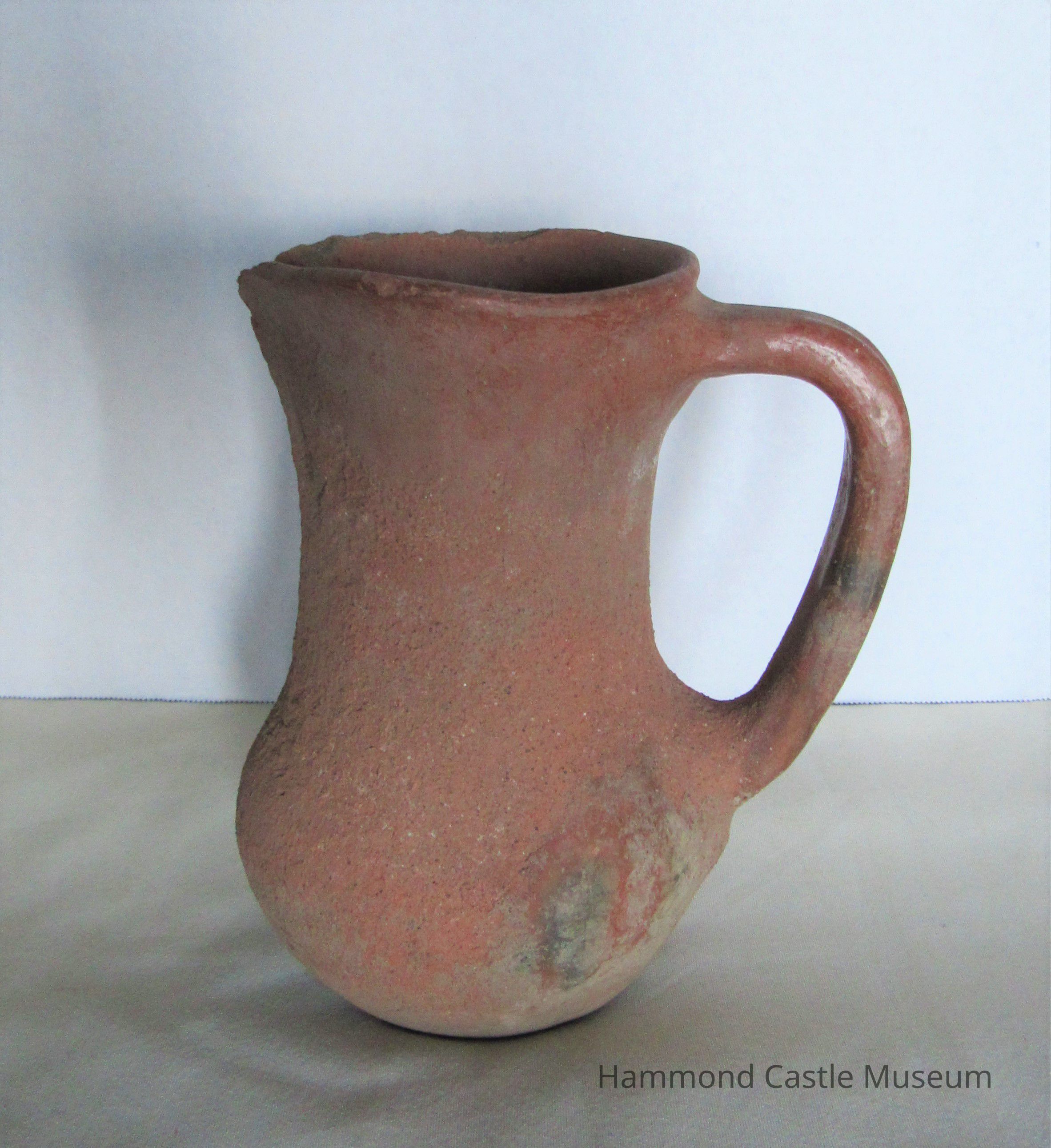 15th century ceramic jug. Unglazed, sienna color.