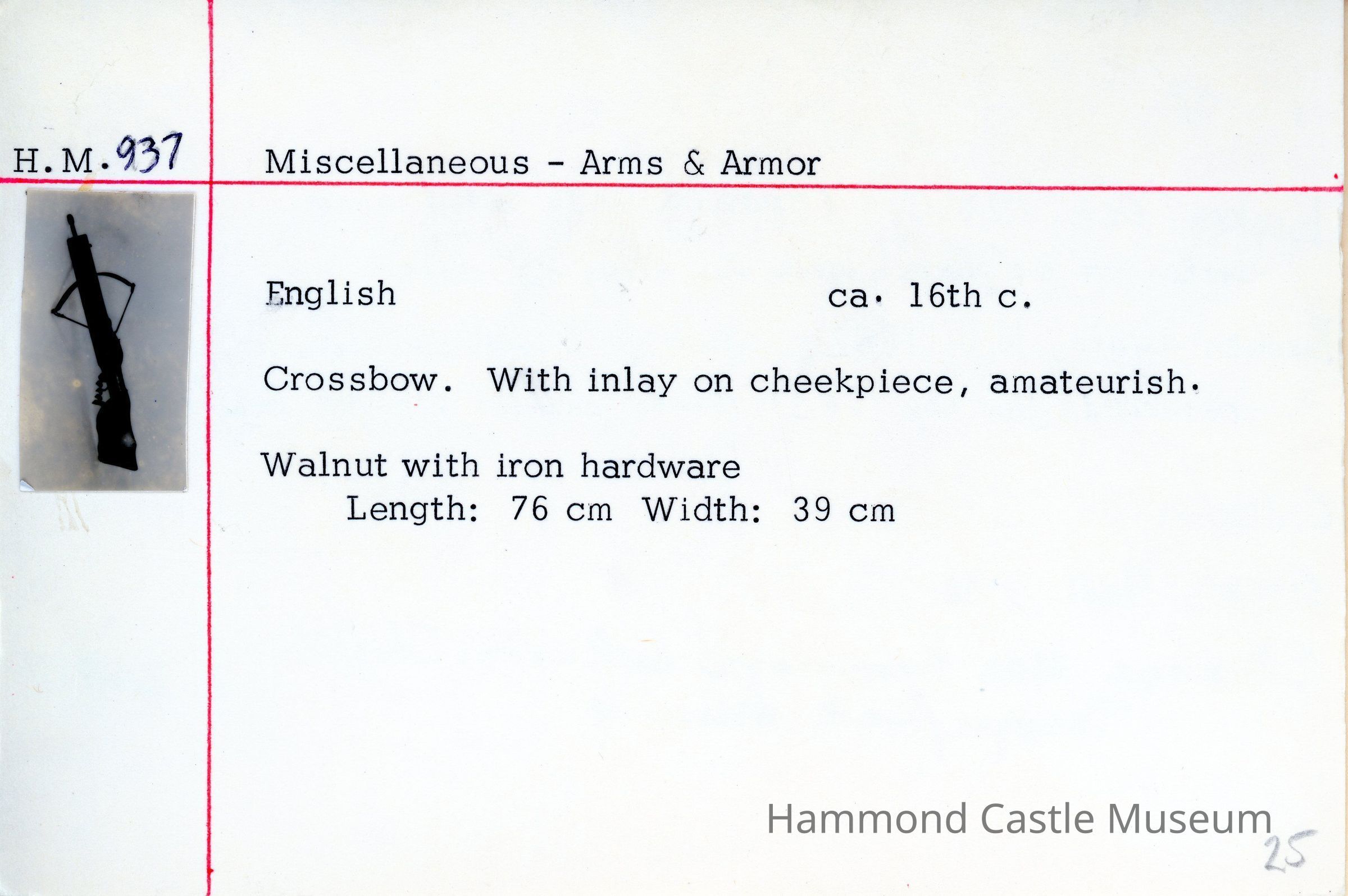 16th-18th century English crossbow. With inlay on cheekpiece, amateurish.