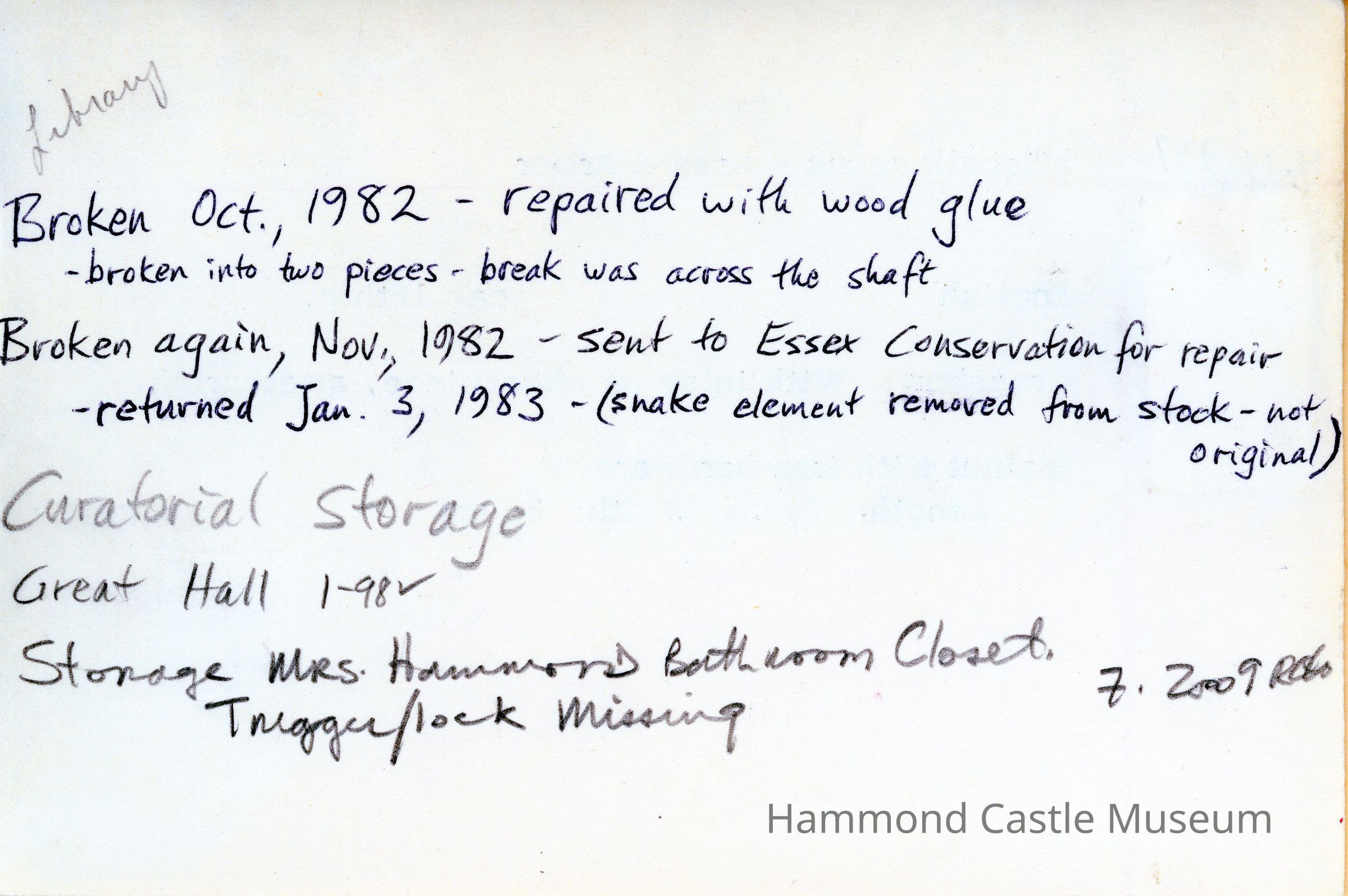 1970ca Handwritten Inventory p(21) - Side Chapel-Sunroom & Great Hall