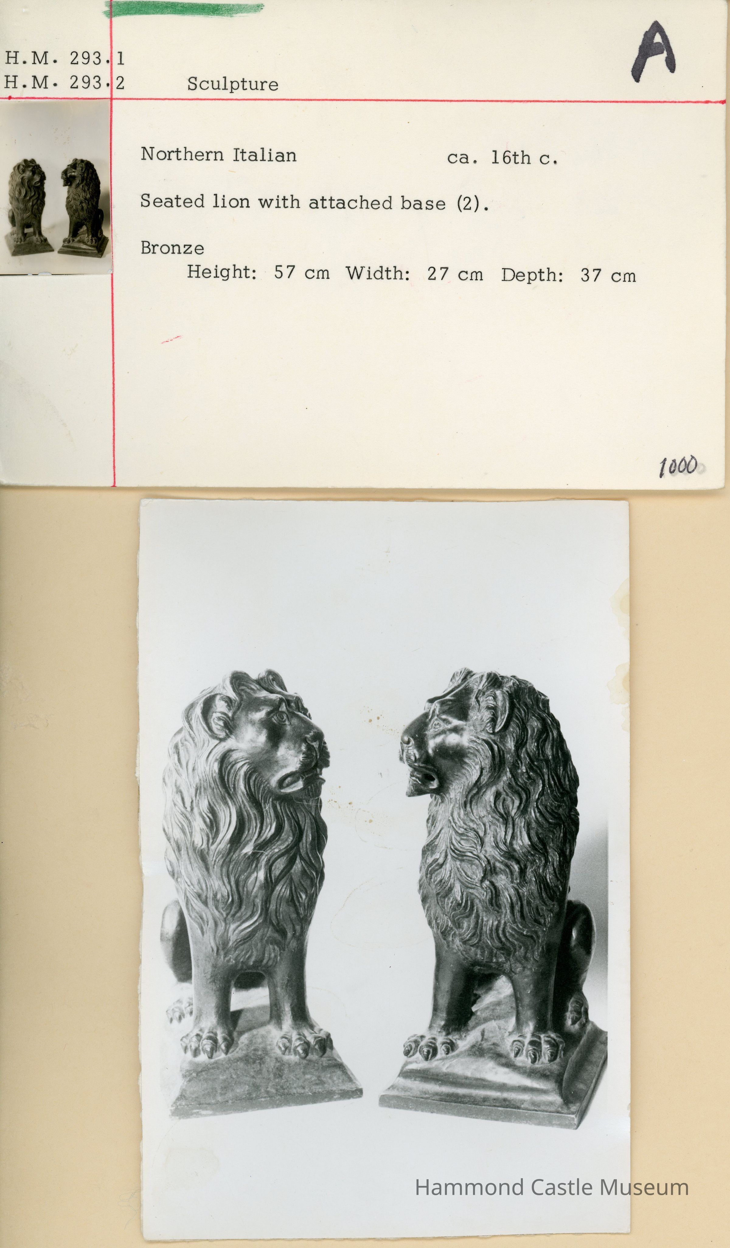 HM293. 1&2 Bronze Lions in Great Hall (1984 cleaning report)