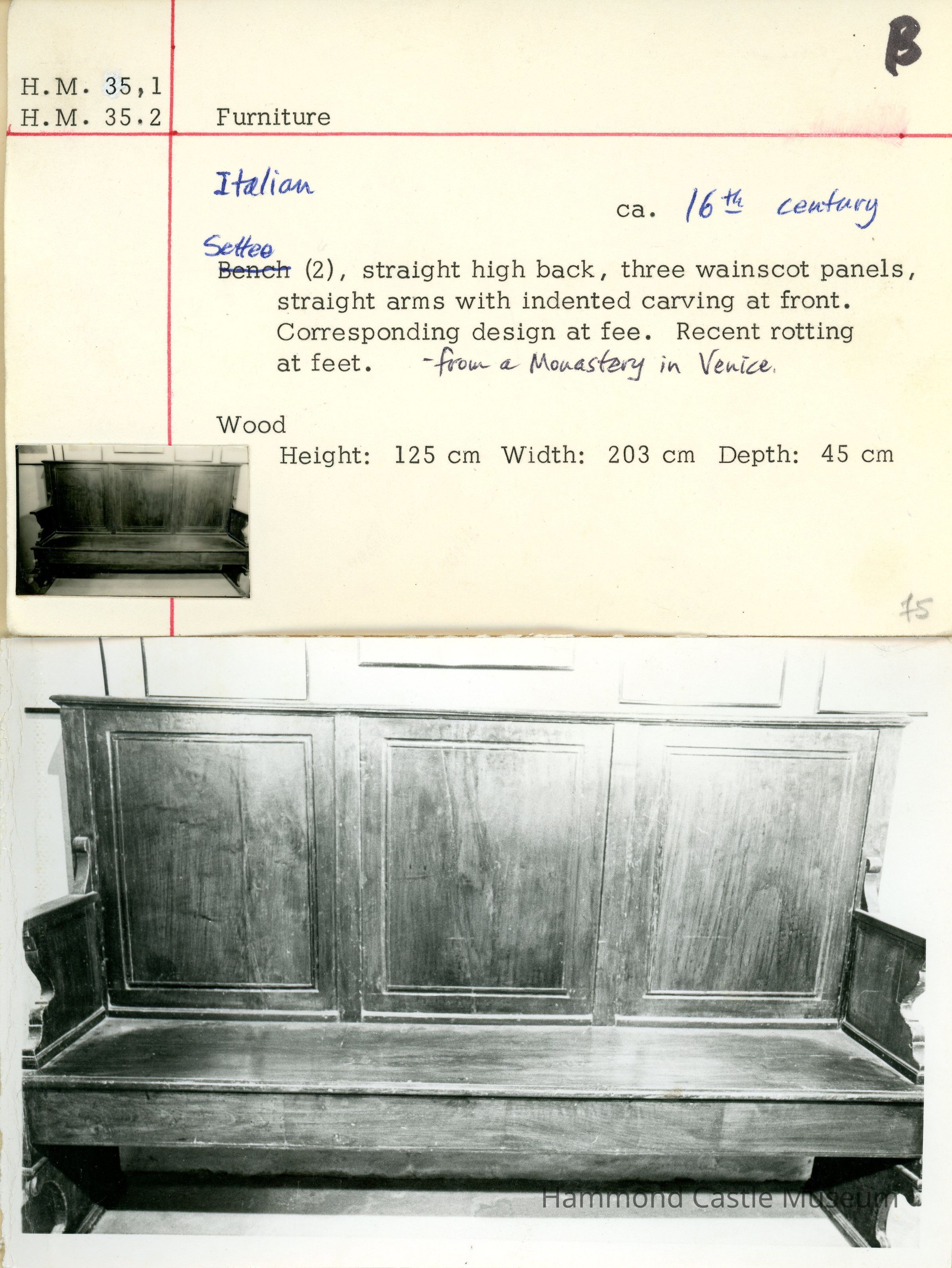 16th c. Venetian Monastery BenchesEntry/Object ID