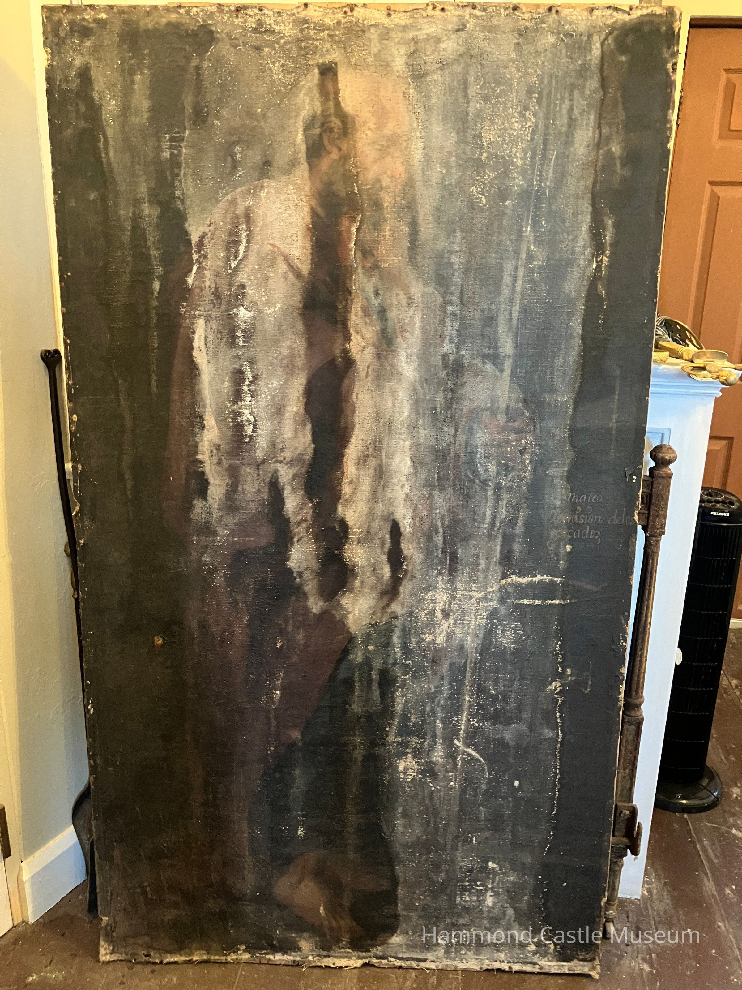 Oil on canvas attached to wood panel, approx 4 feet x 5 1/2 feet