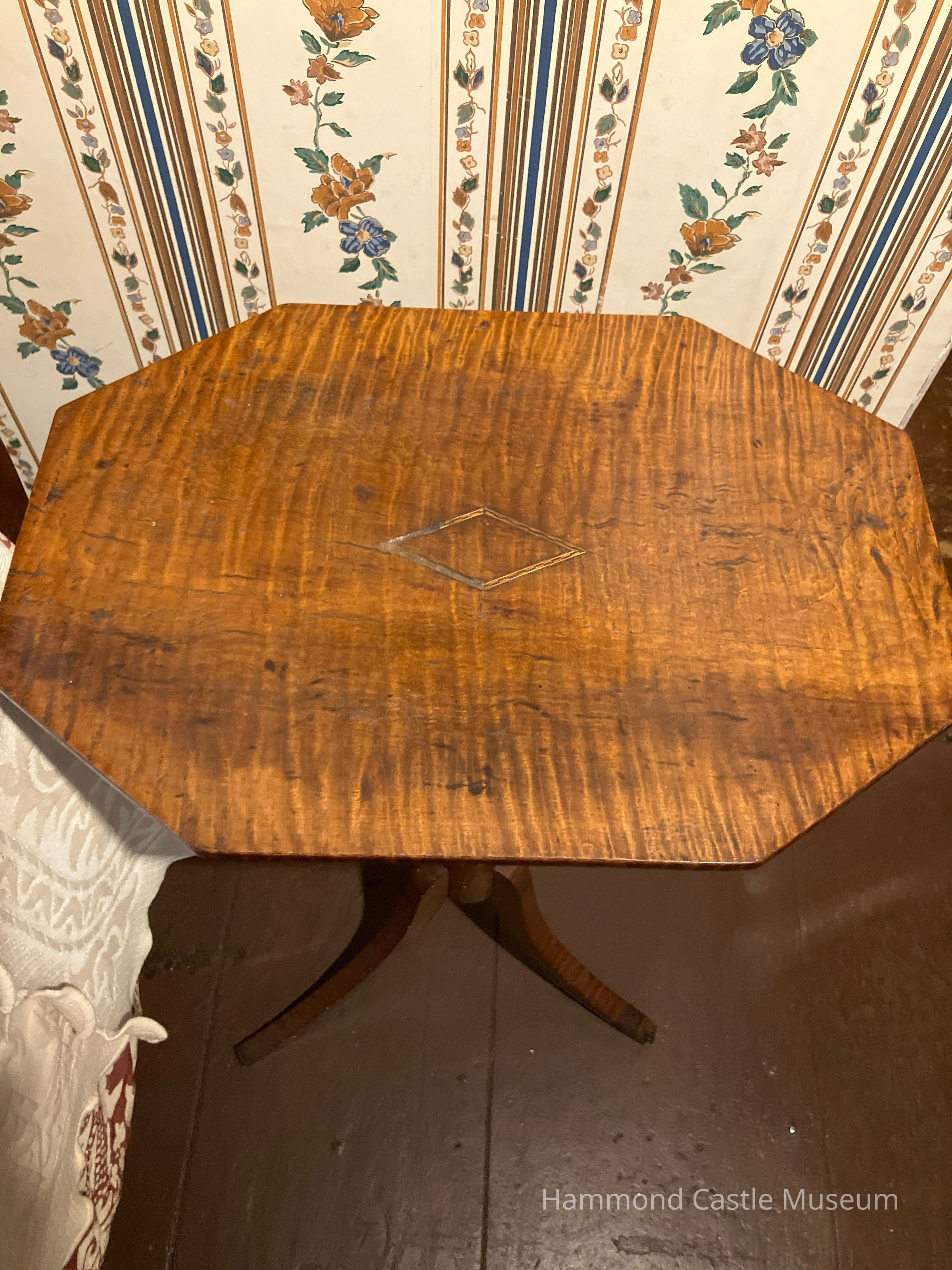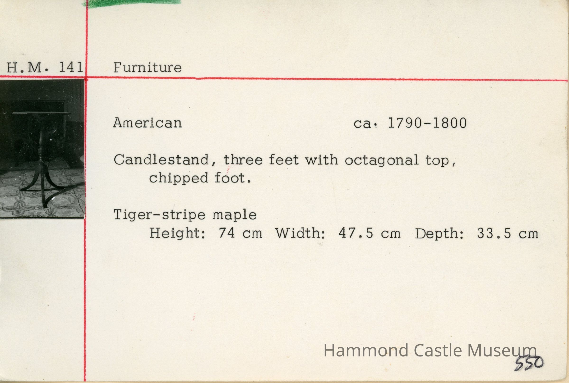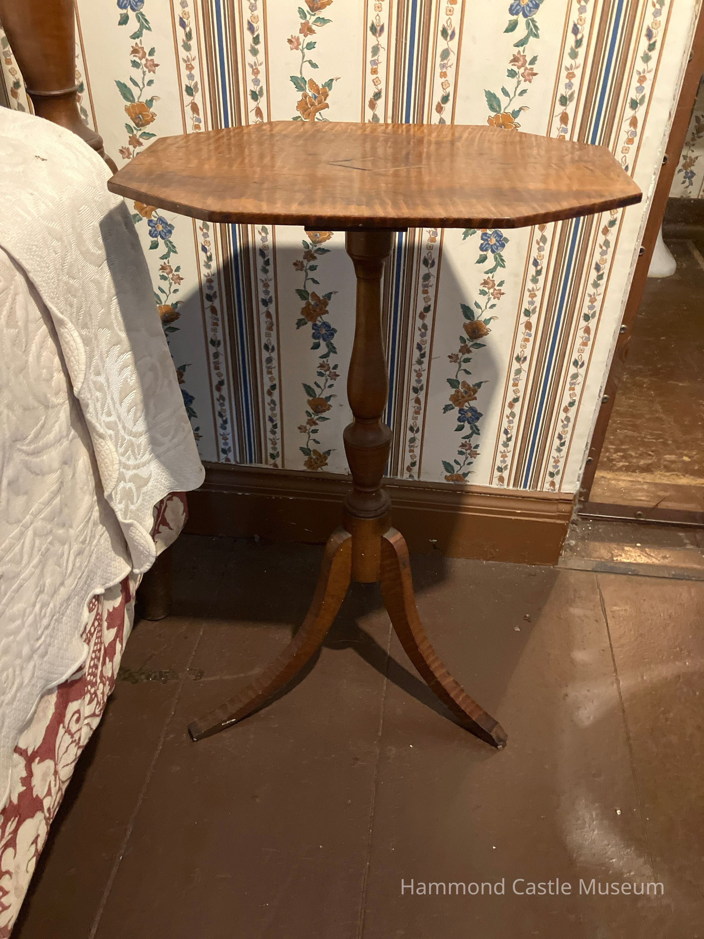 Candlestand, three feet with octagonal top, chipped foot. 1965 Probate Inventory - Lower Guestroom