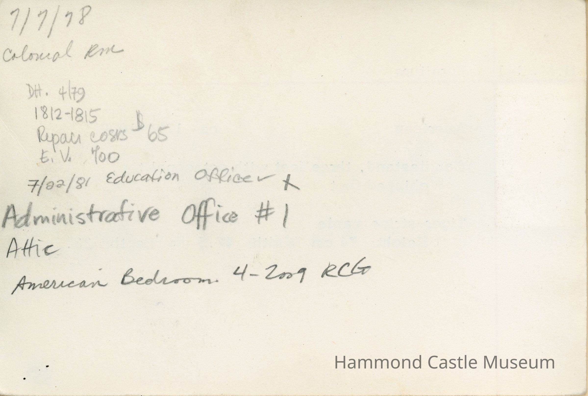 1970ca Handwritten Inventory p(5) - Entrance to lower guest room & lower guest room