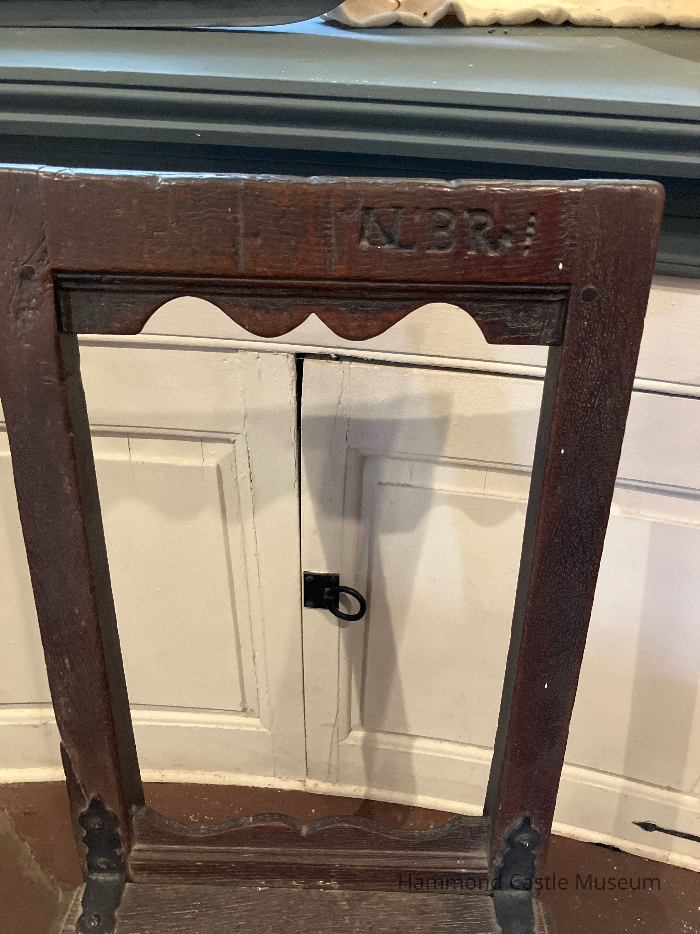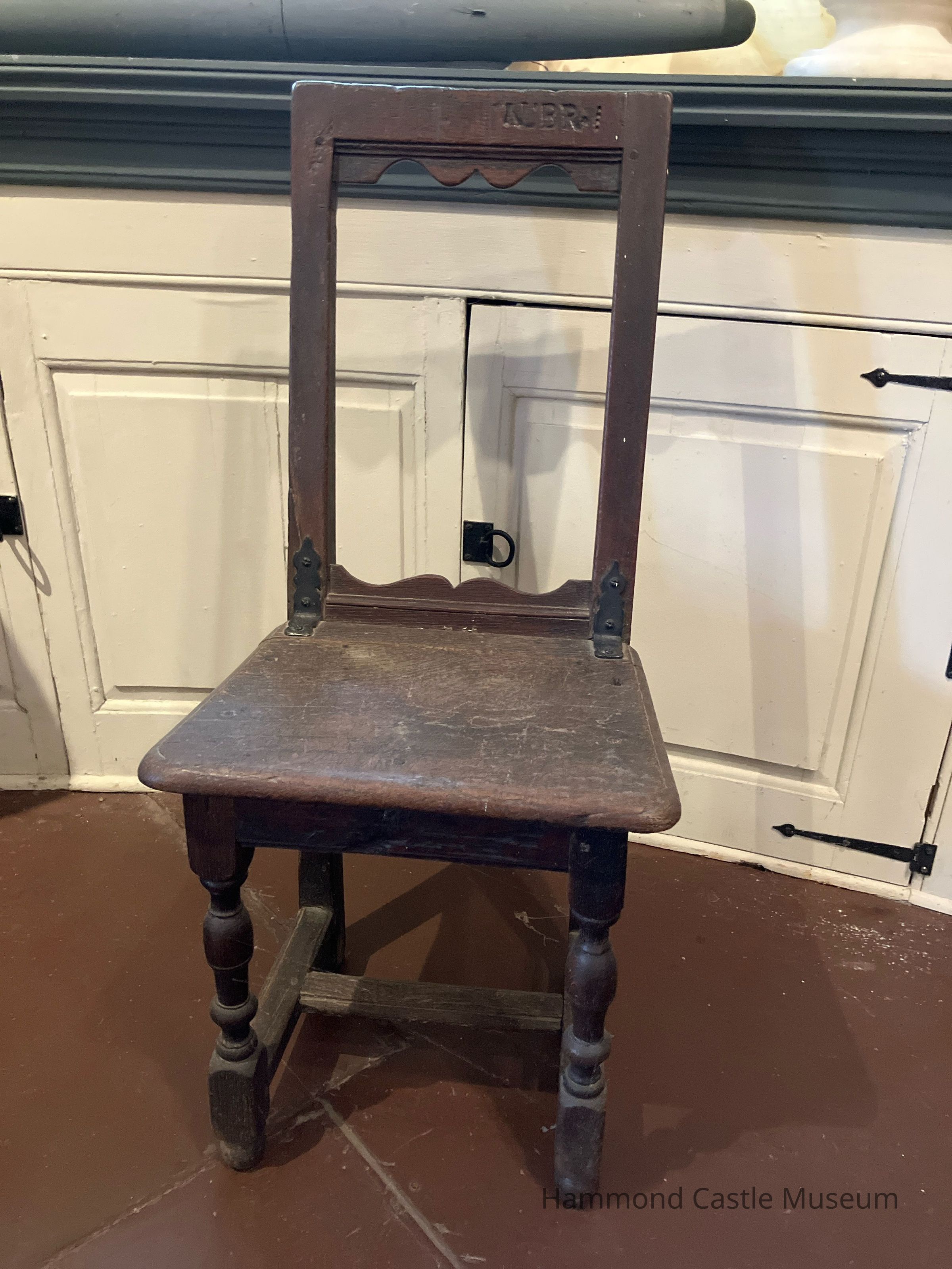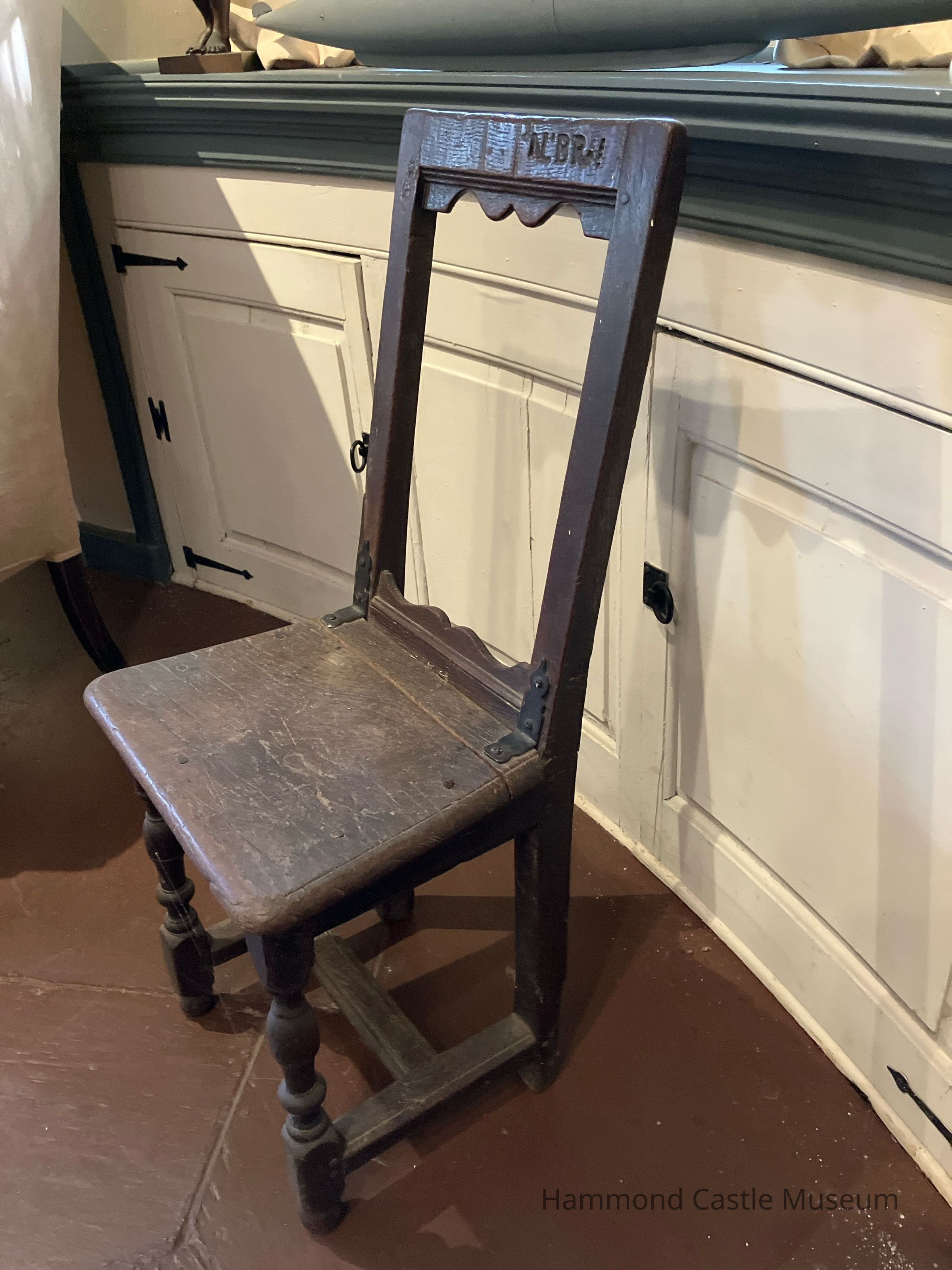 Pair of side chairs with open back, Jacobean, trumpet style leg, ball feet.