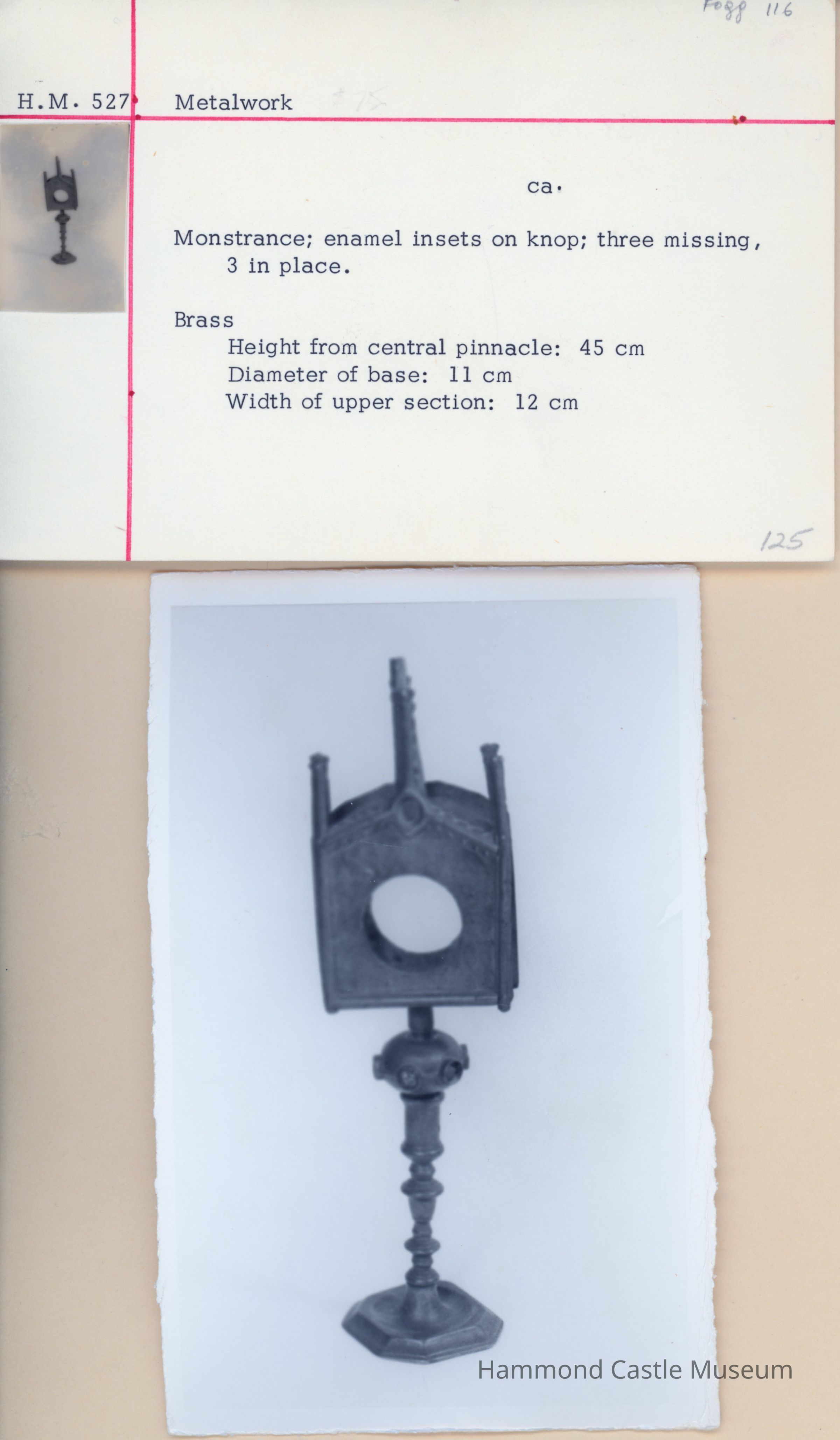 17thc Brass Monstrance with Enamel Insets