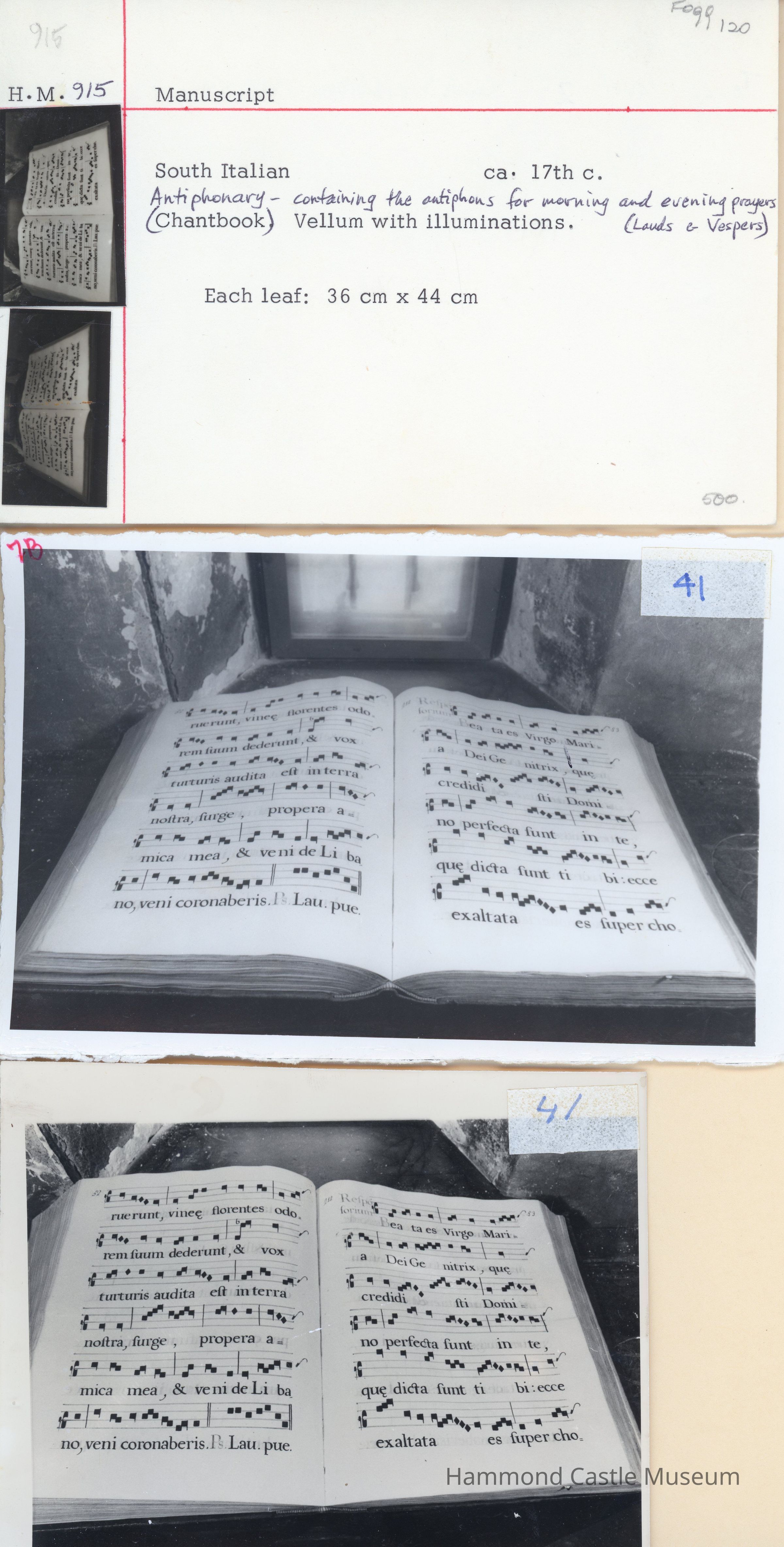 Latin Psalter - Chant Book Contains the antiphons for morning and evening prayers (Lauds & Vespers) Vellum with illuminations Reportedly from the Florence Duomo
