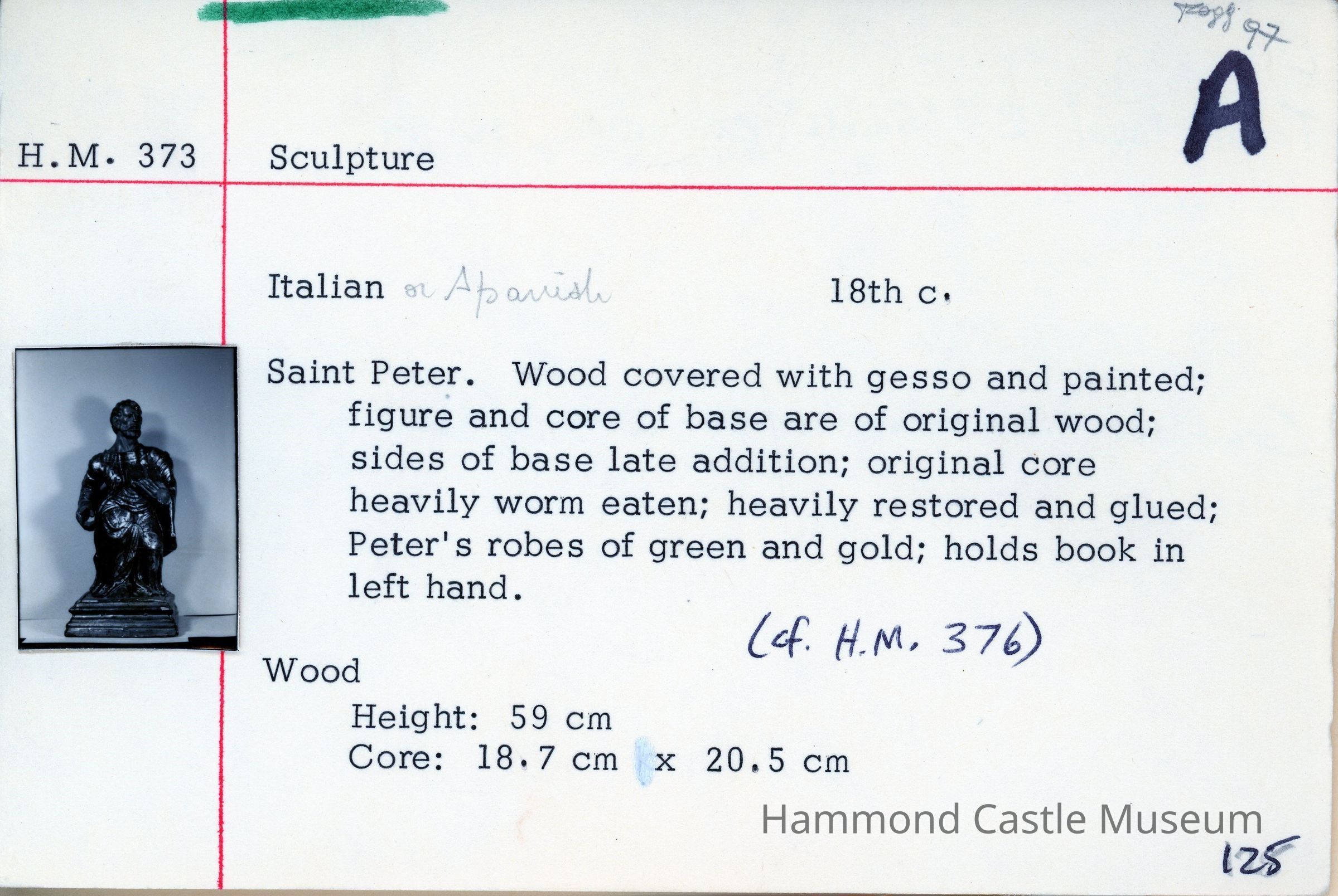 HM373 wooden St Peter carving, 18thc (1983 condition report)Note Type