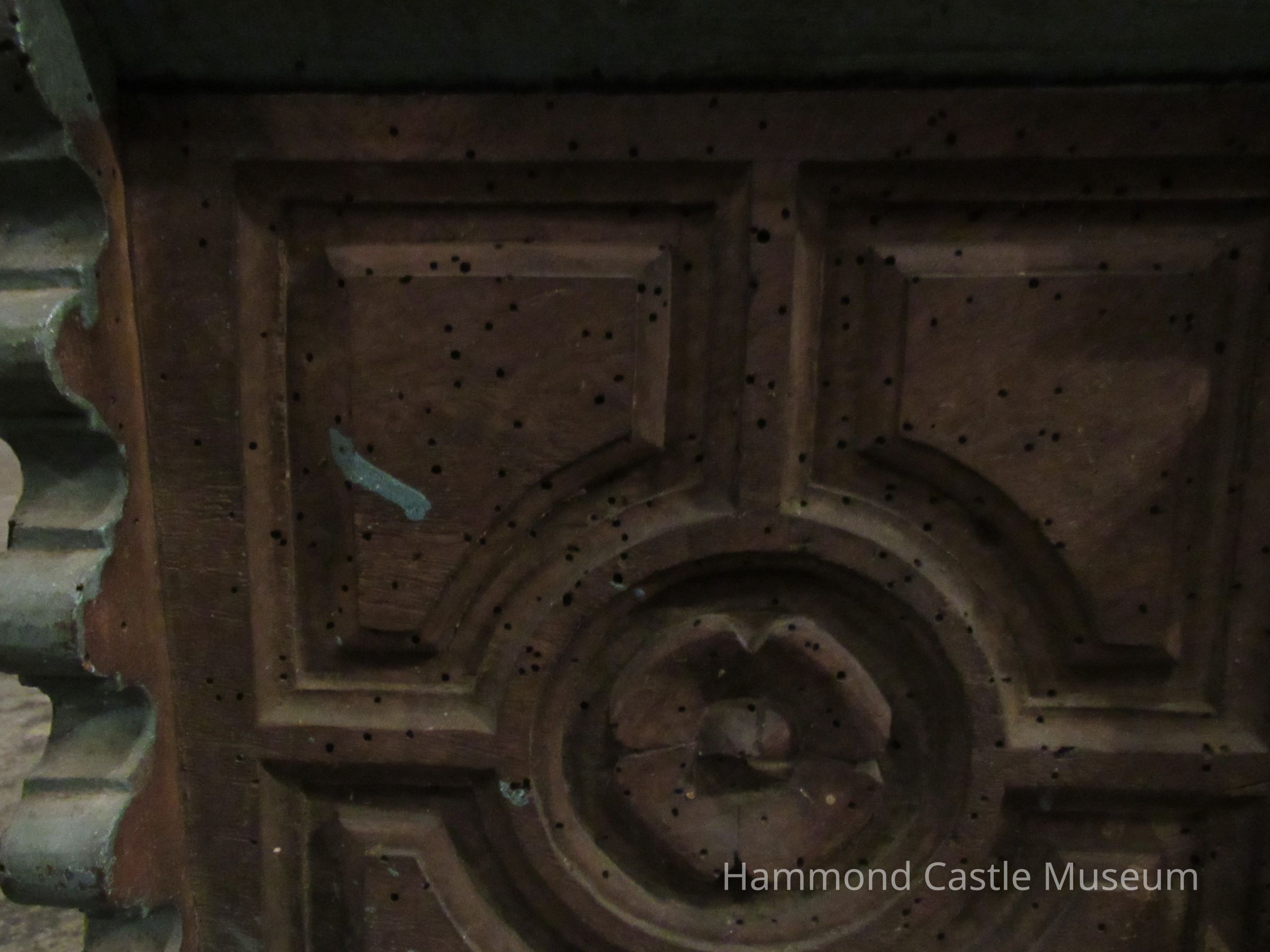 Polychromed carved wood with roses and other flowers in Moorish style.