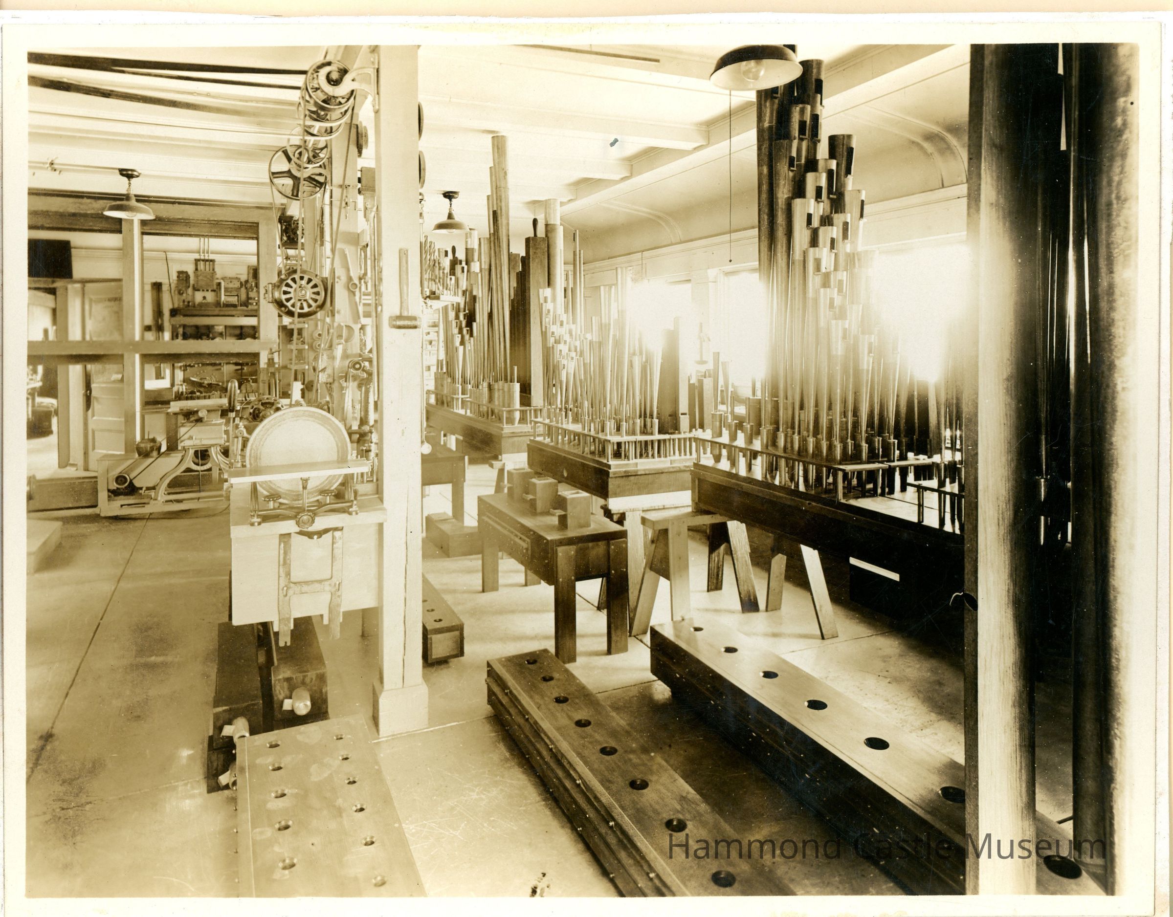 Photo of 1911 ca Pt Radio Laboratory Workshop w organ pipes, copy(2)