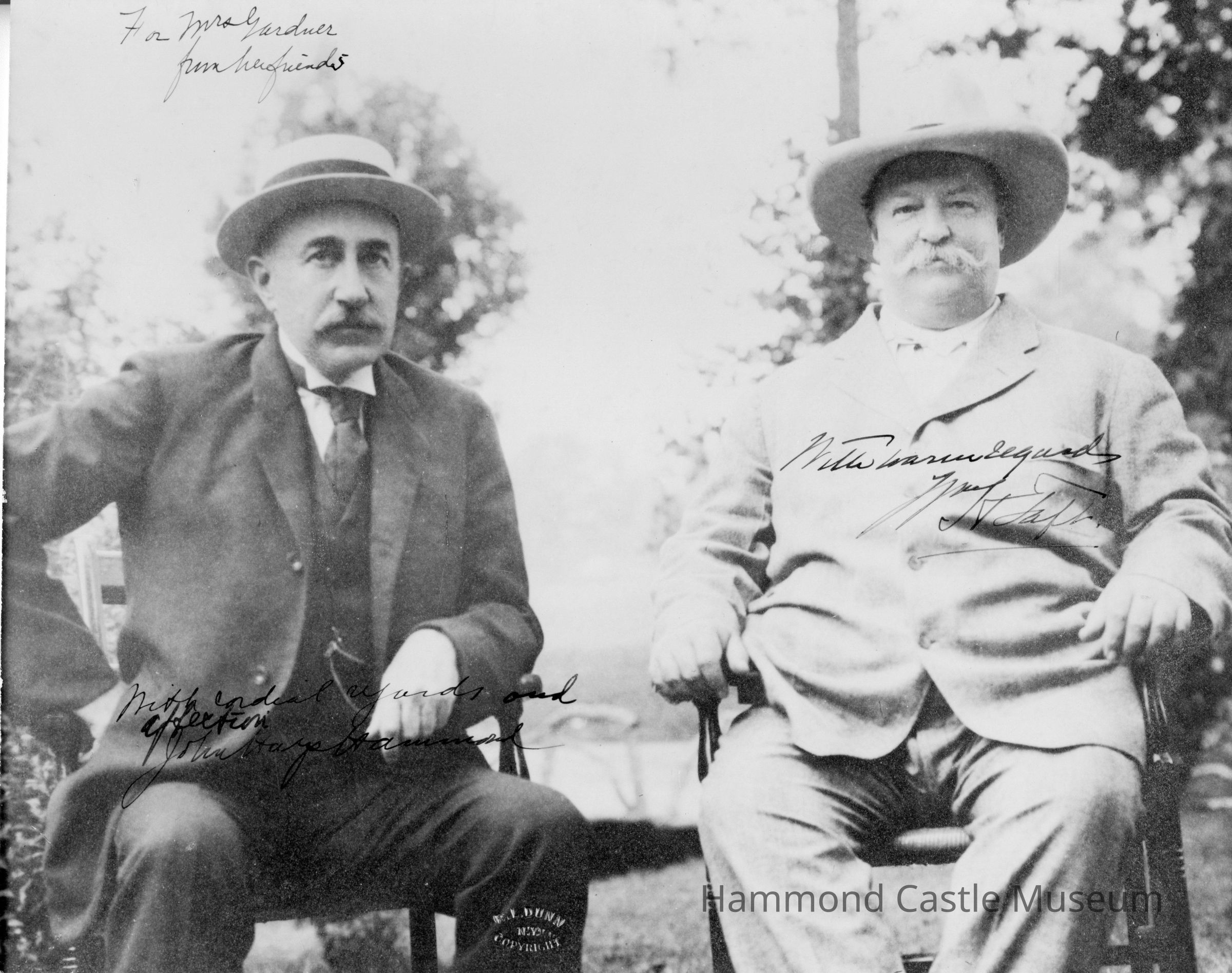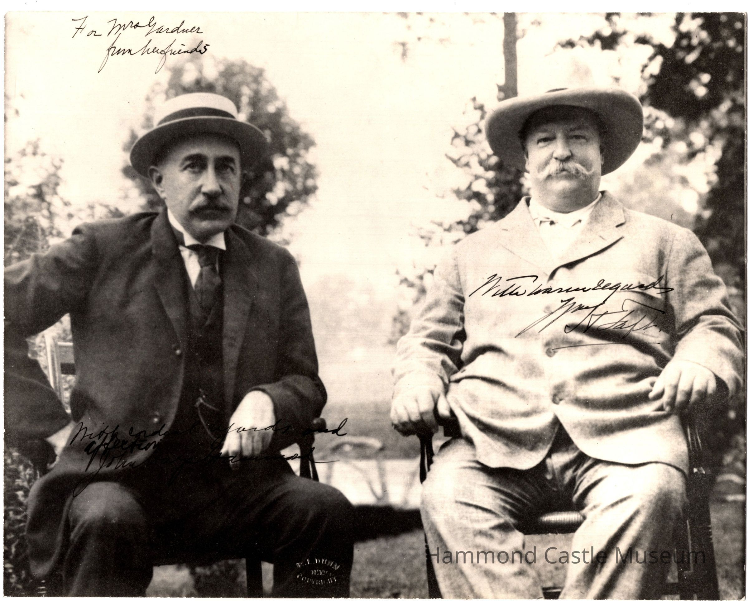 2 copies of photo of Hammond Sr with President Taft sign by both to Isabella Stewart Gardner