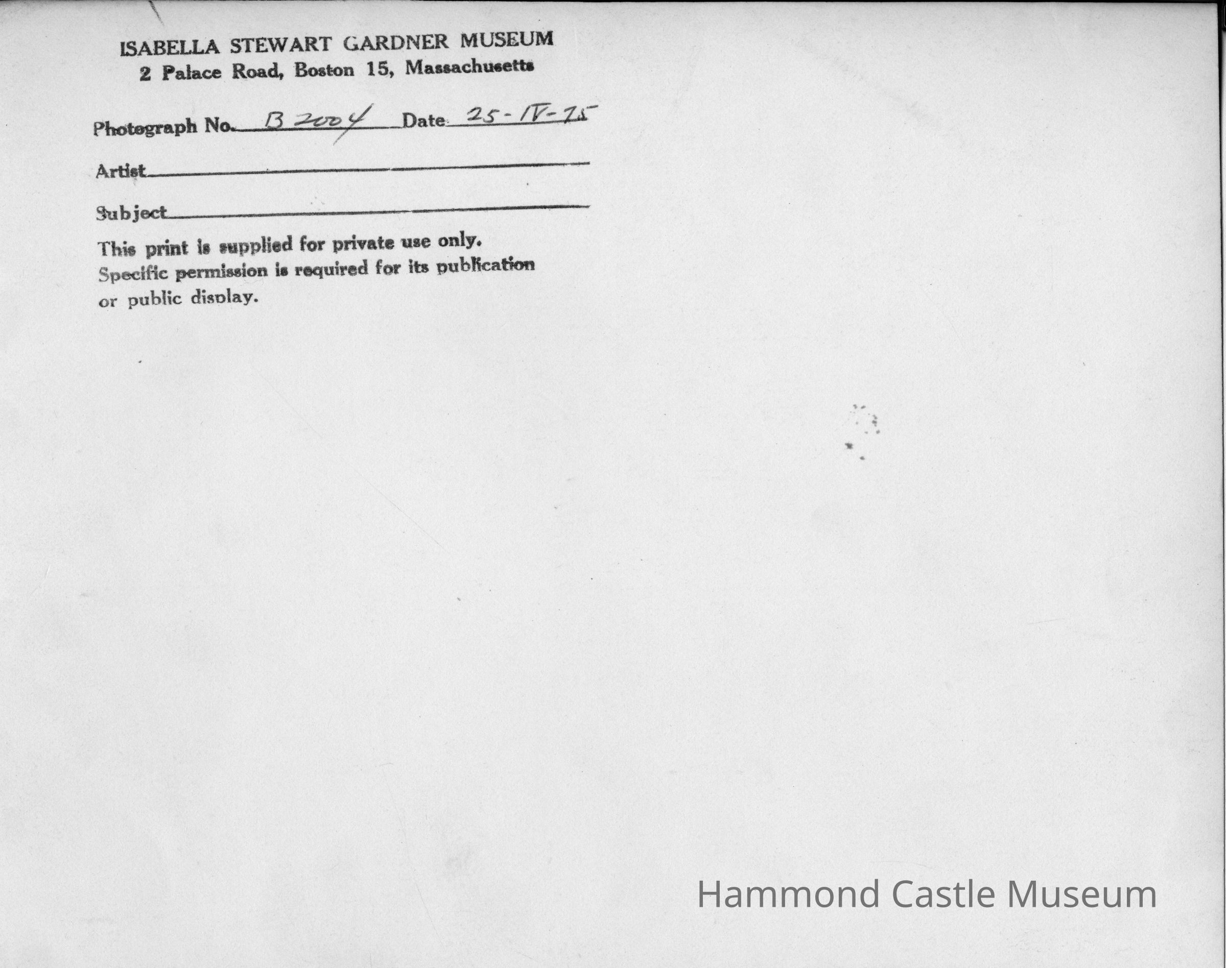 1925-04-15 JHH Sr & Pres Taft (Isabella Stewart Gardner Museum signed image)Entry/Object ID