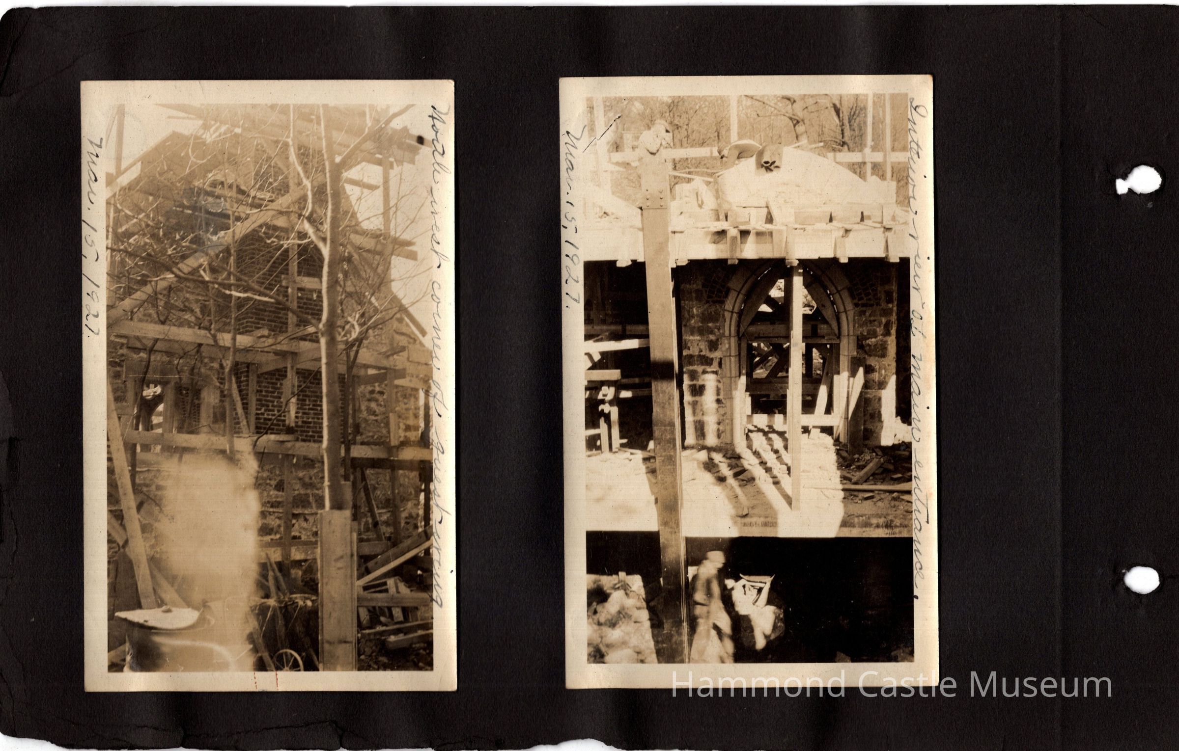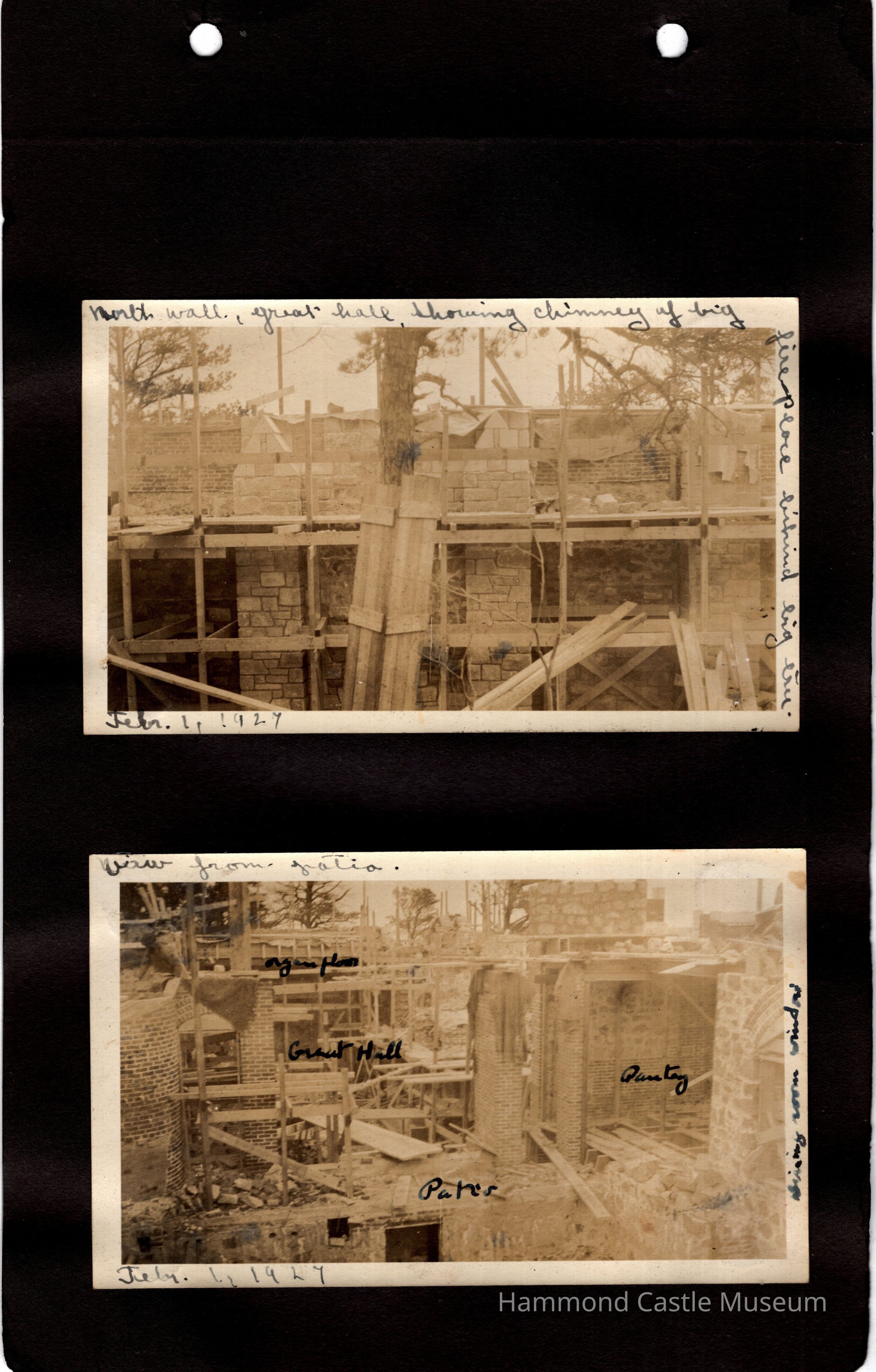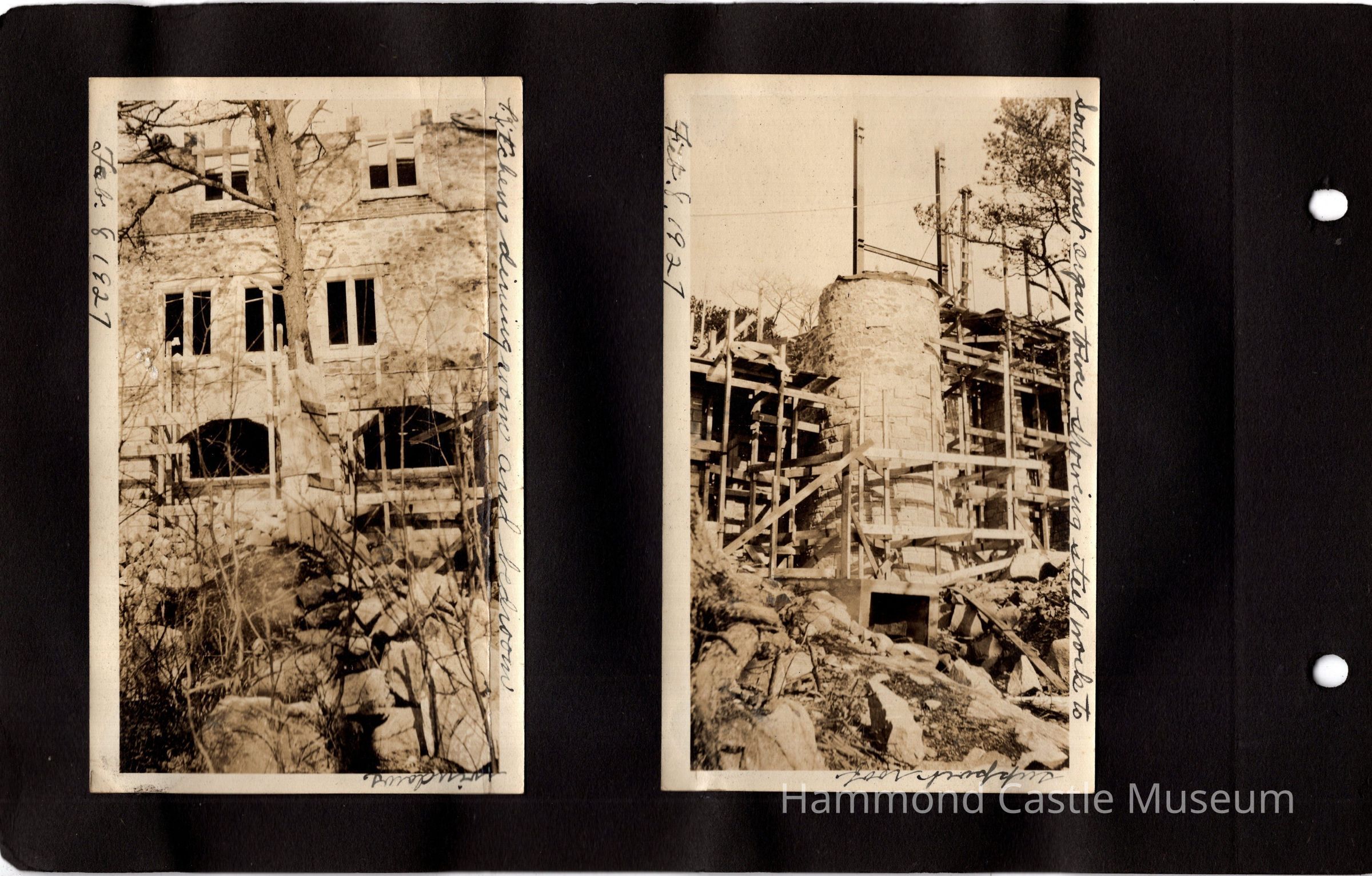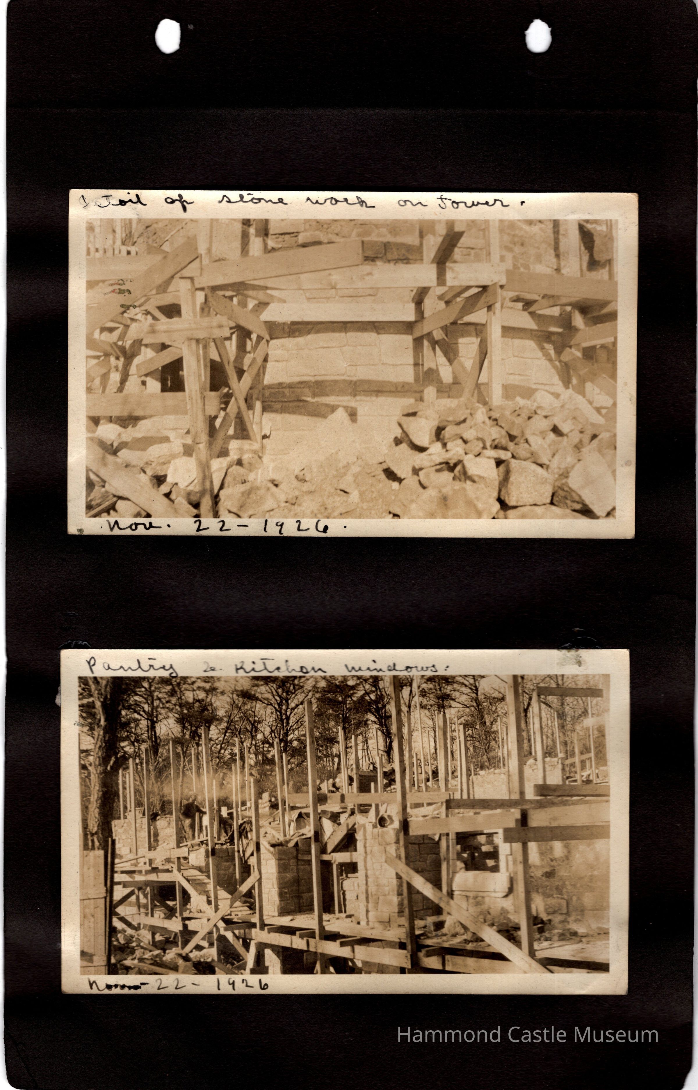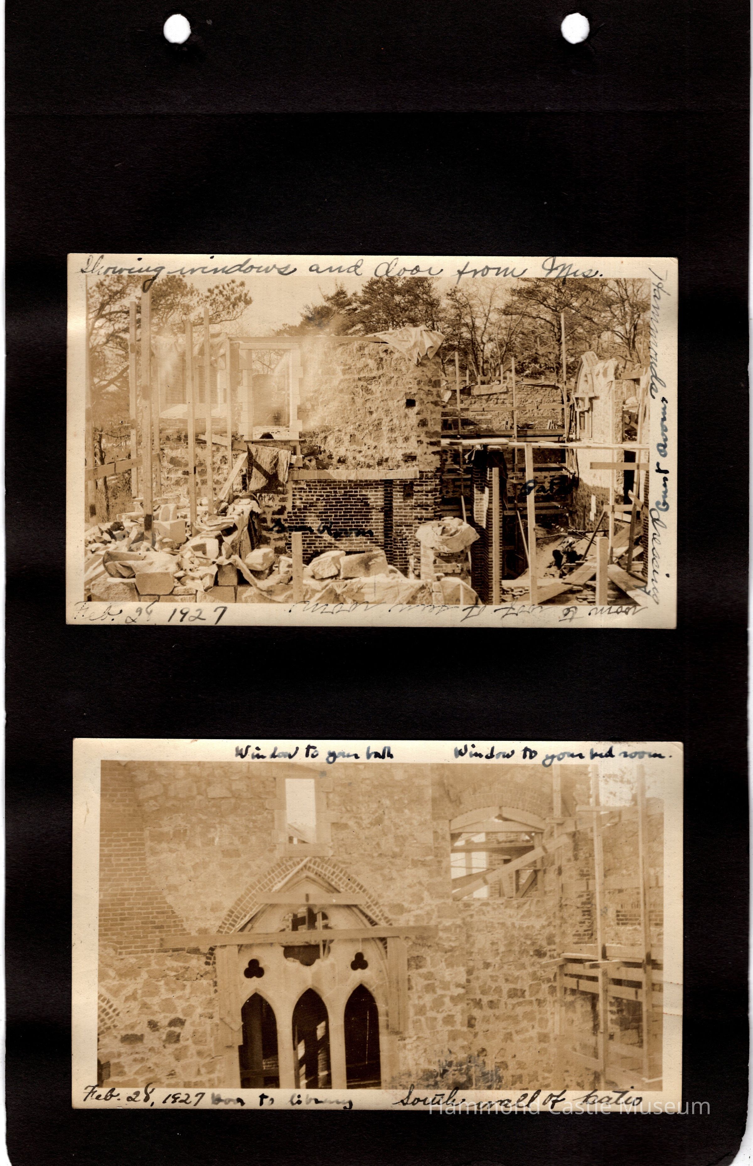 1926-1927 album of photos with annotations from the construction of the castle. (Book dismantled and stored in binder)