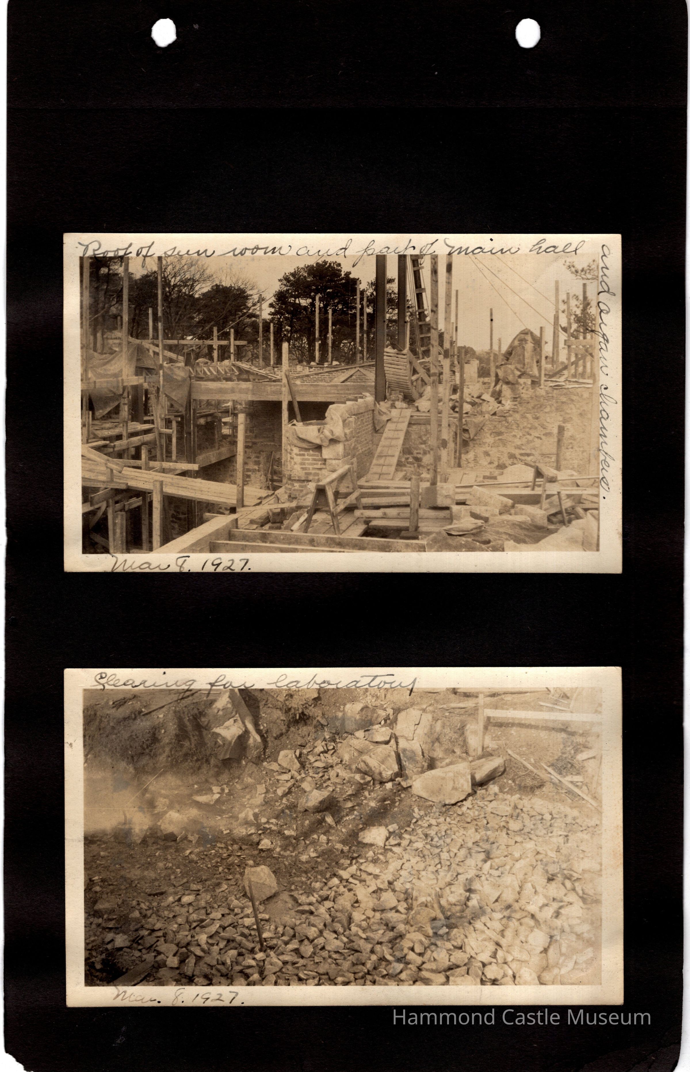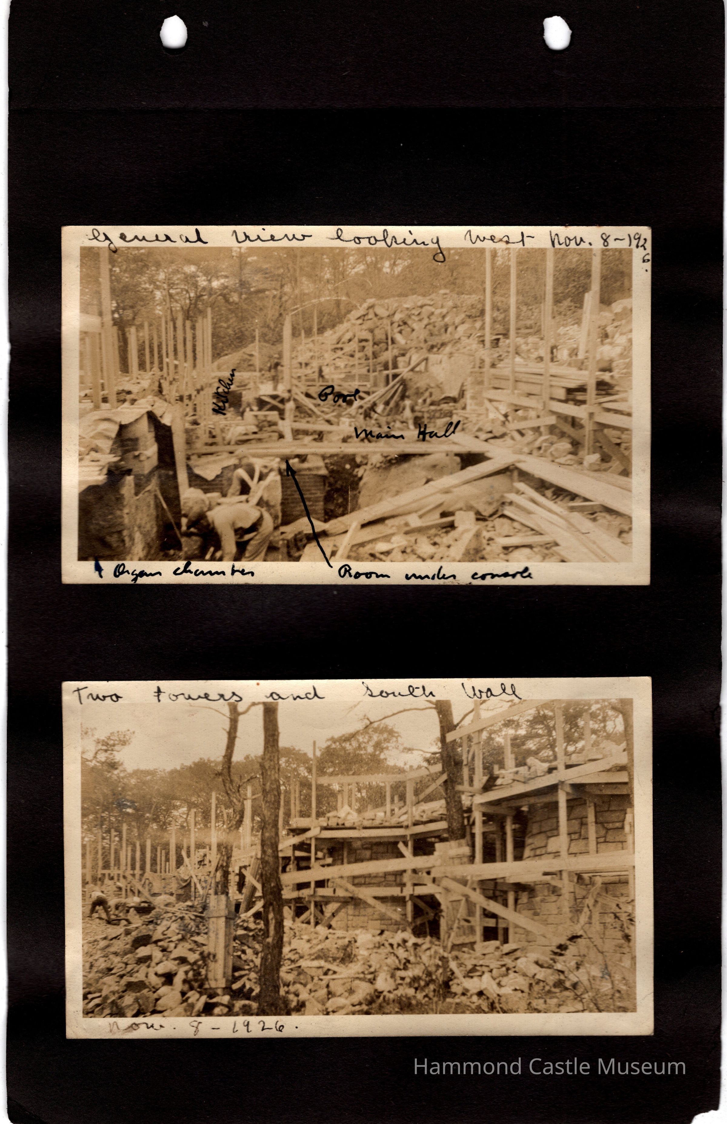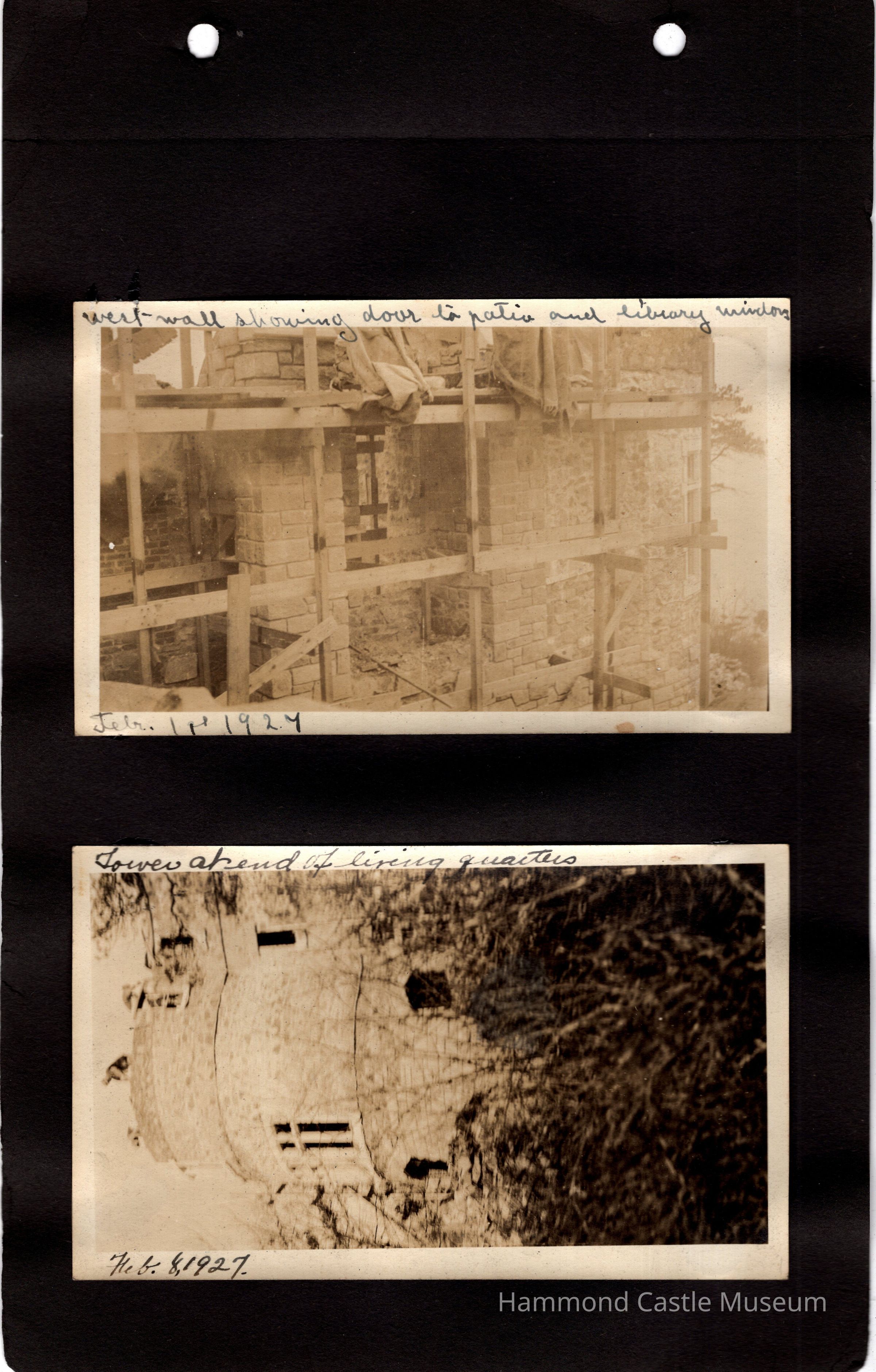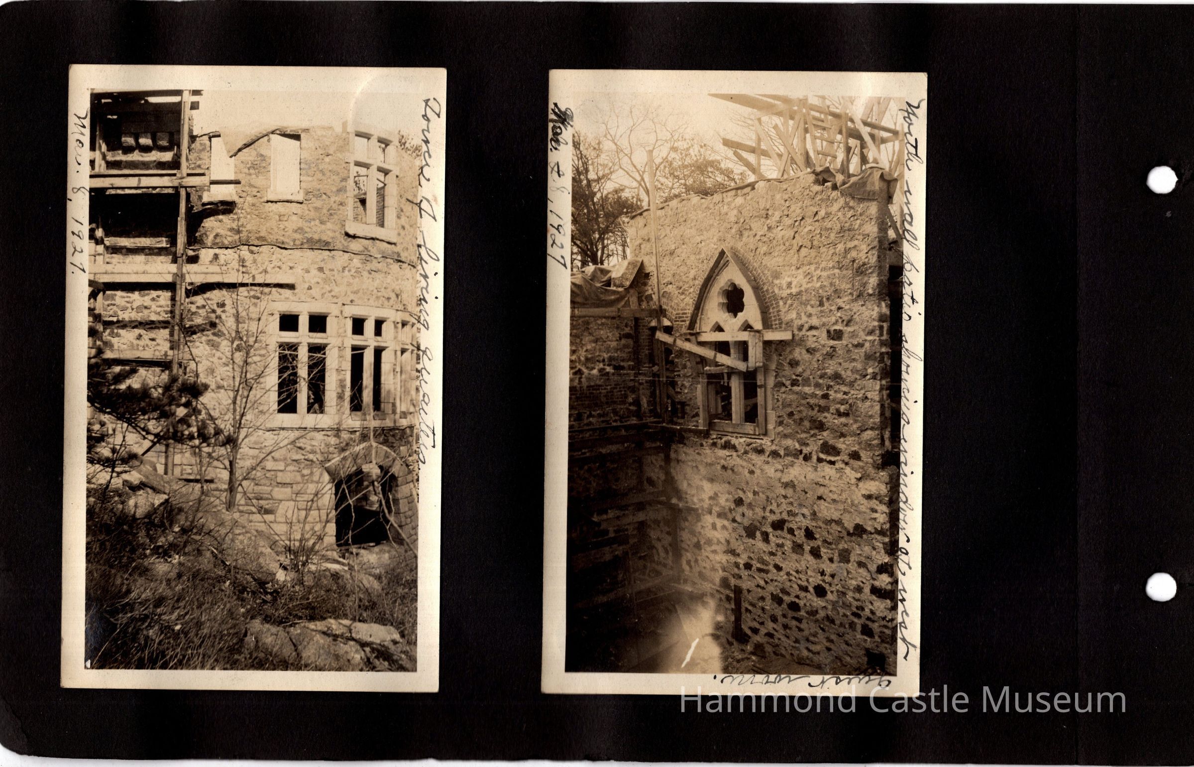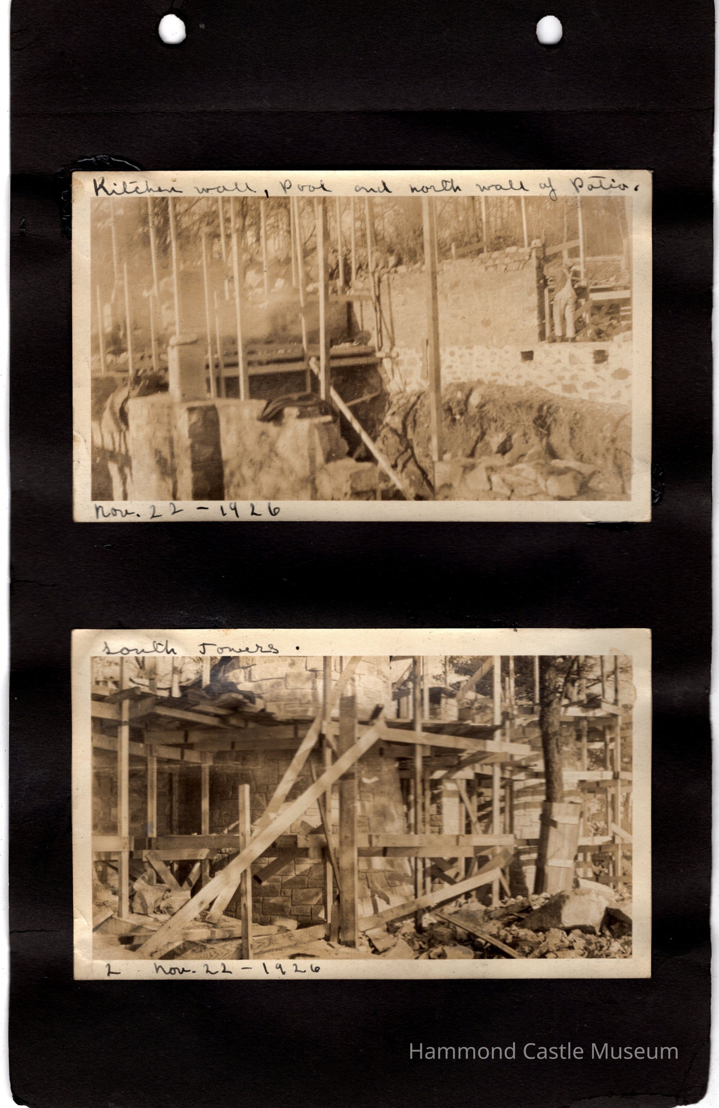 1926-1927 album of photos with annotations from the construction of the castle. (Book dismantled and stored in binder)