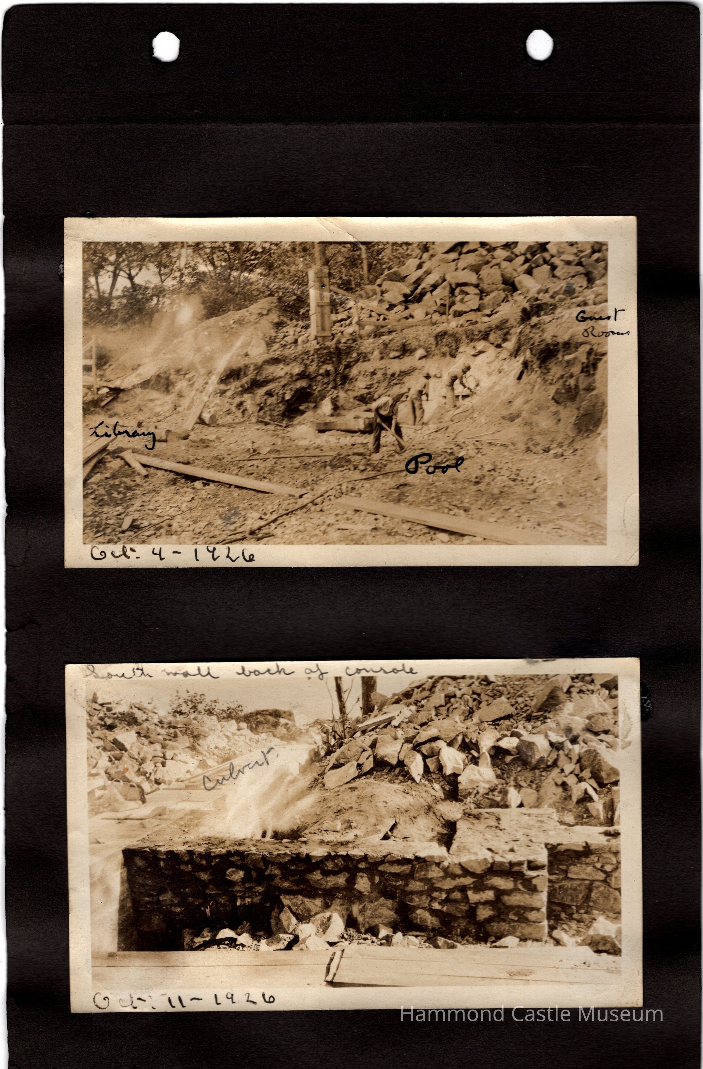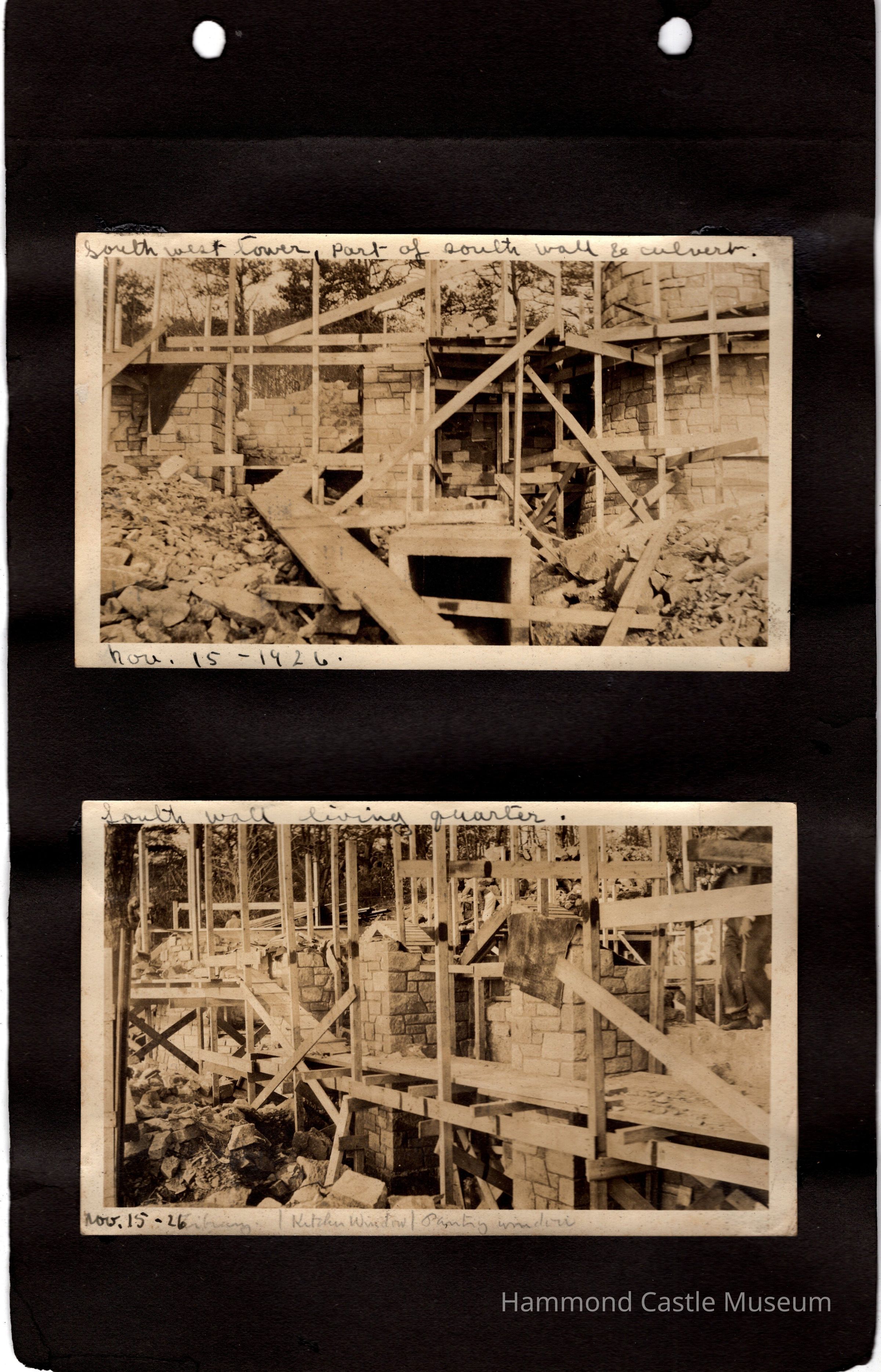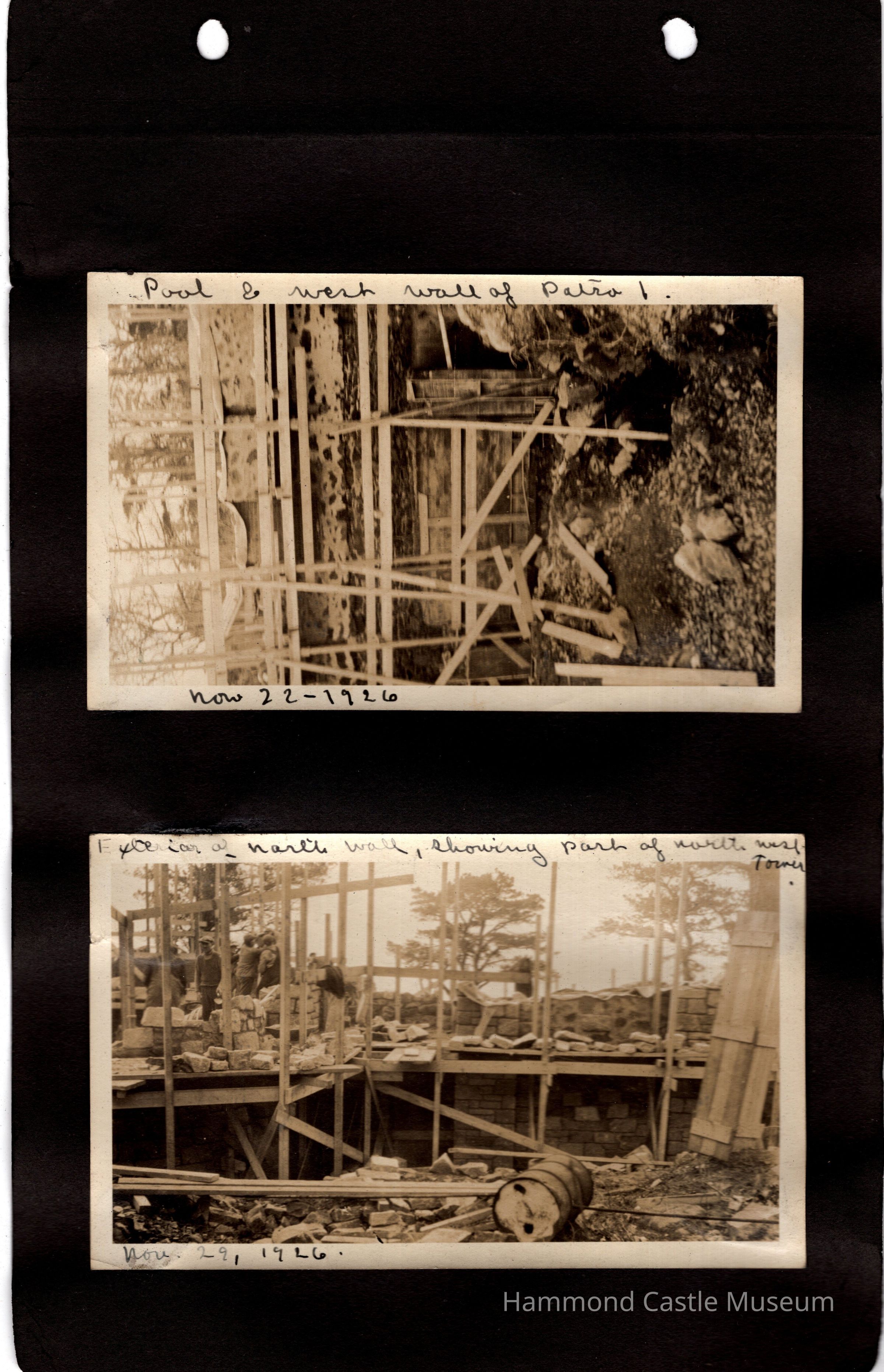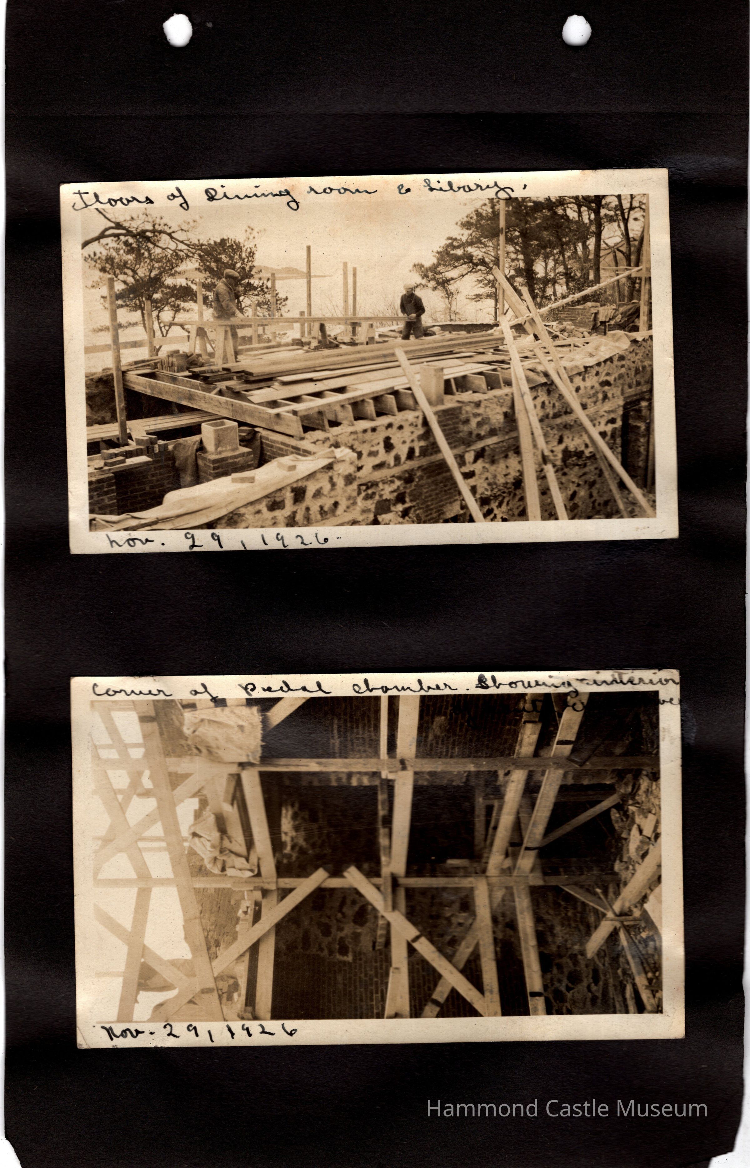 1926-1927 album of photos with annotations from the construction of the castle. (Book dismantled and stored in binder)
