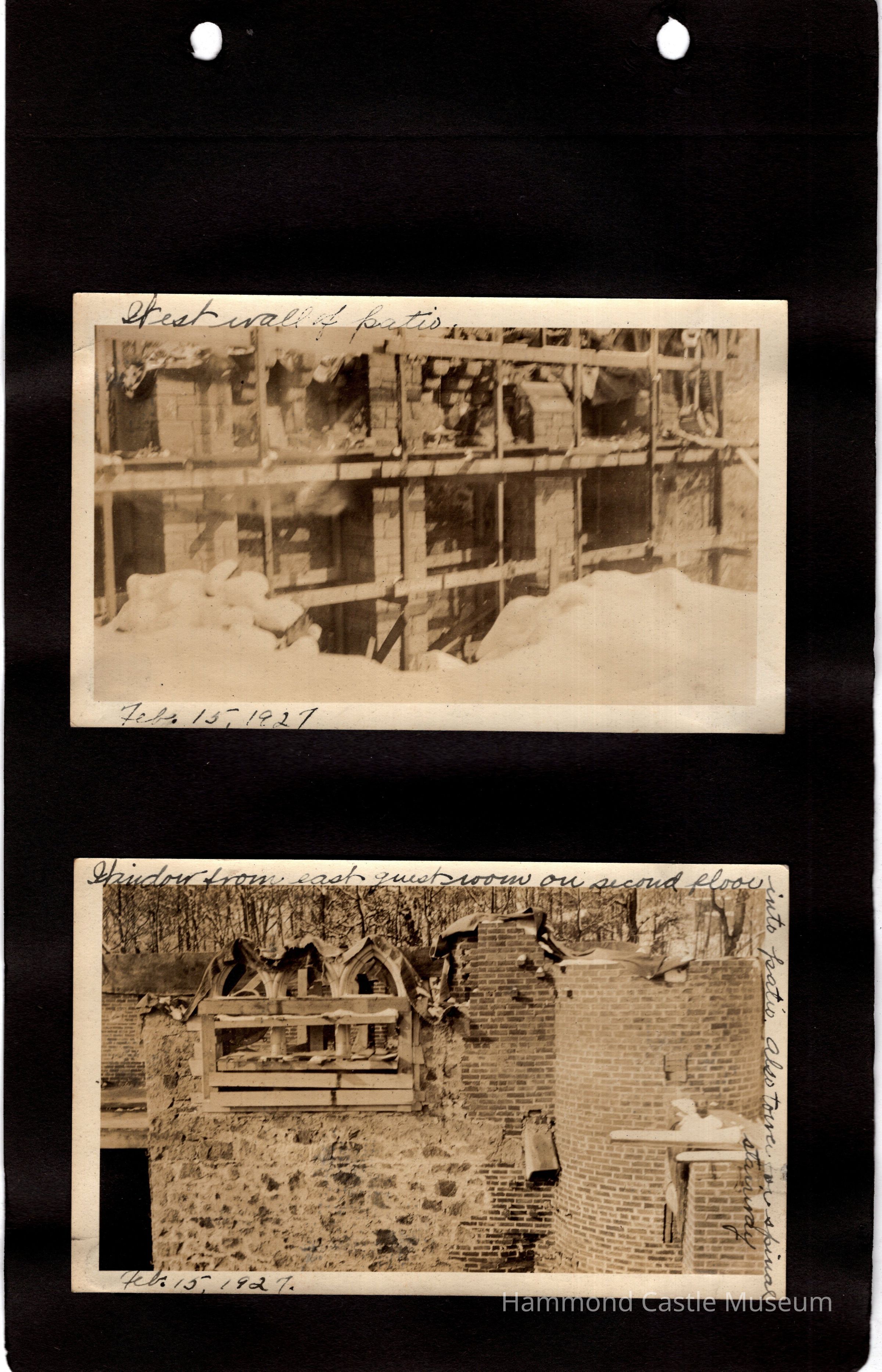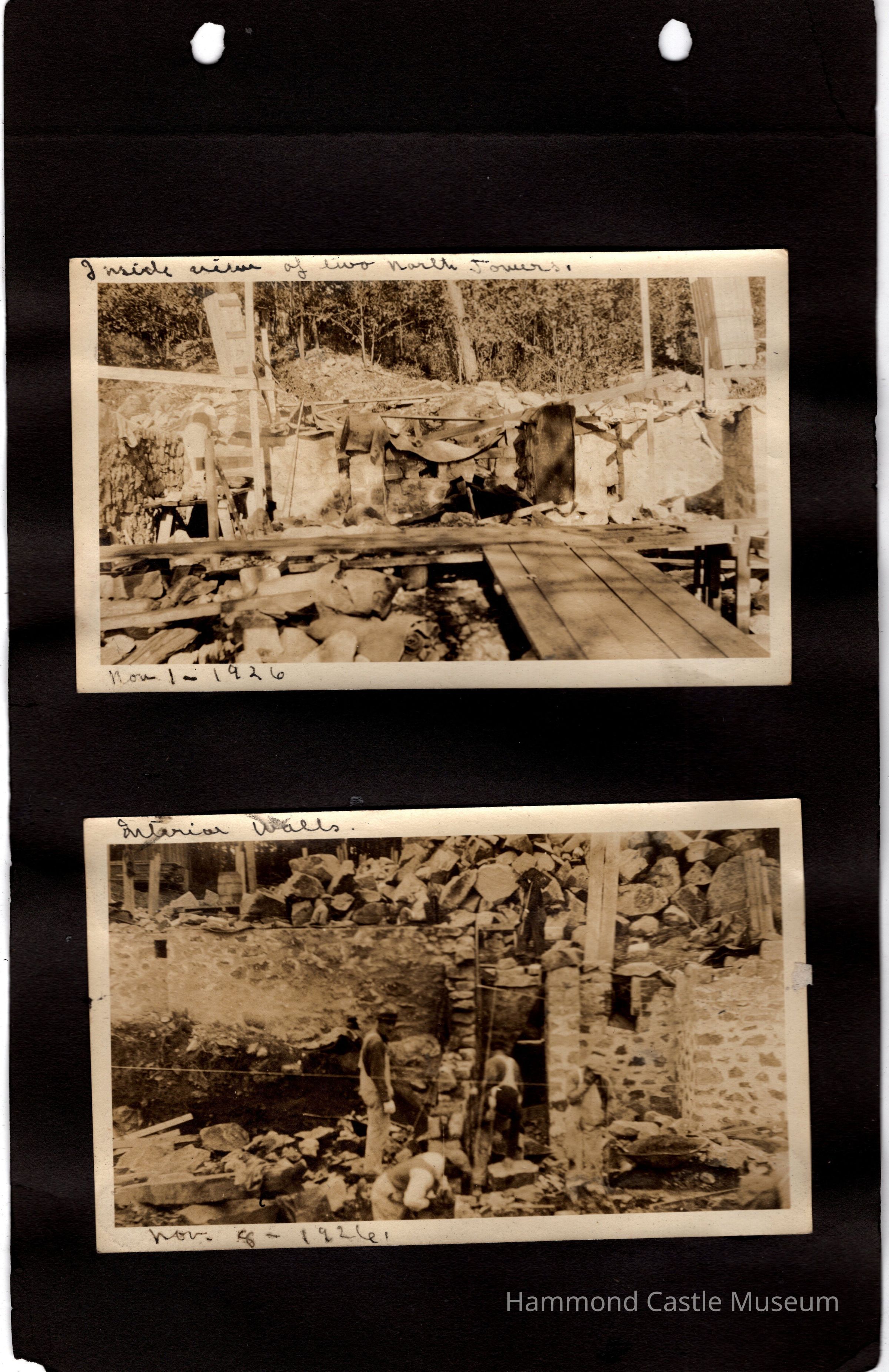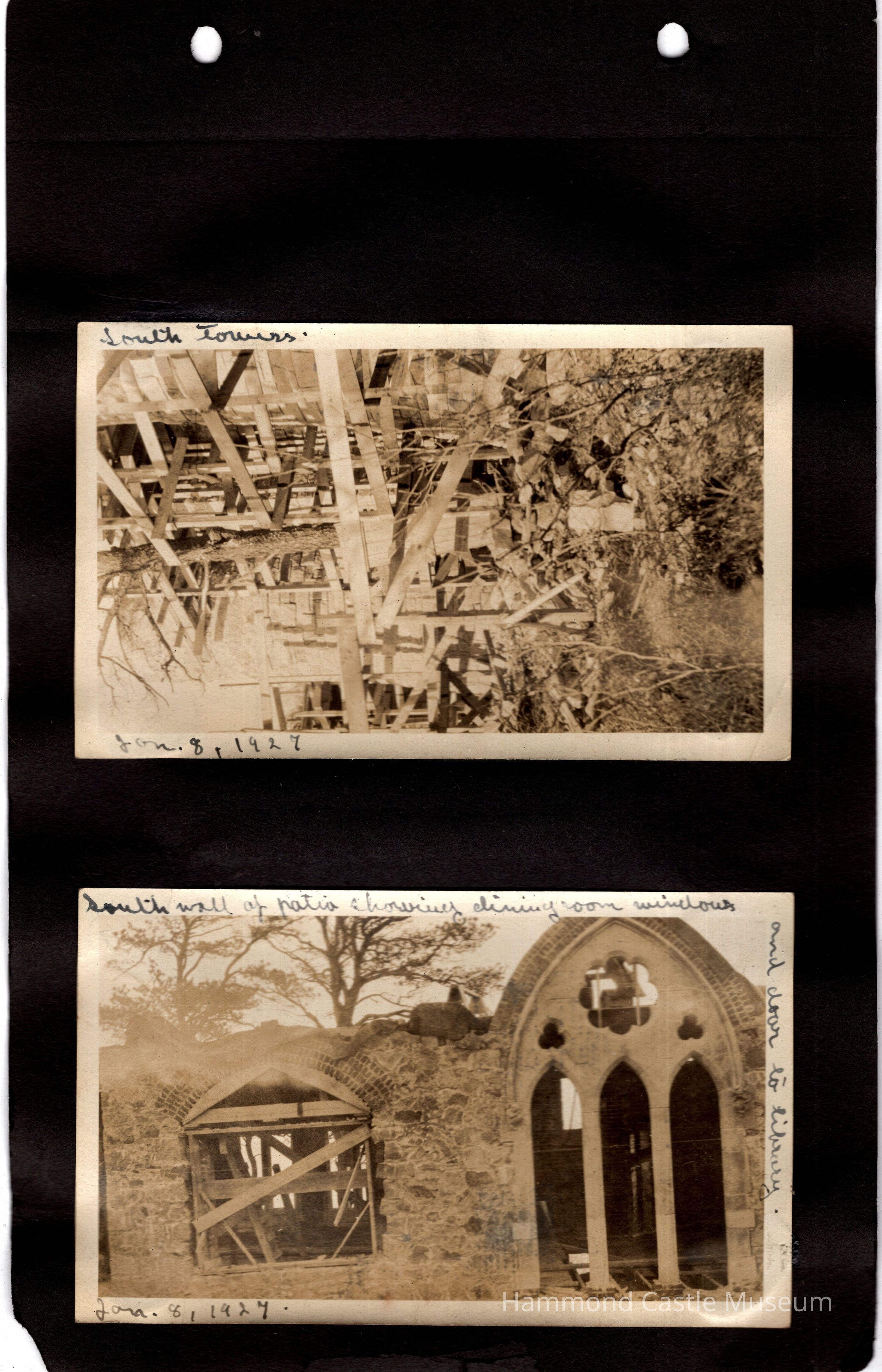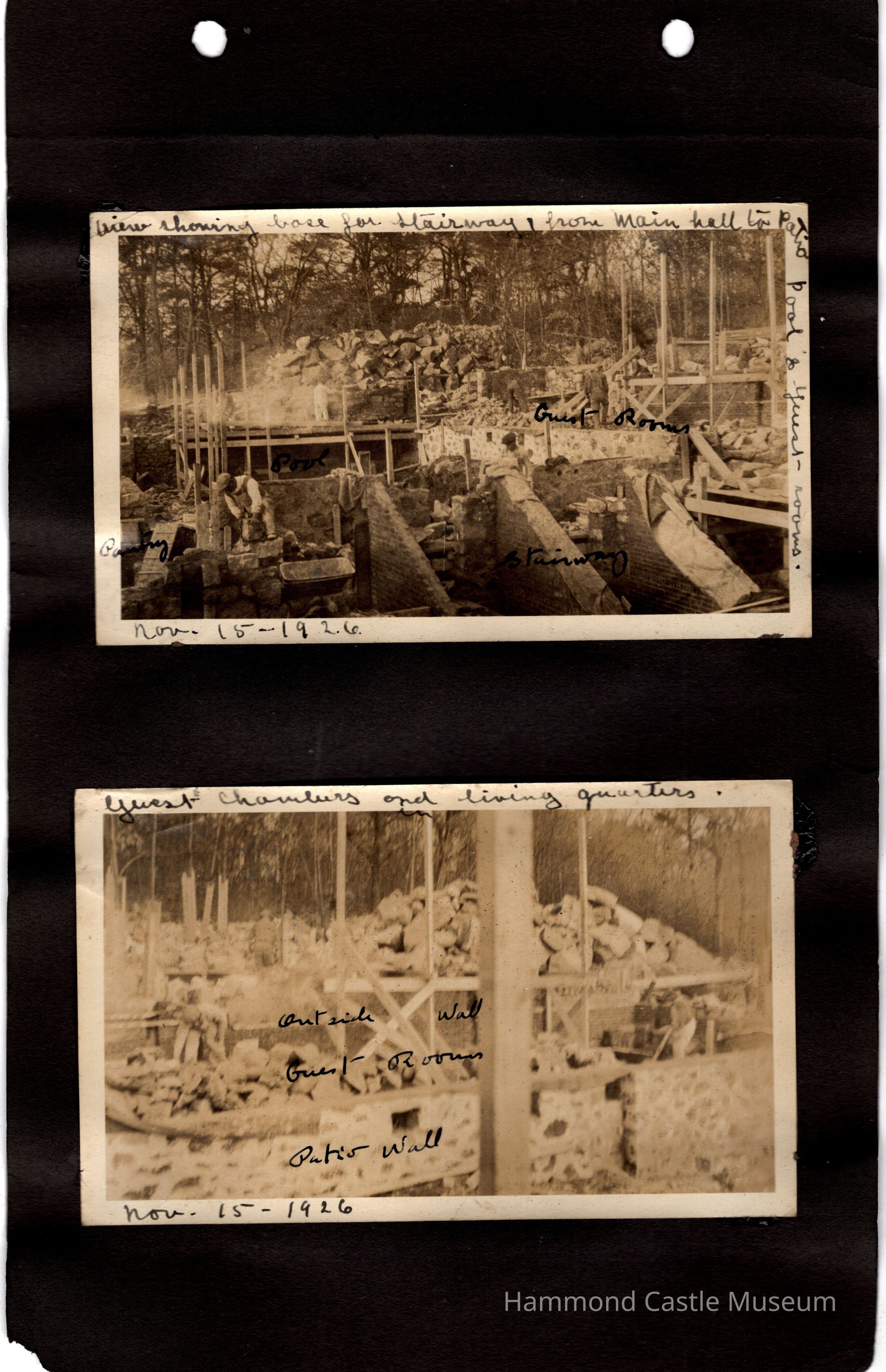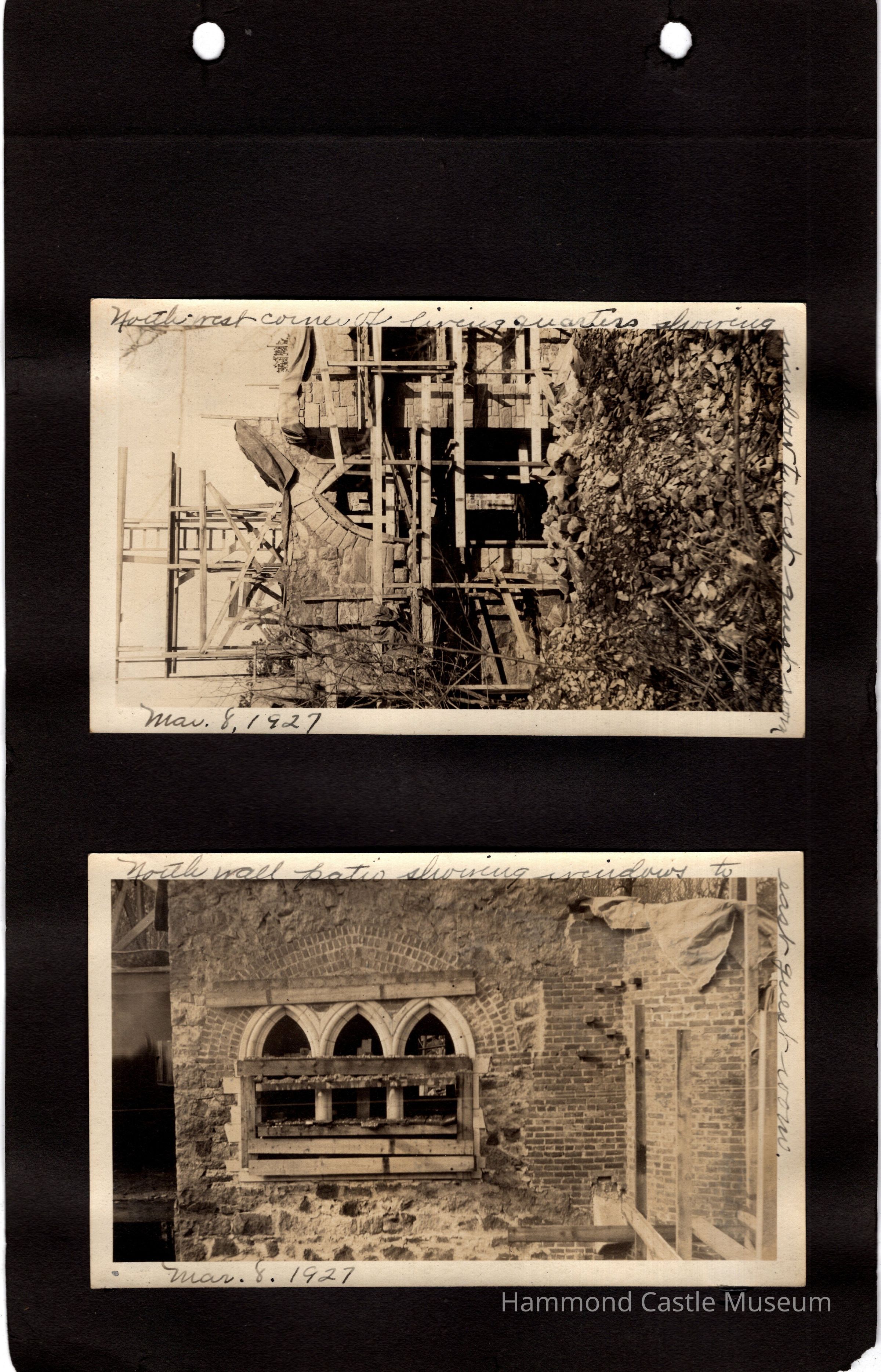1926-1927 album of photos with annotations from the construction of the castle. (Book dismantled and stored in binder)