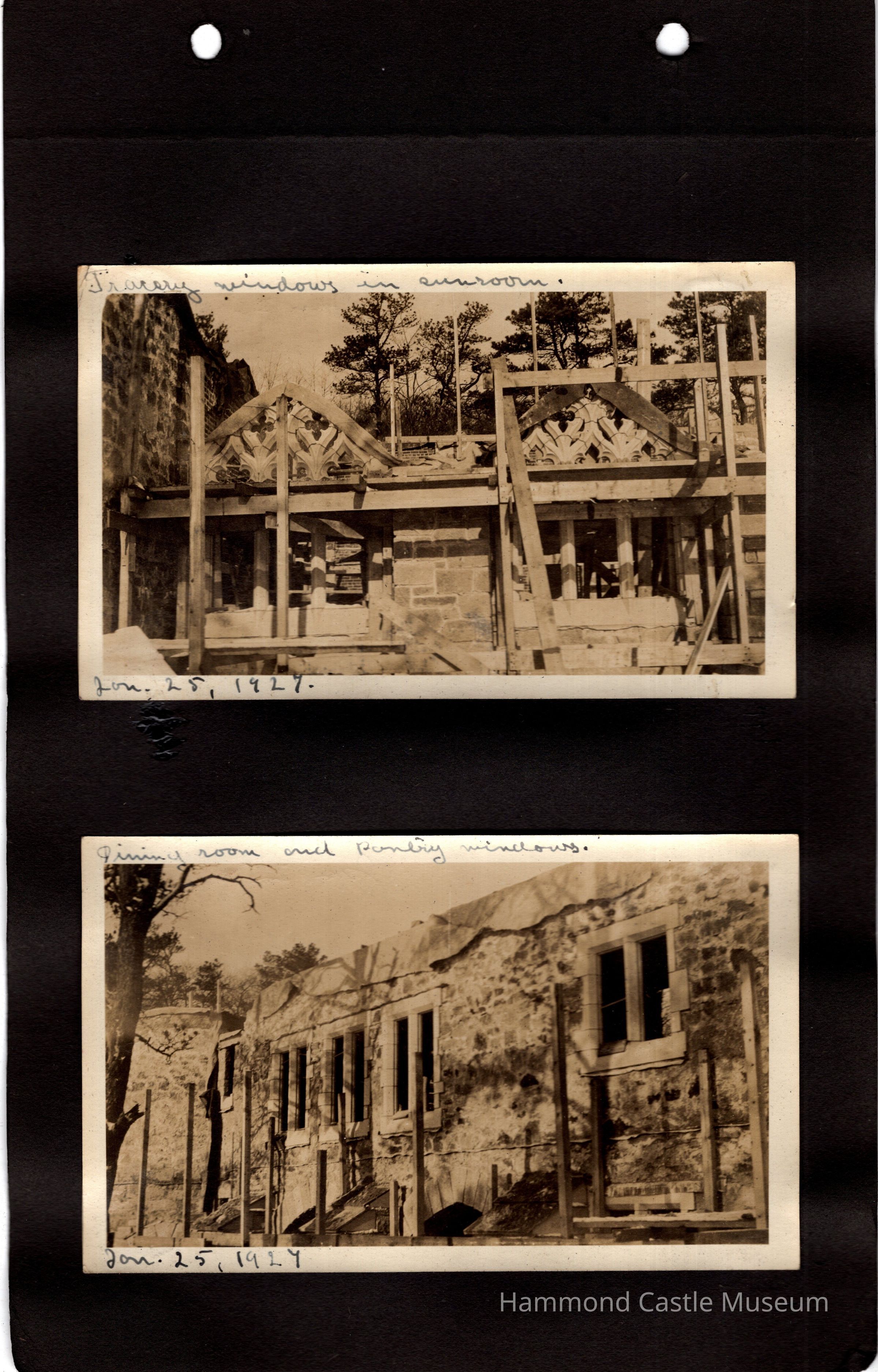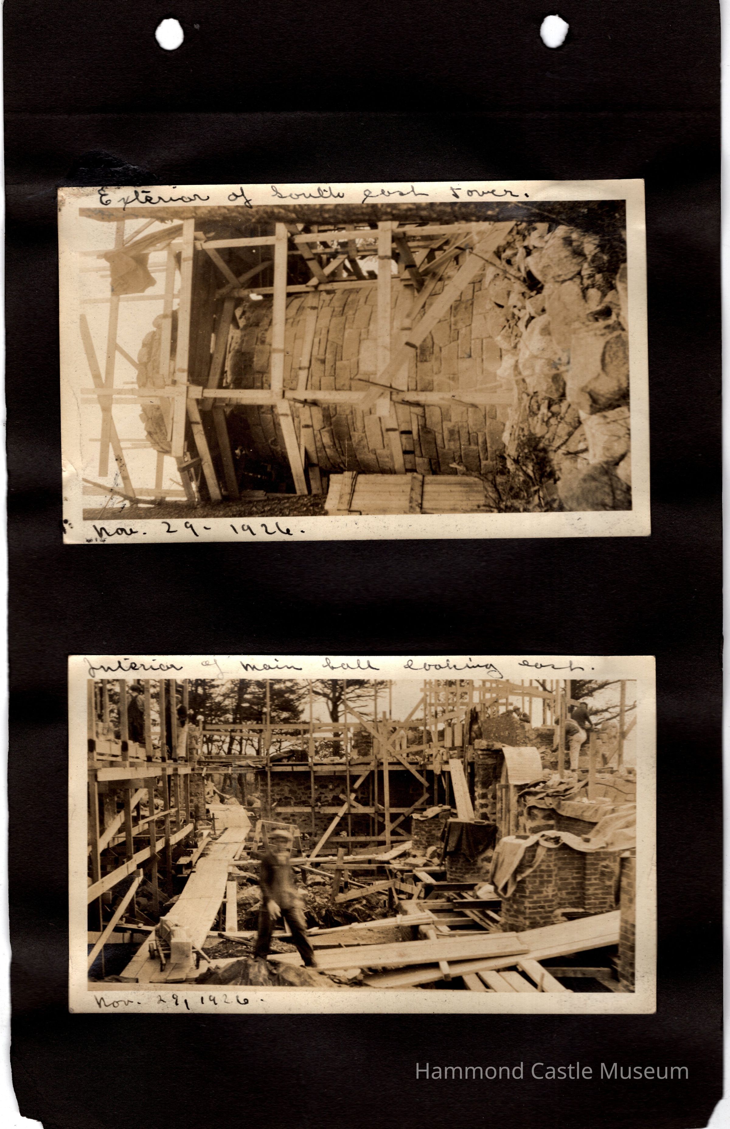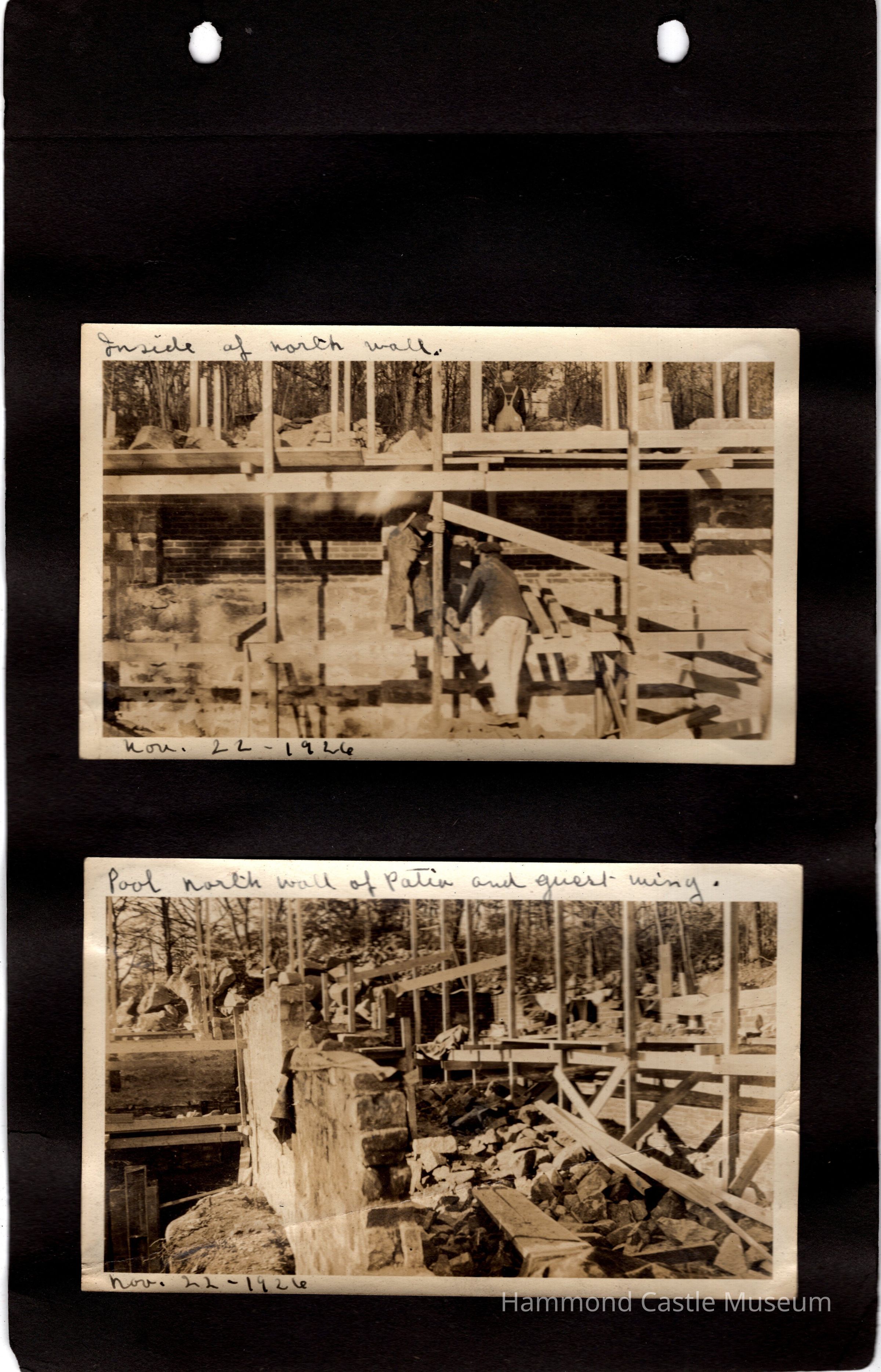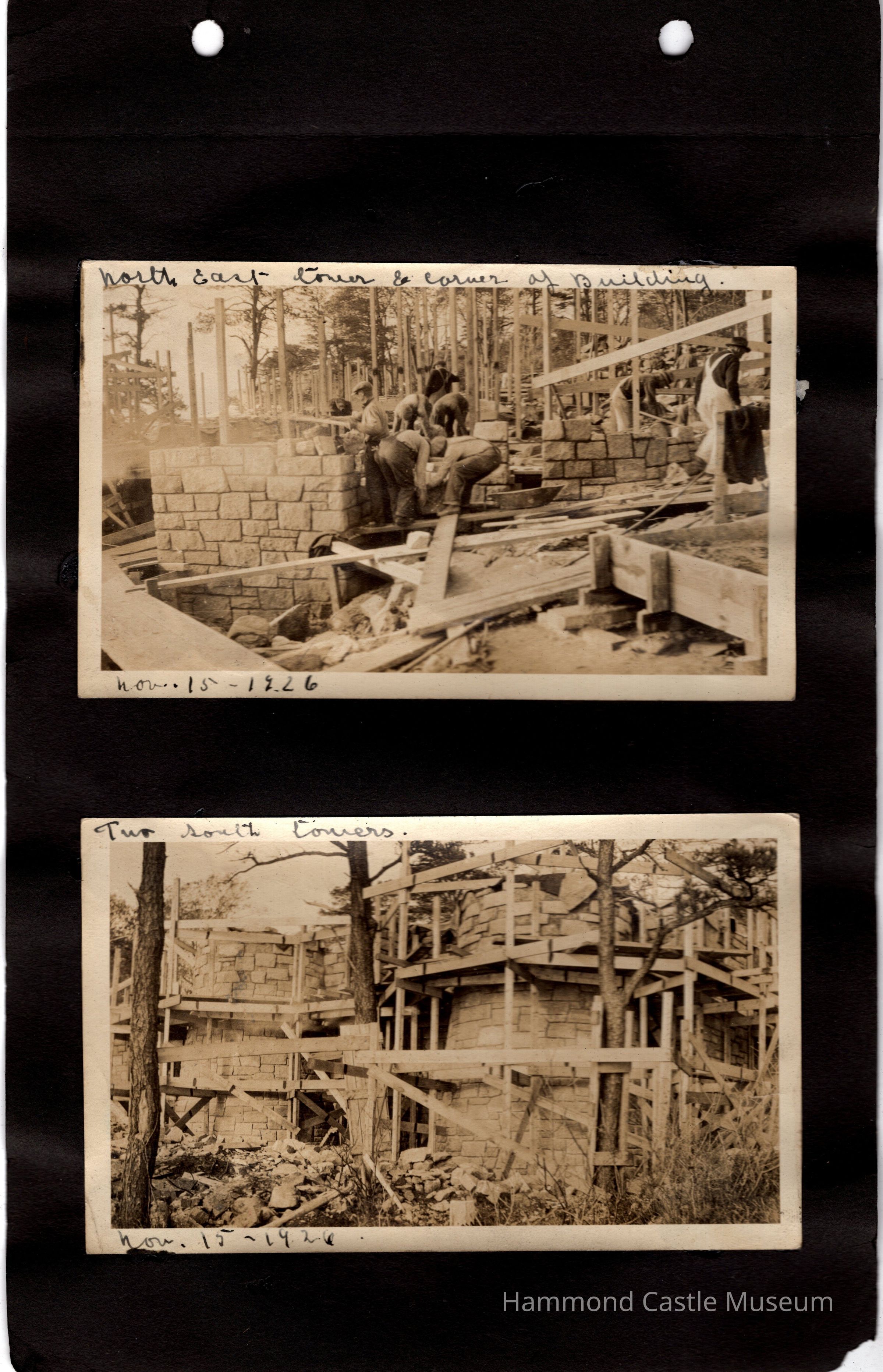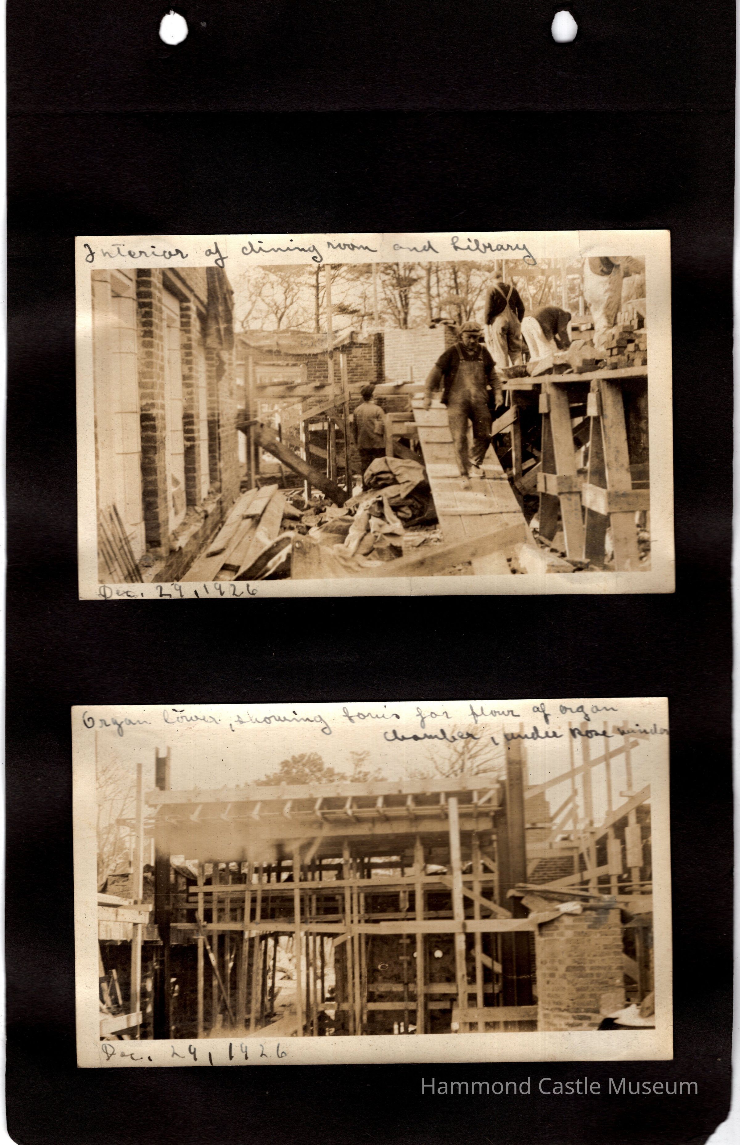 1926-1927 album of photos with annotations from the construction of the castle. (Book dismantled and stored in binder)
