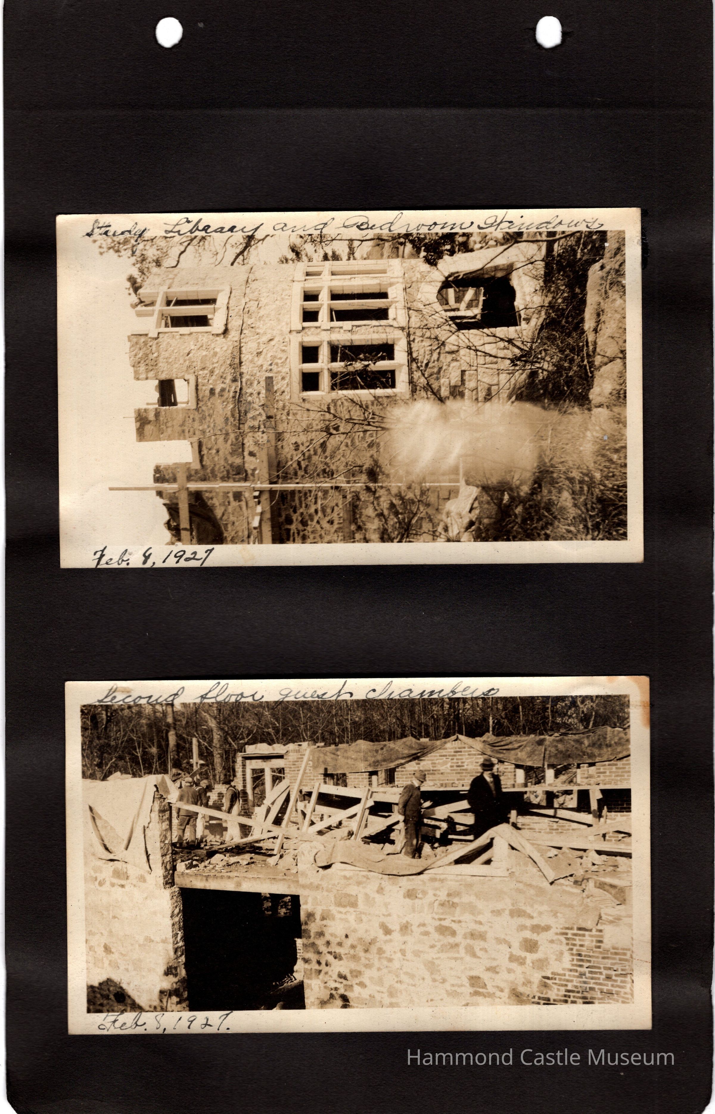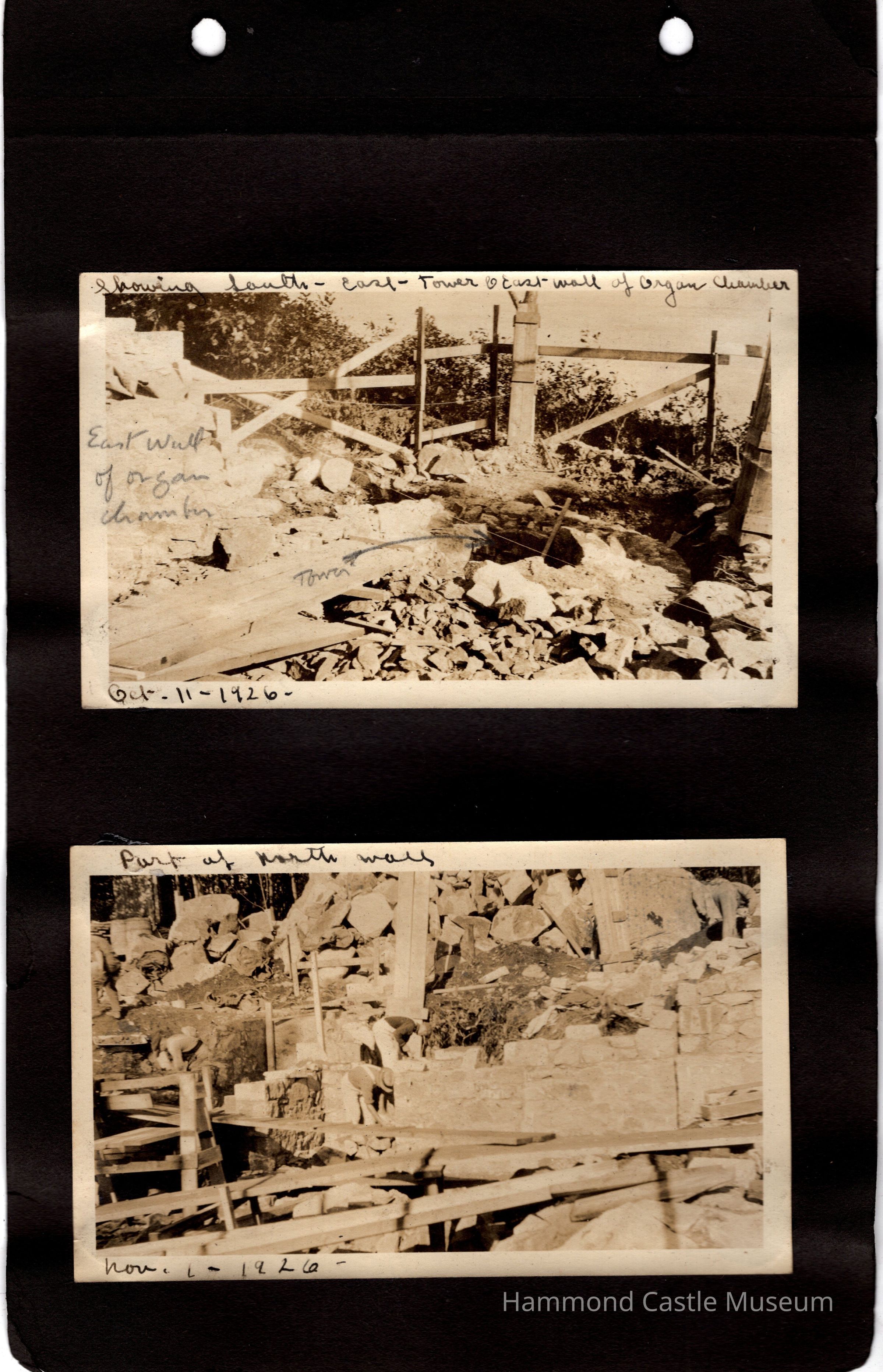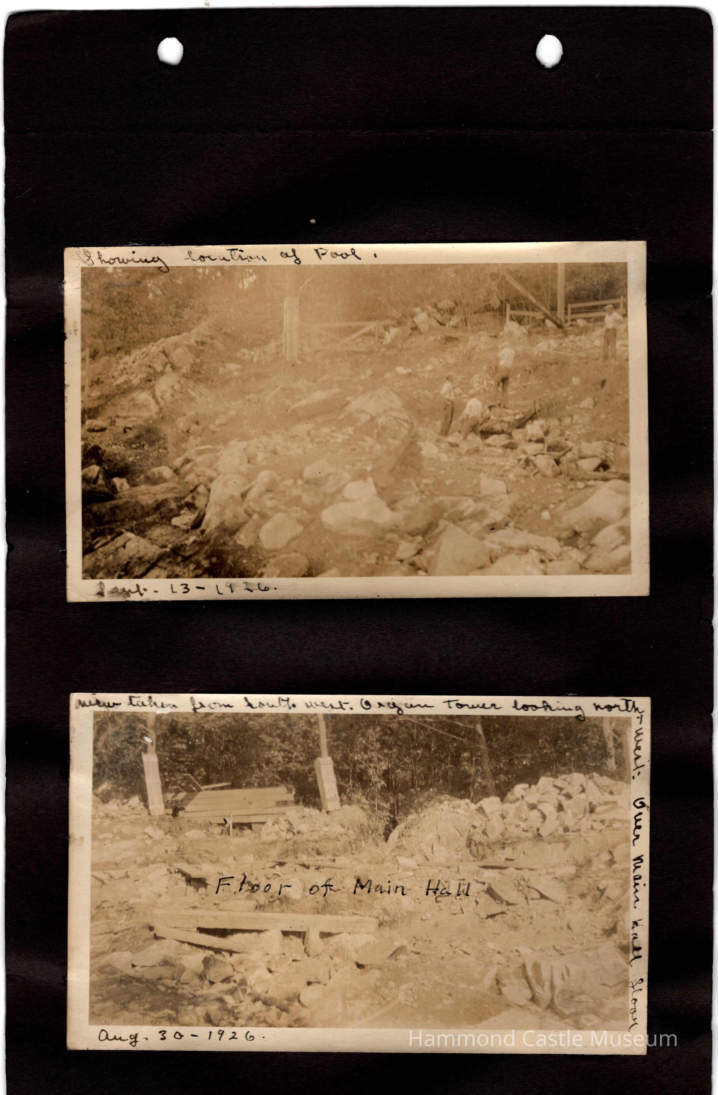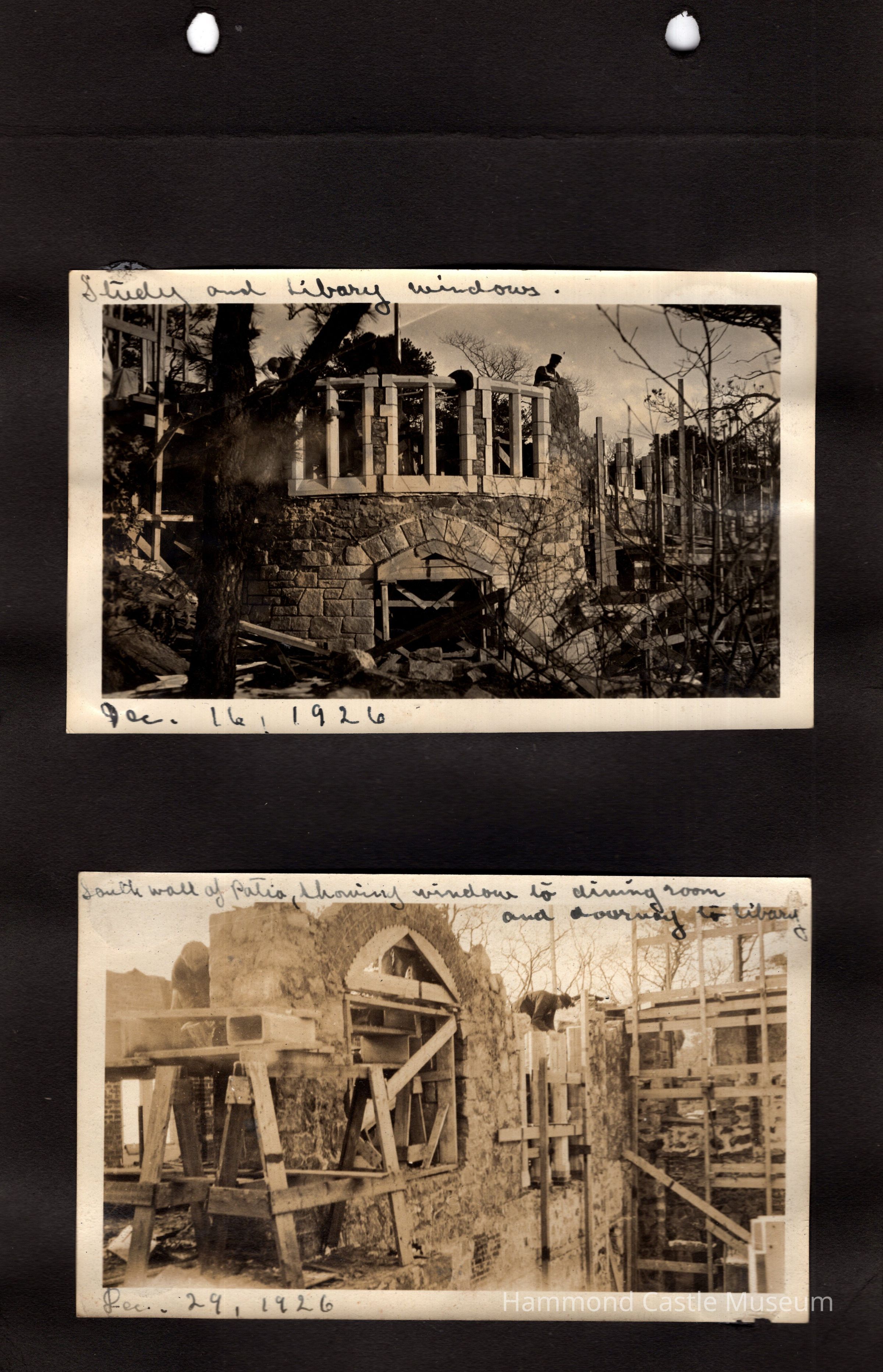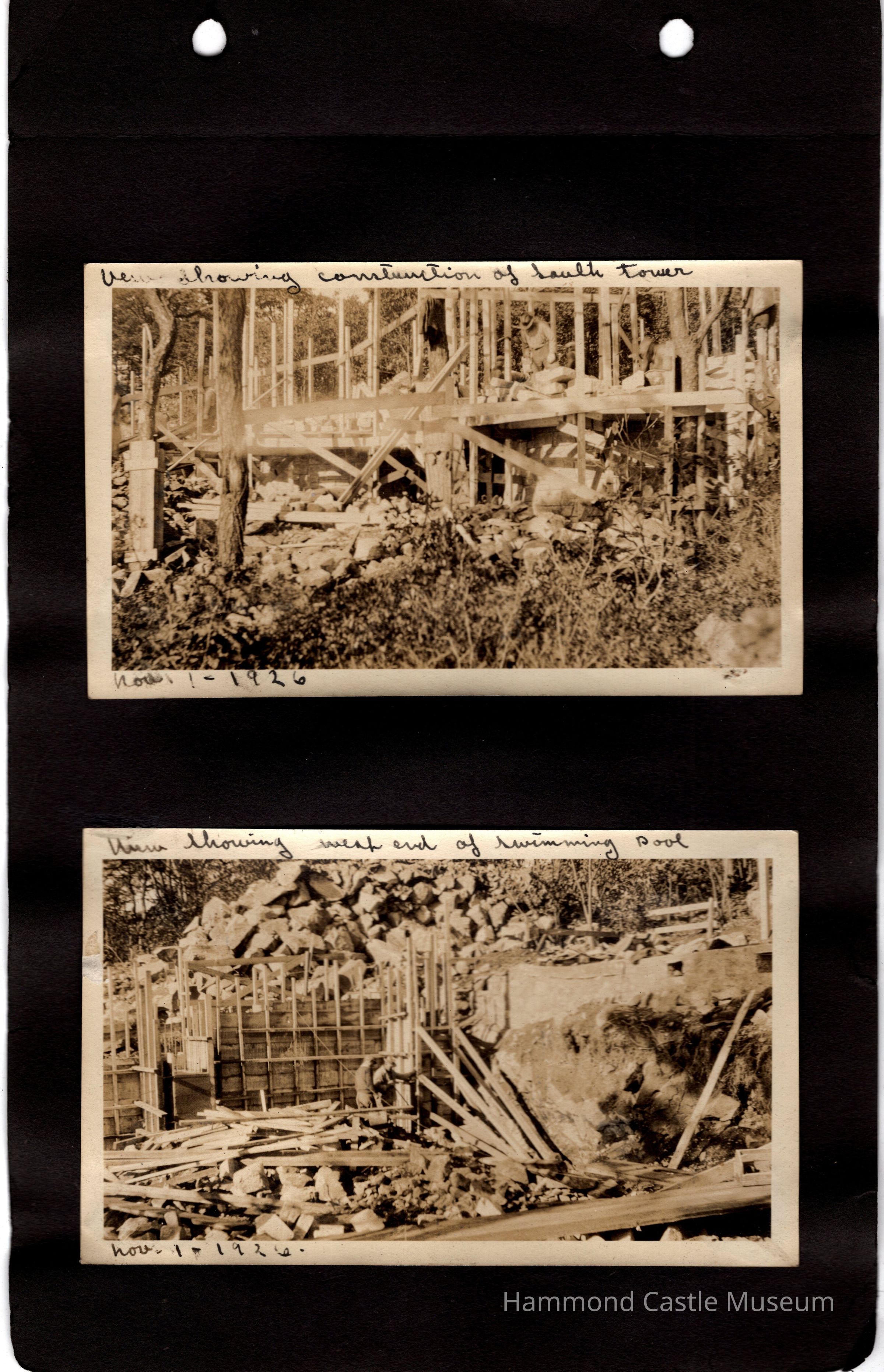 1926-1927 album of photos with annotations from the construction of the castle. (Book dismantled and stored in binder)