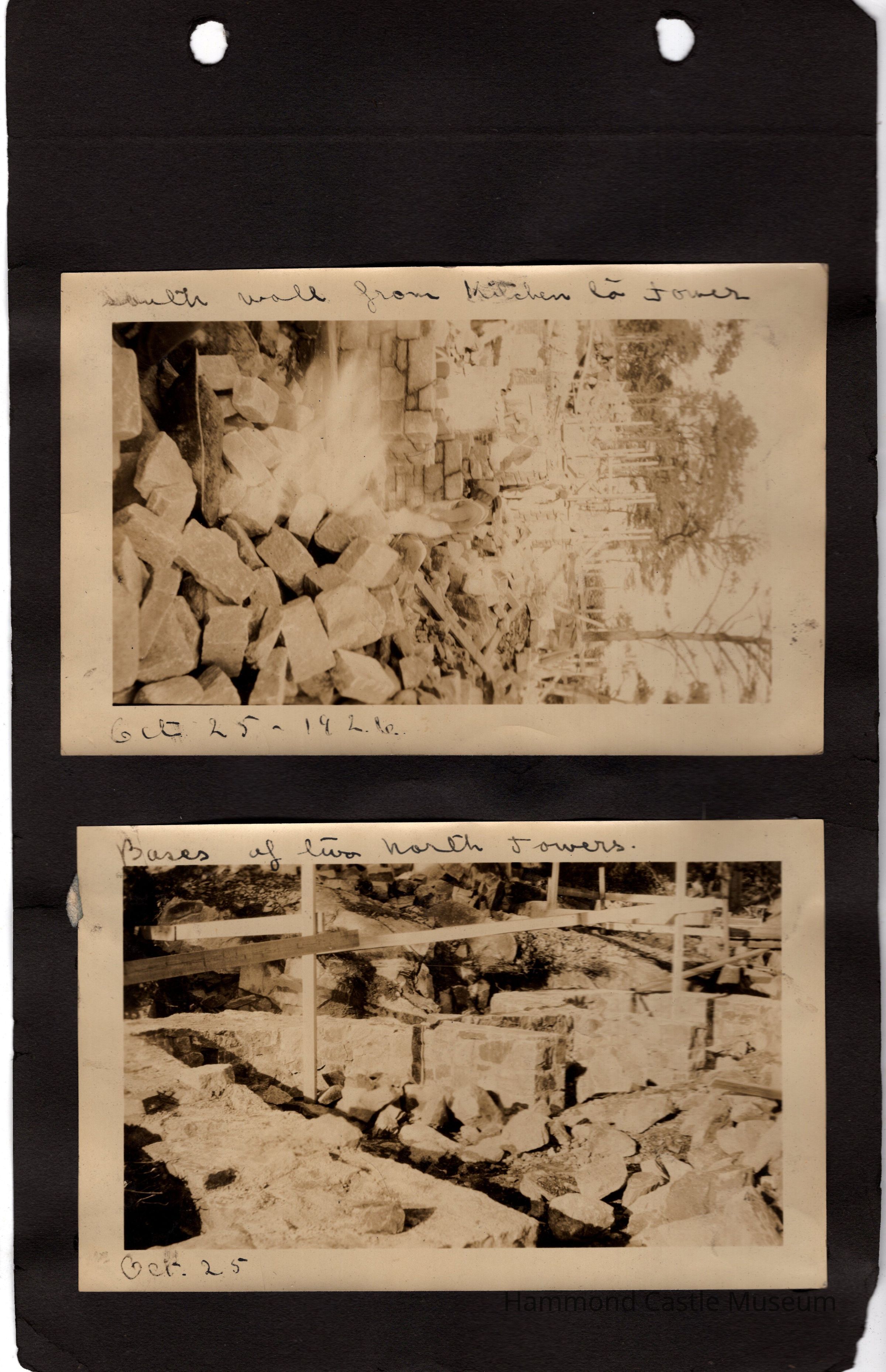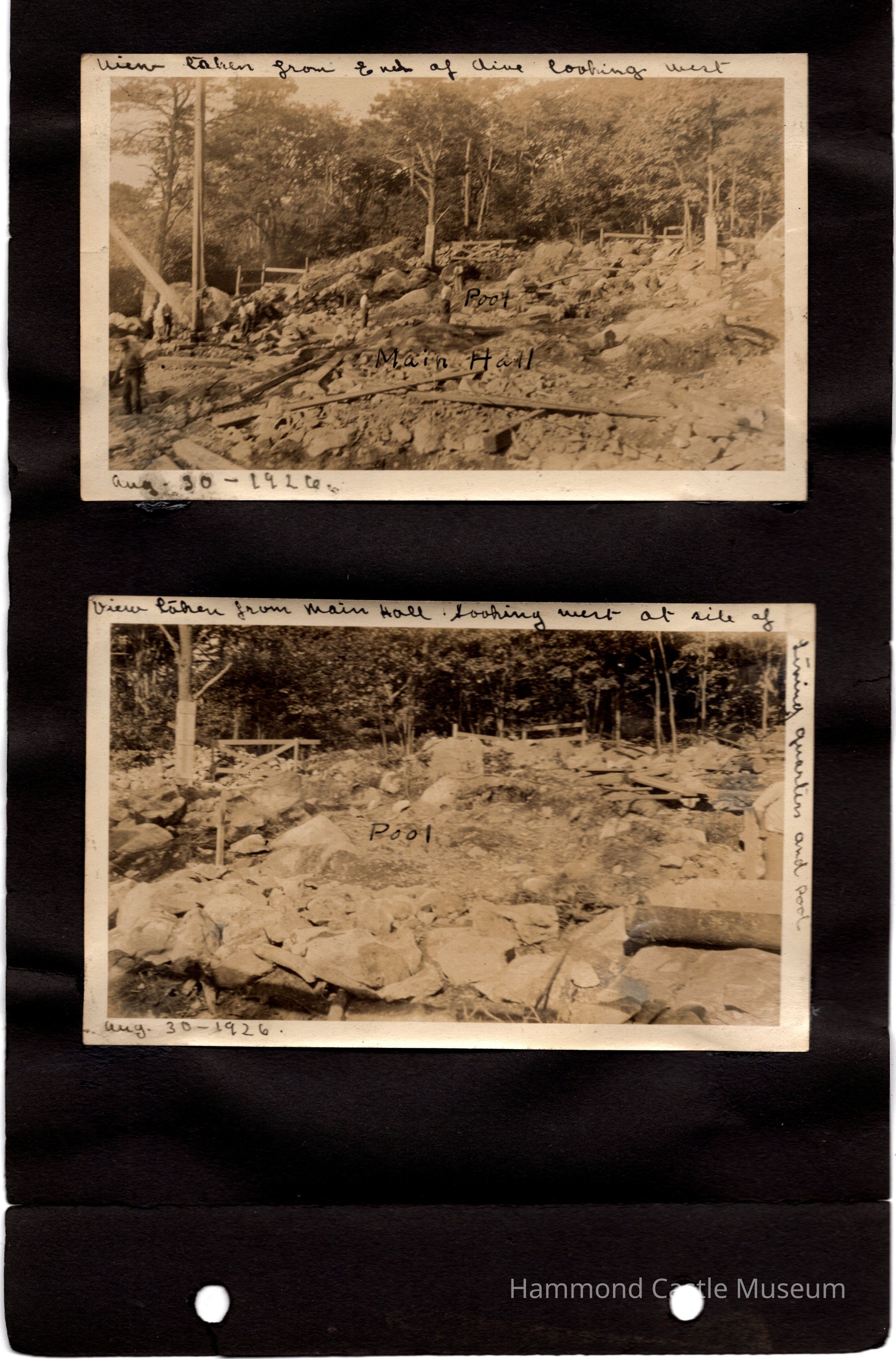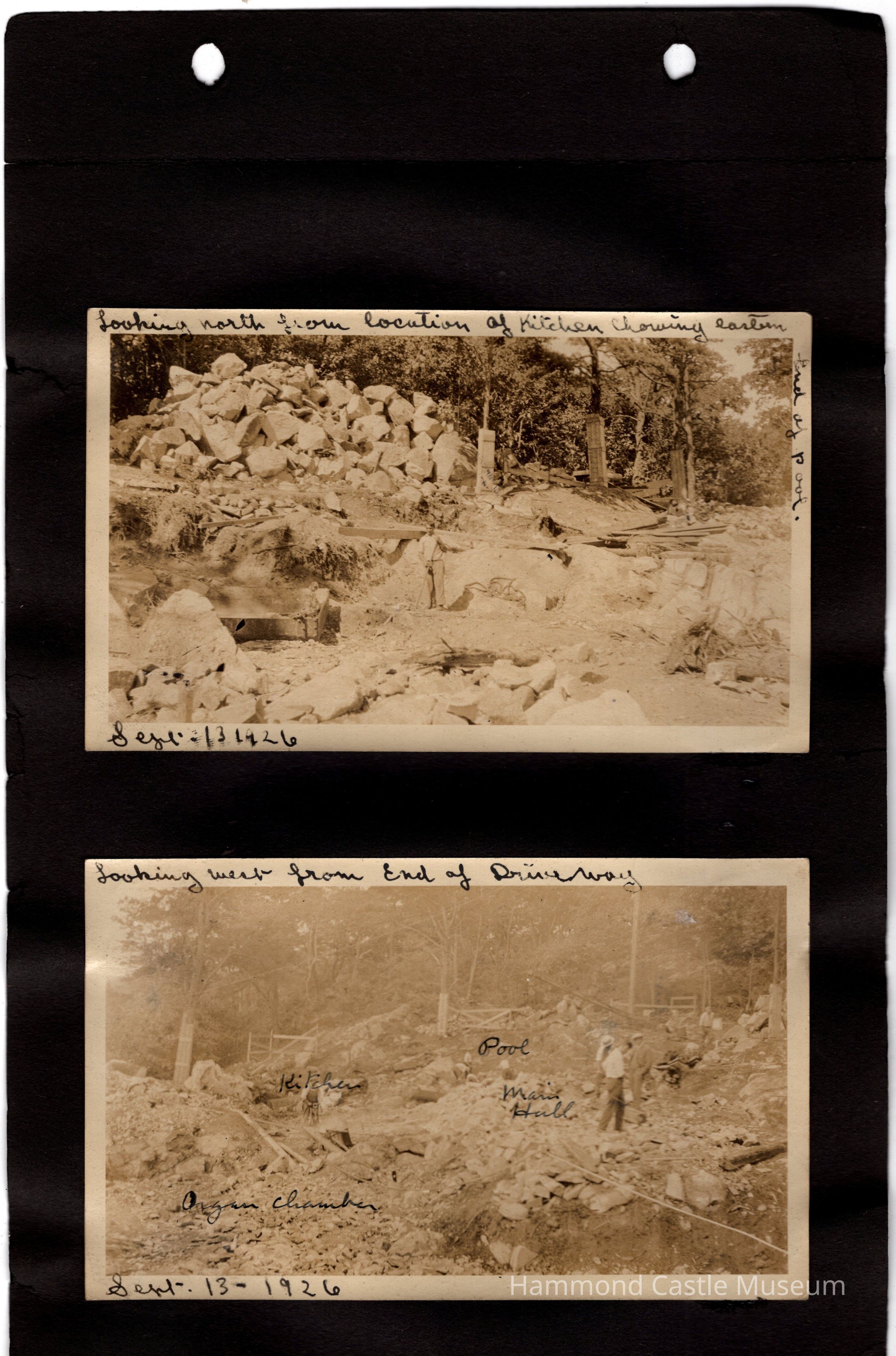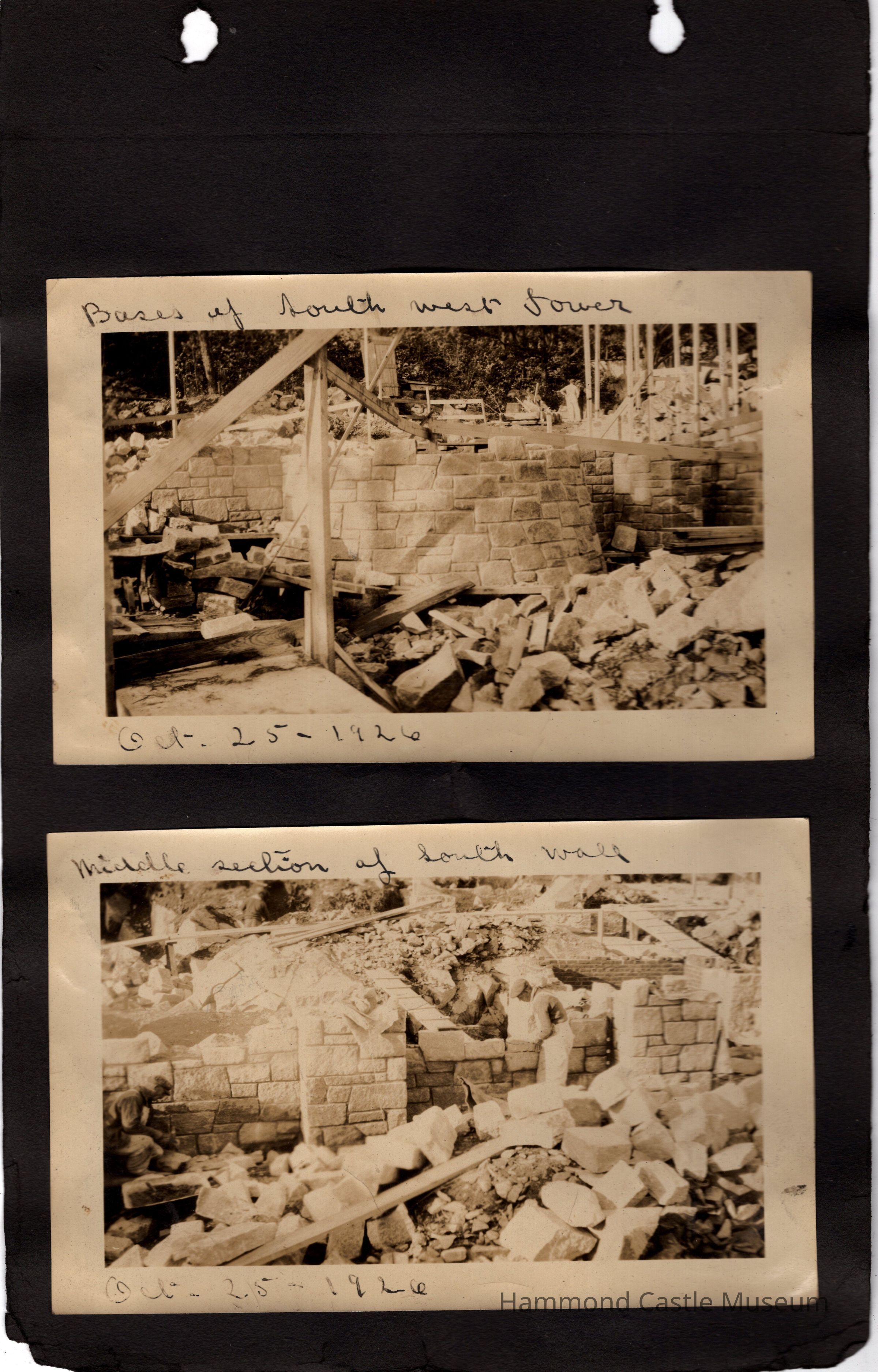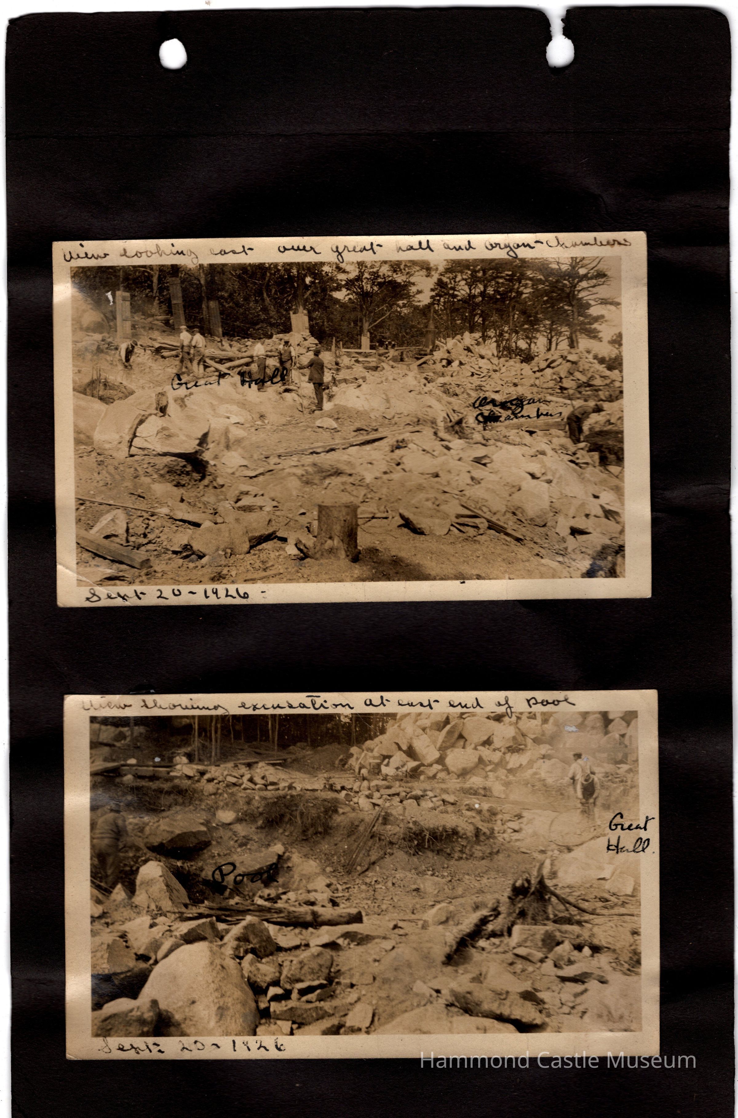 1926-1927 album of photos with annotations from the construction of the castle. (Book dismantled and stored in binder)