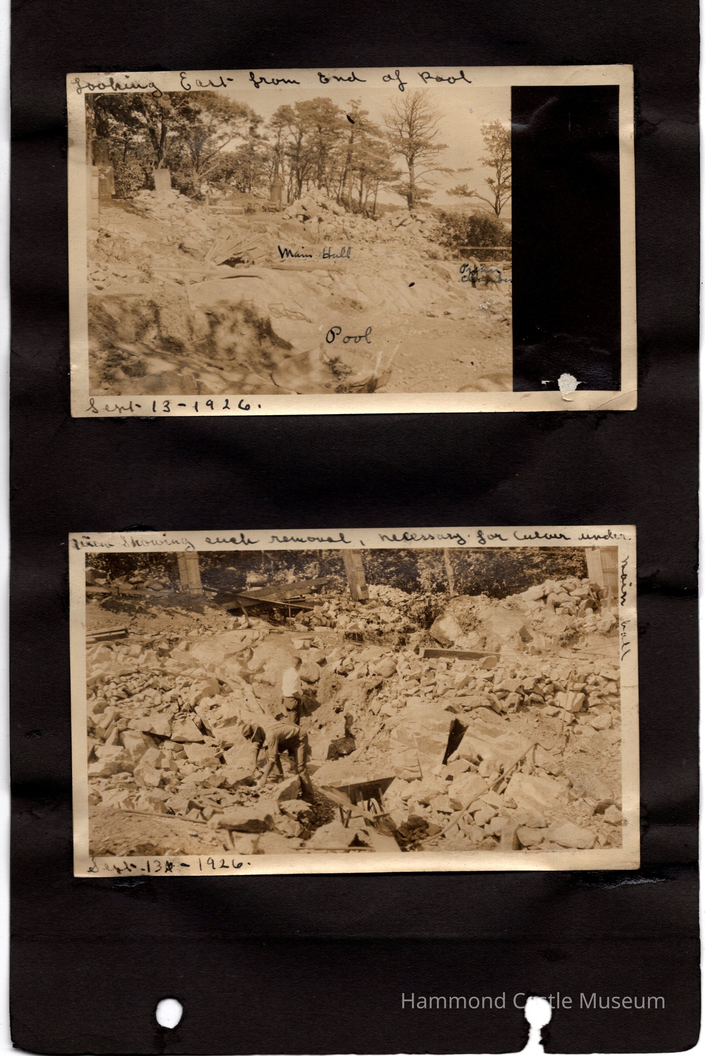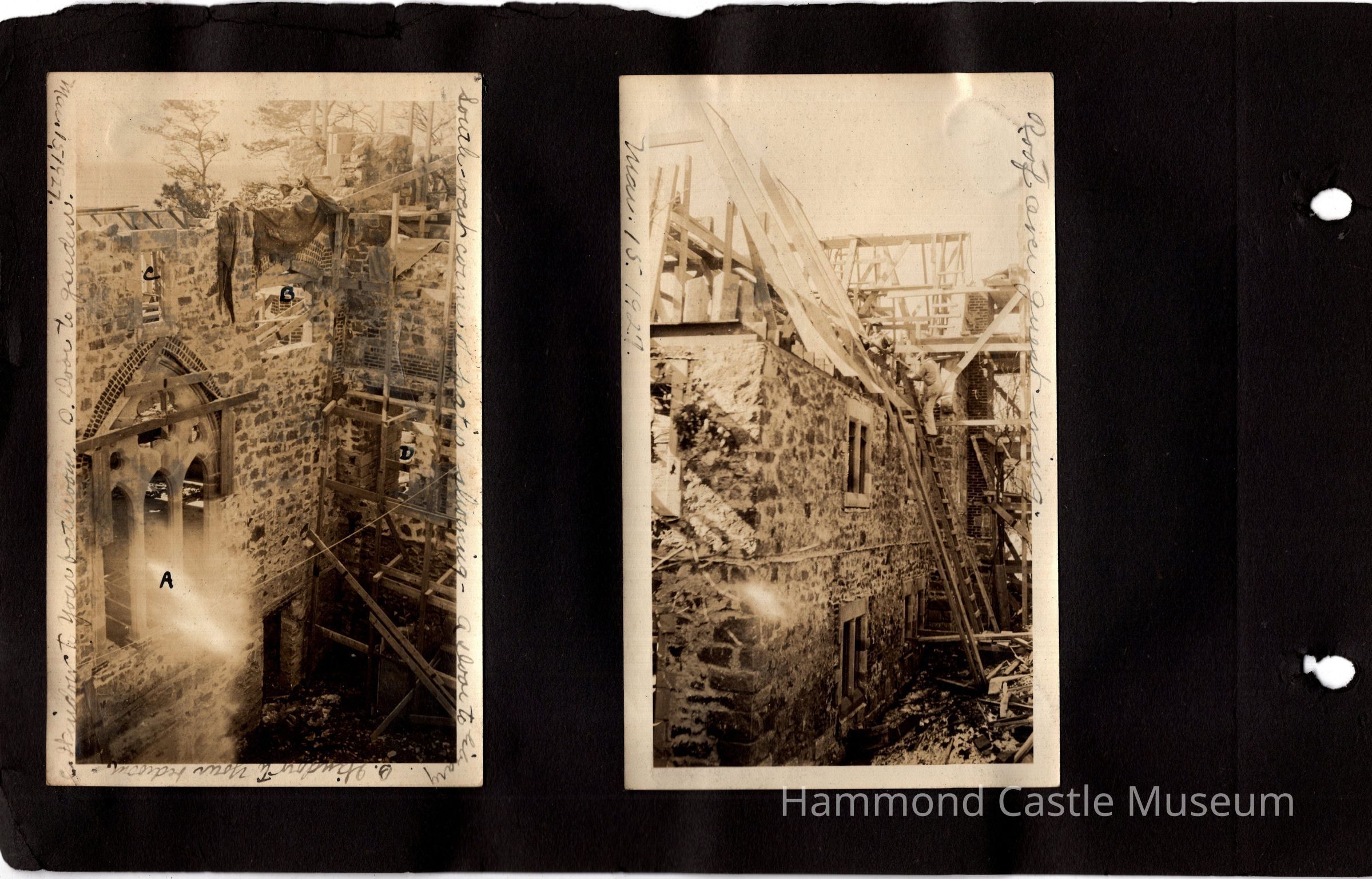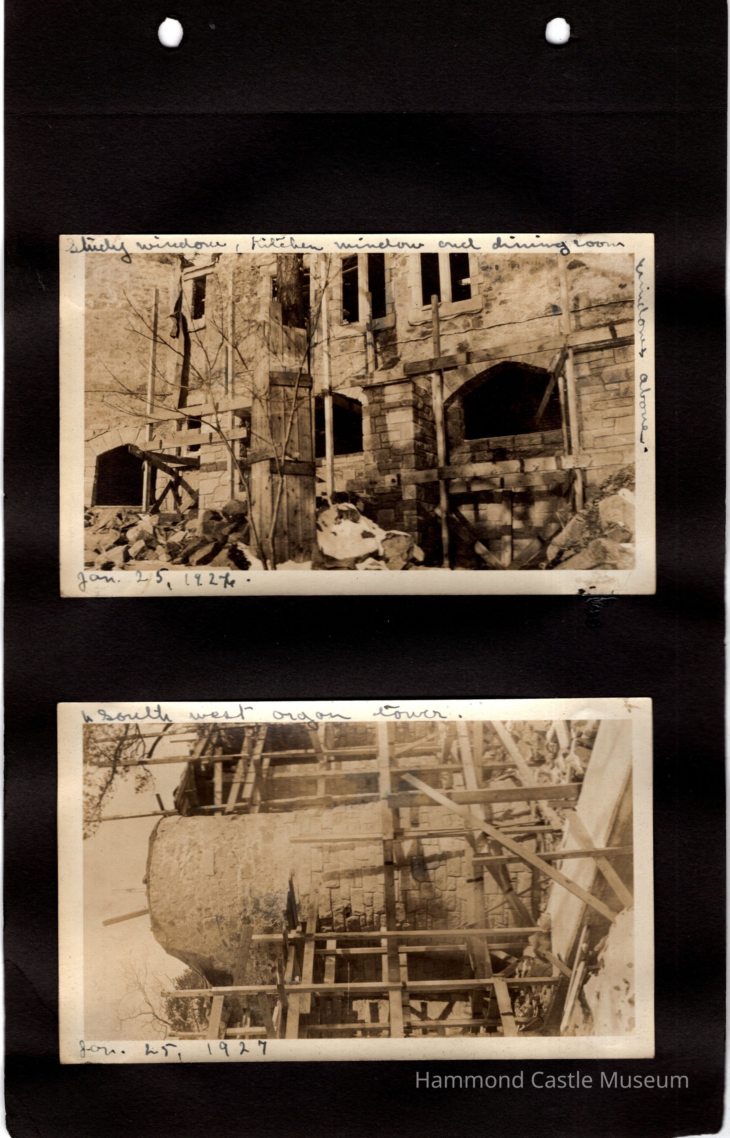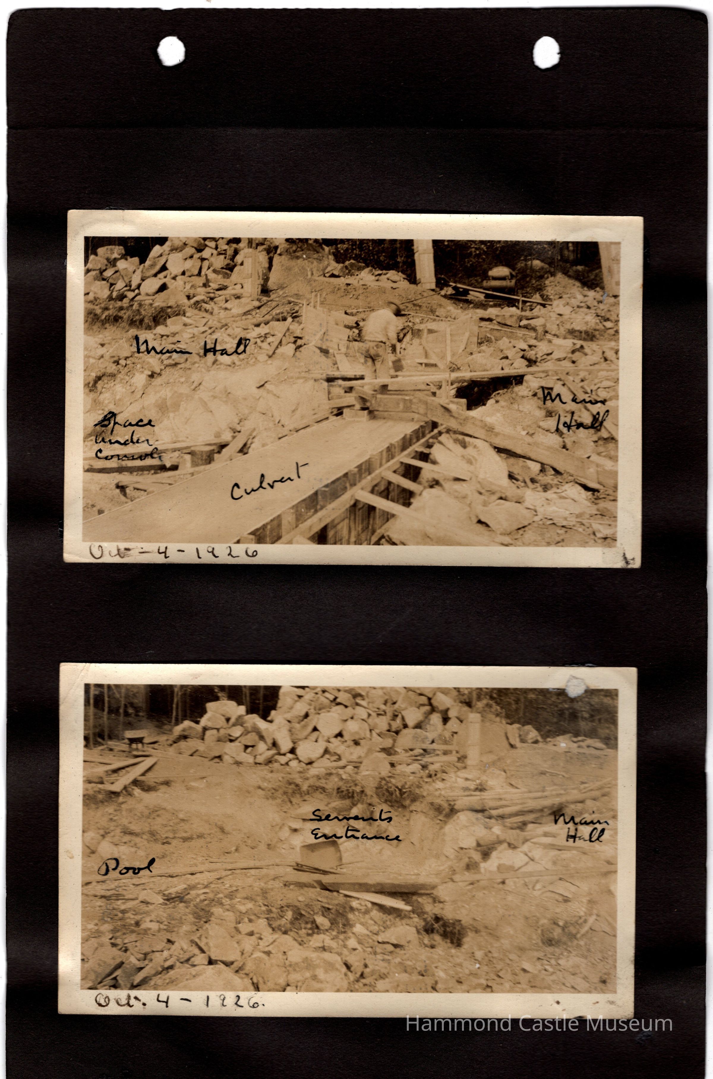 1926-1927 album of photos with annotations from the construction of the castle. (Book dismantled and stored in binder)